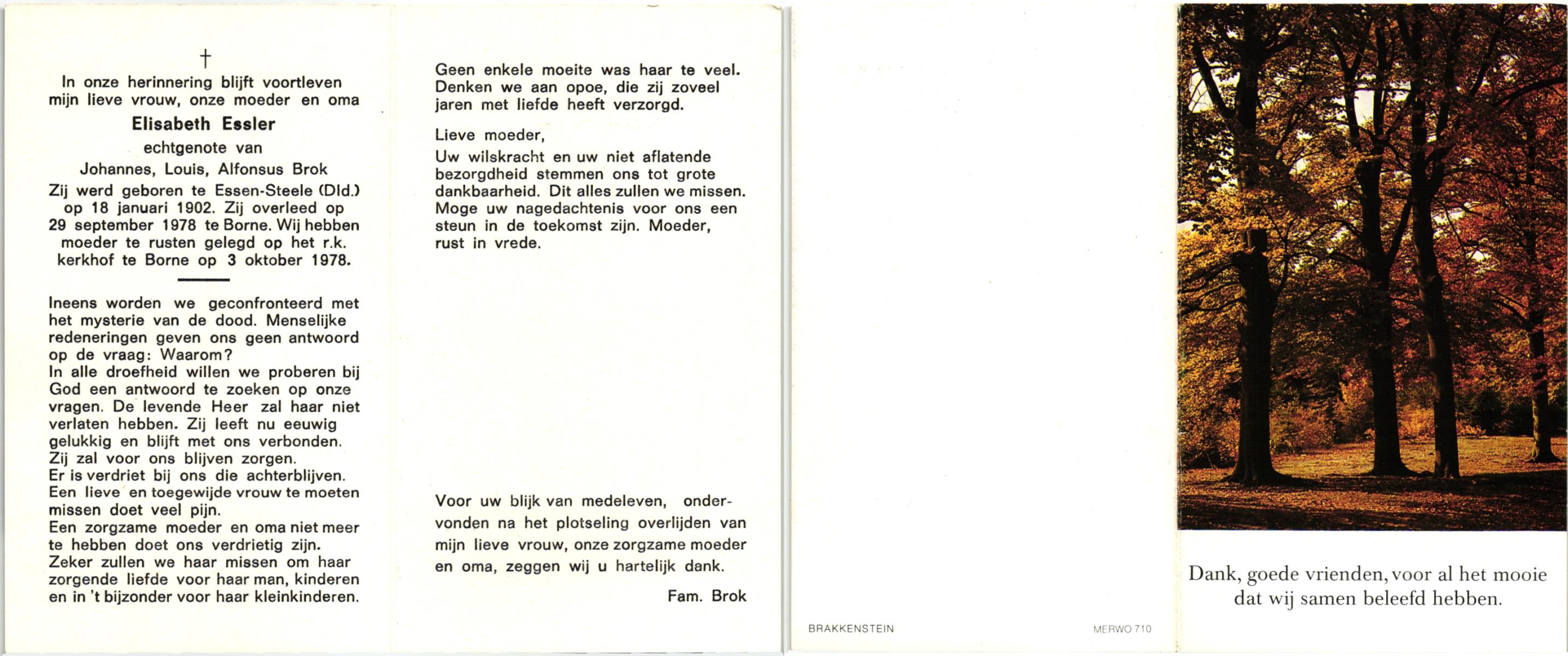 ELLENBROEK, Johanna Berdina, geboren op 20-01-1889 te Borne, overleden op 14-5-1978 te Hengelo (Ov.) op 89-jarige leeftijd, begraven op 17-5-1978 te Hengelo (Ov.).