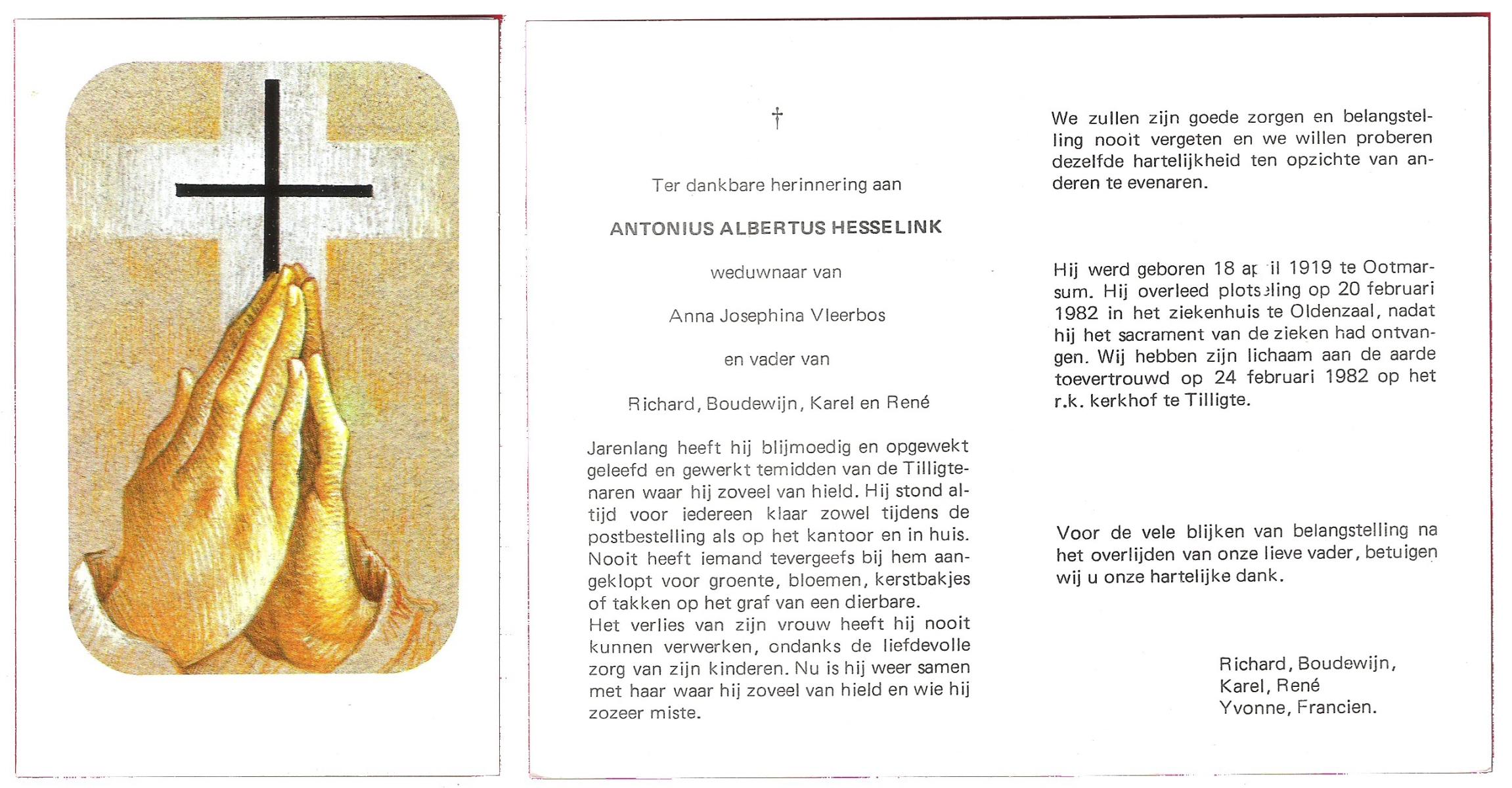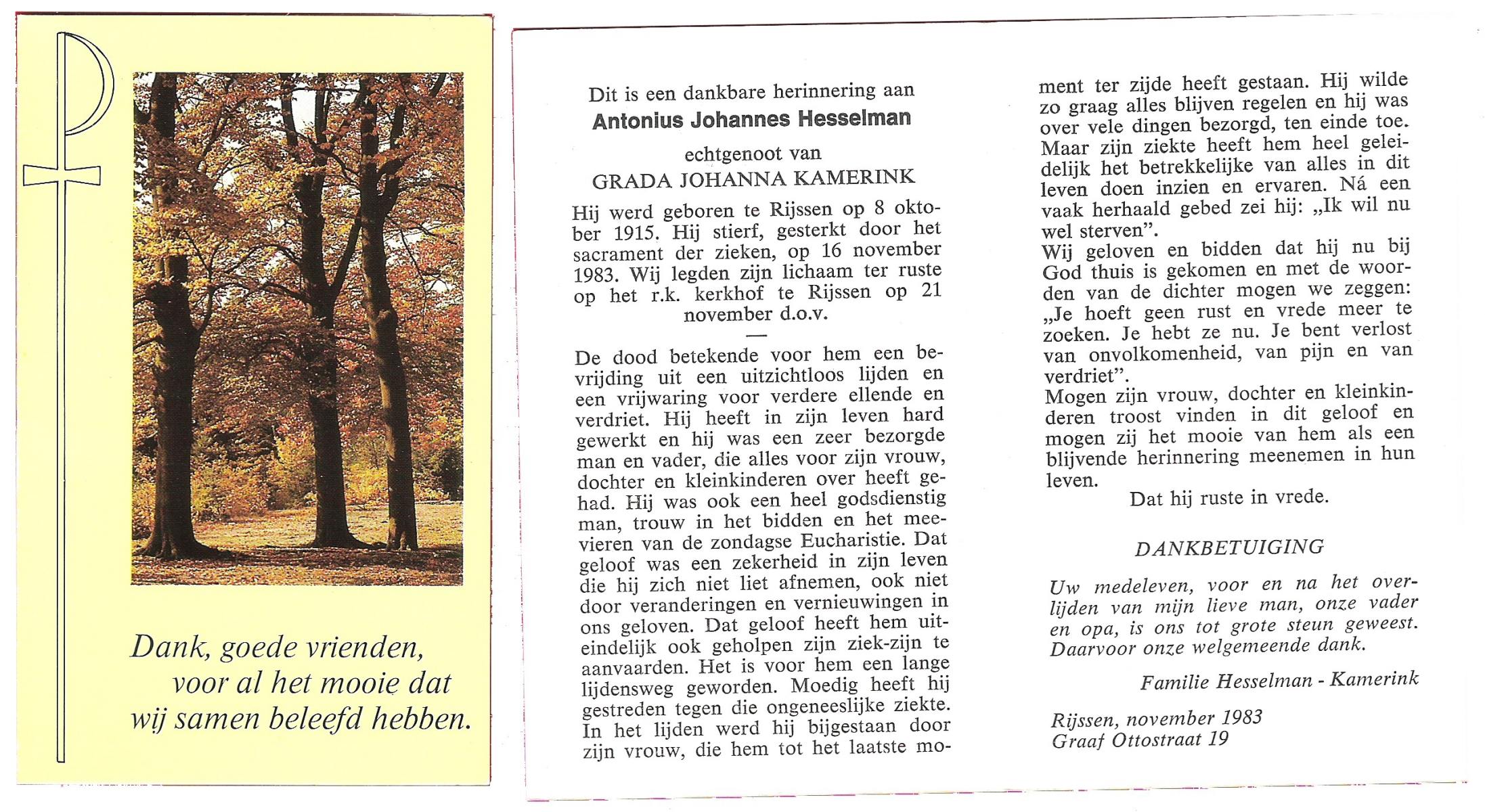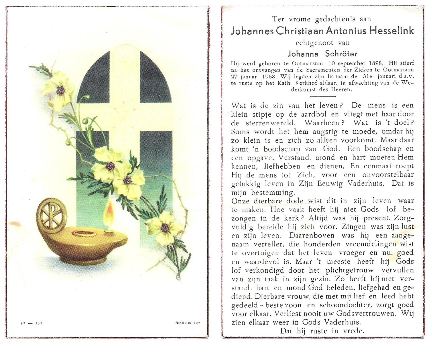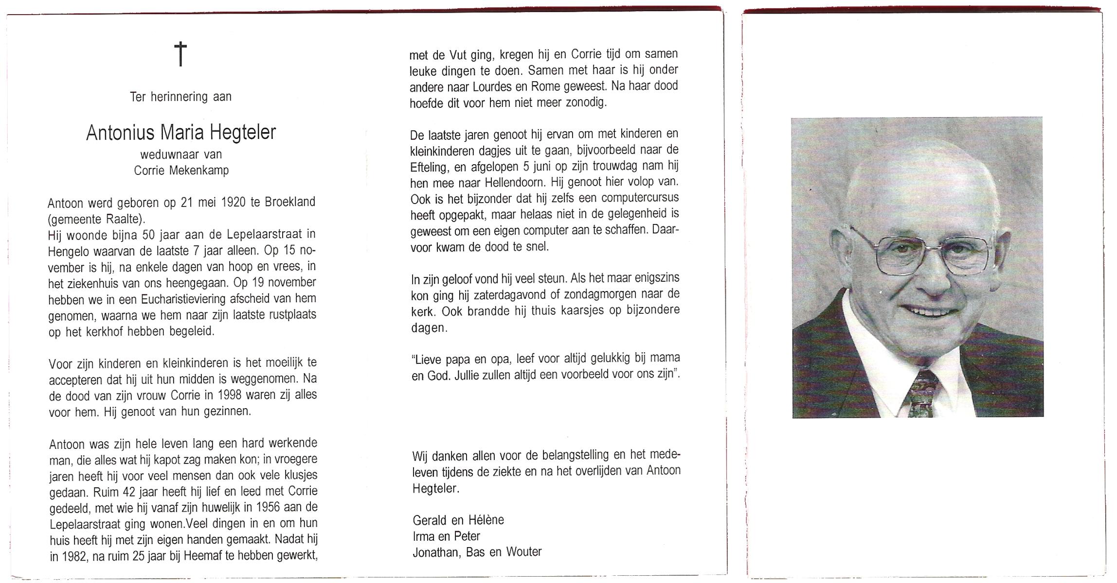 HEISTERKAMP, Antonius Johannes, geboren op 8-8-1903 te Ootmarsum, overleden op 7-1-1976 te Oldenzaal op 72-jarige leeftijd, begraven op 10-1-1976 te Ootmarsum.