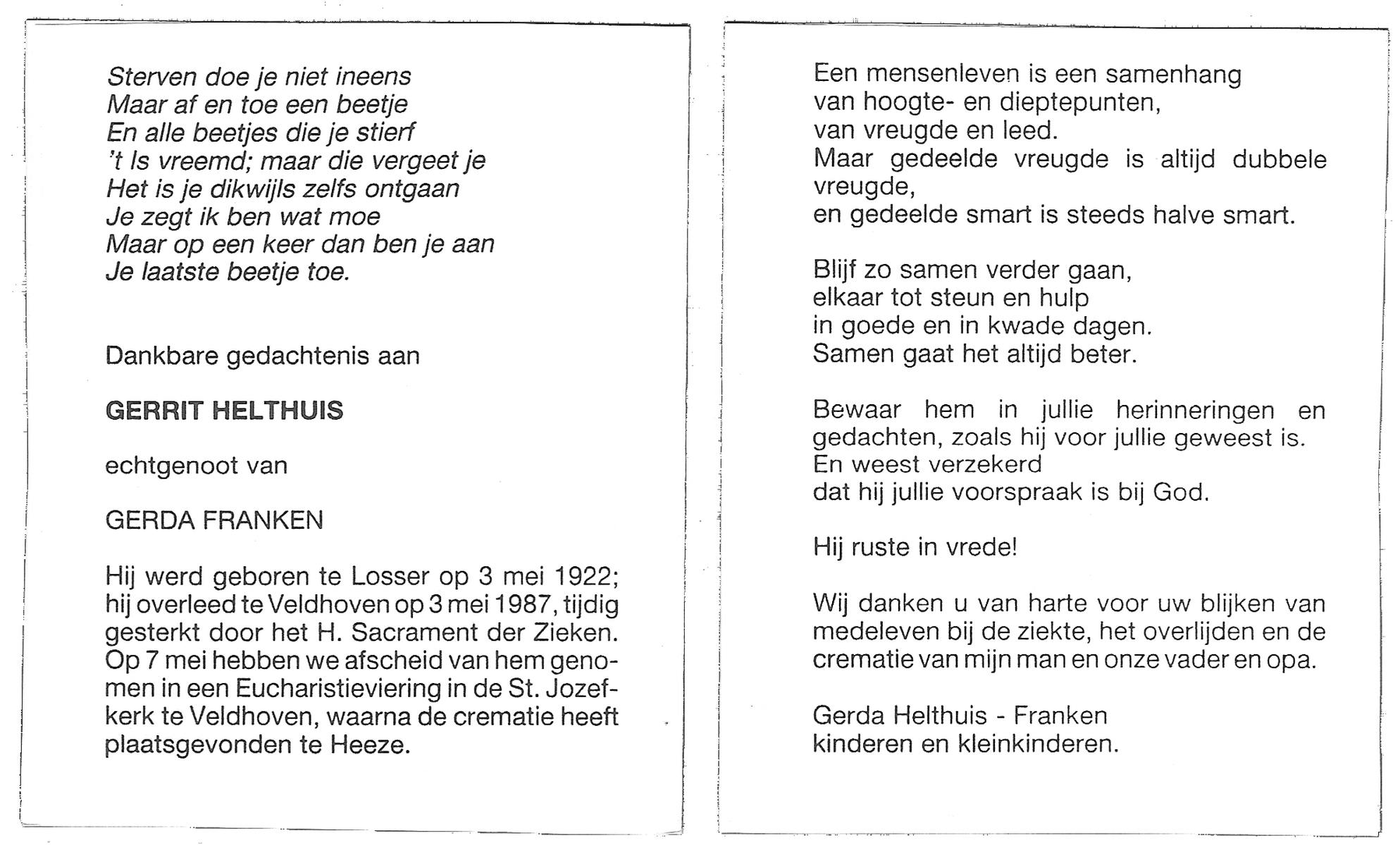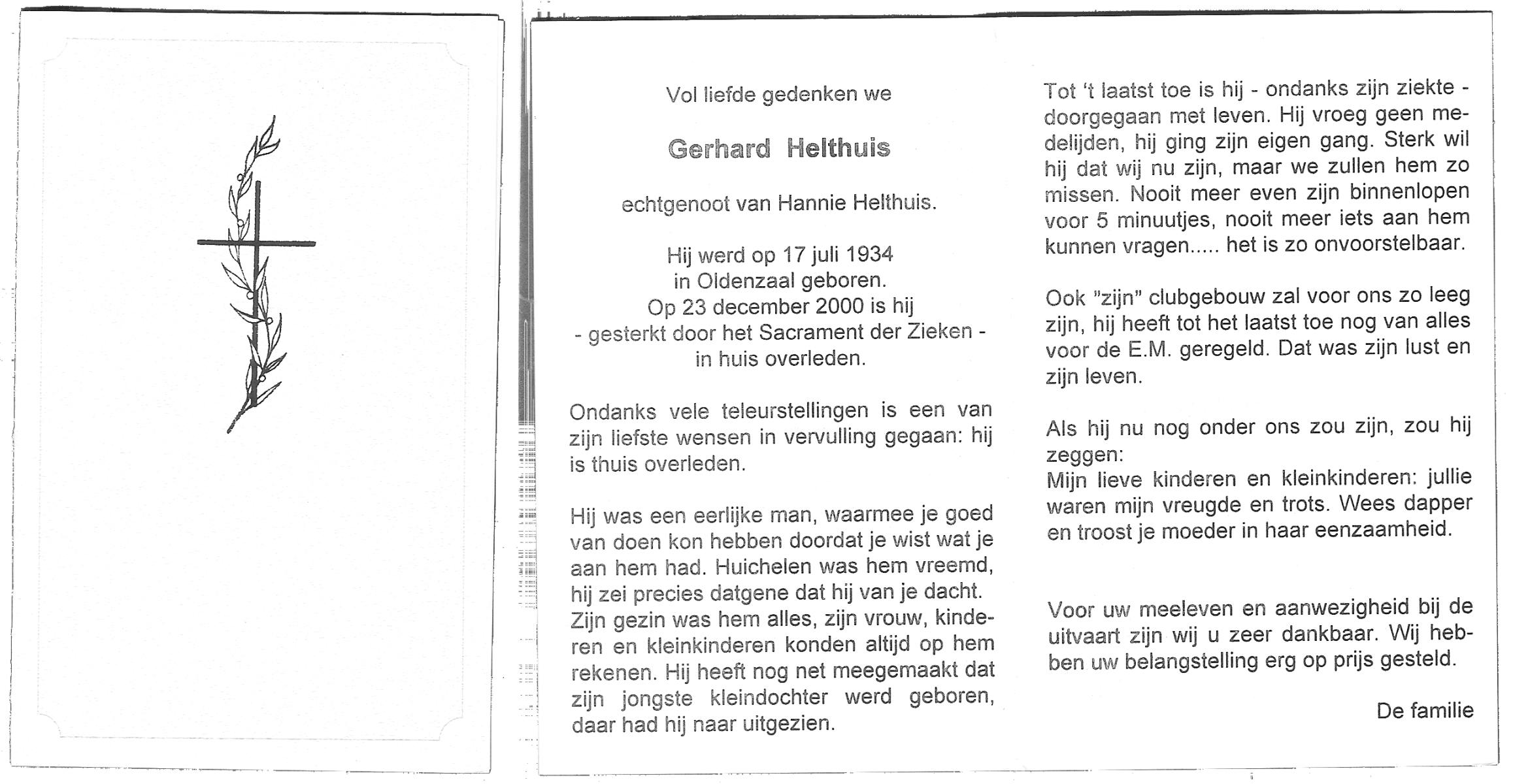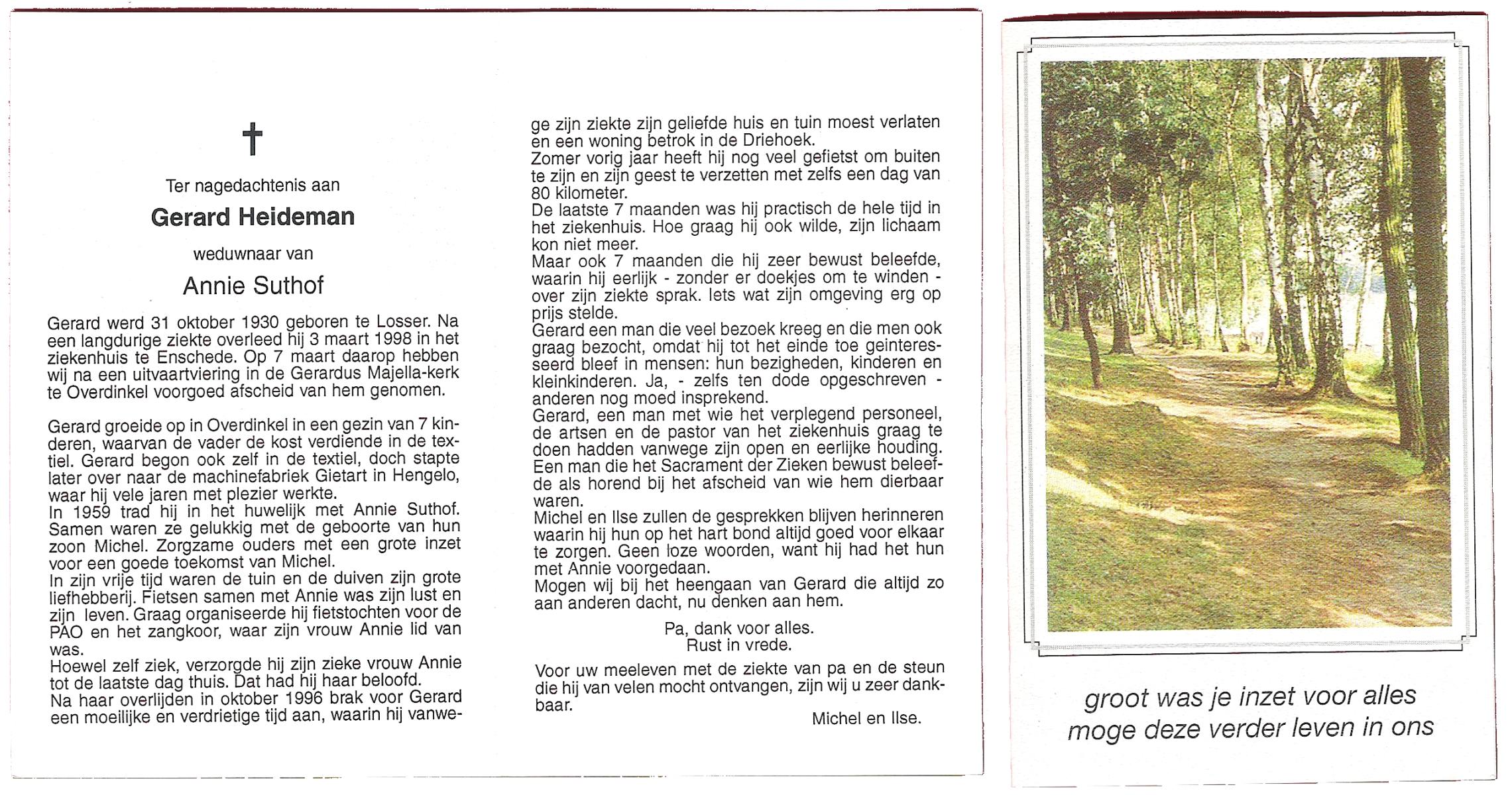 HEIDEMAN, Gerard, geboren op 31-10-1930 te Losser, overleden op 3-3-1998 te Enschede op 67-jarige leeftijd, begraven op 7-3-1998.