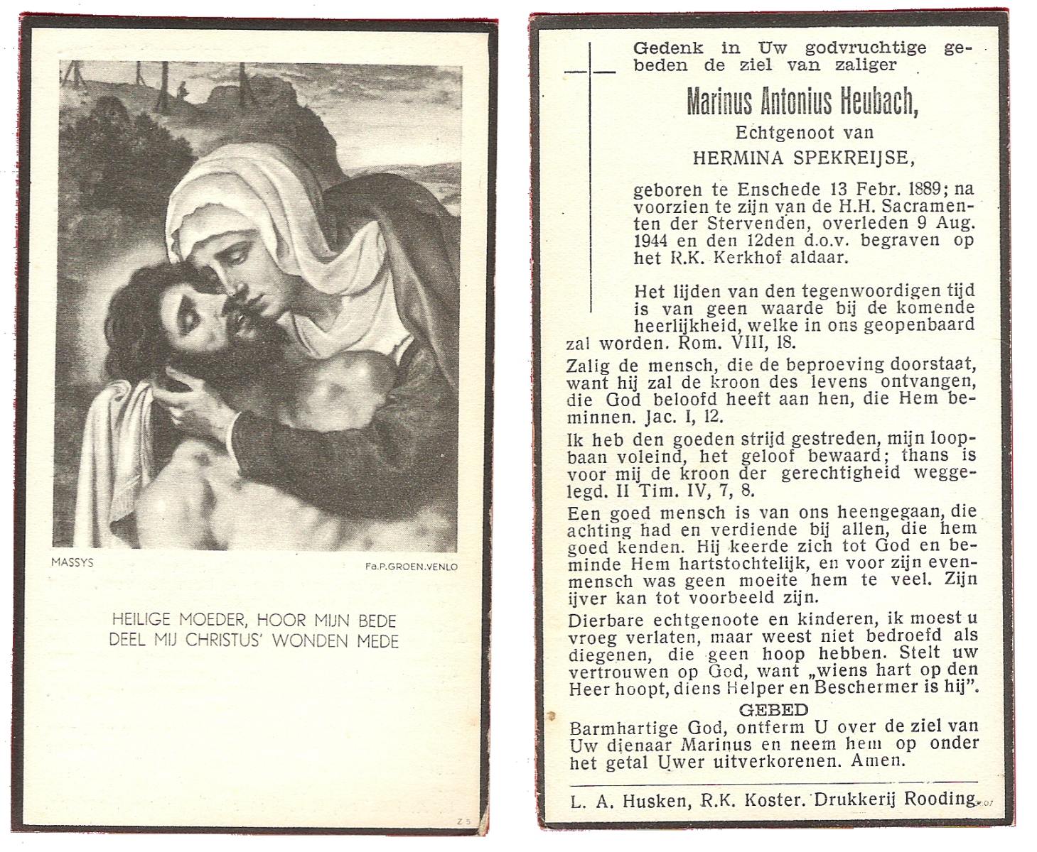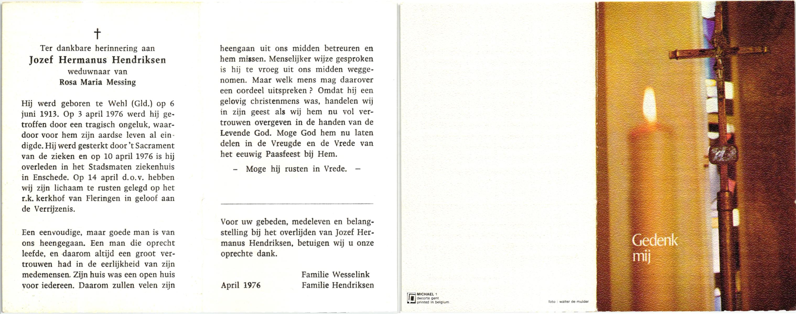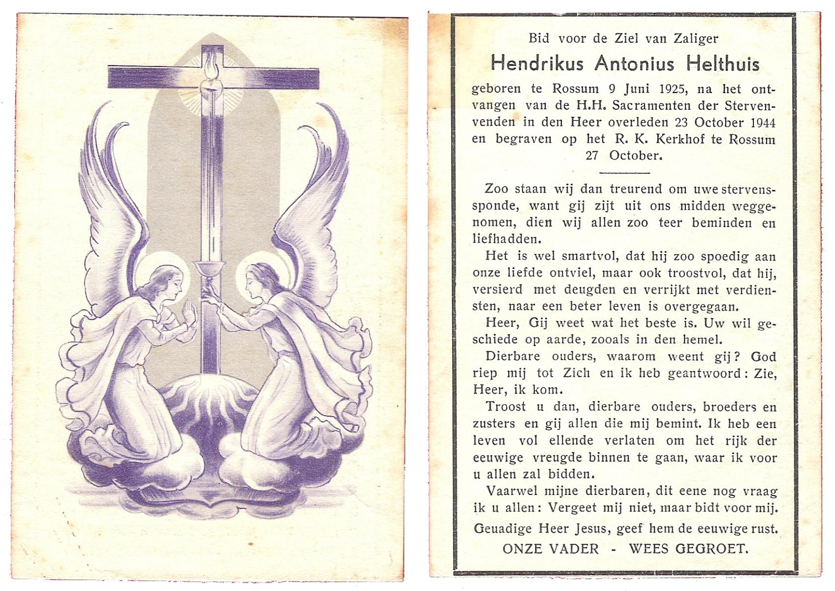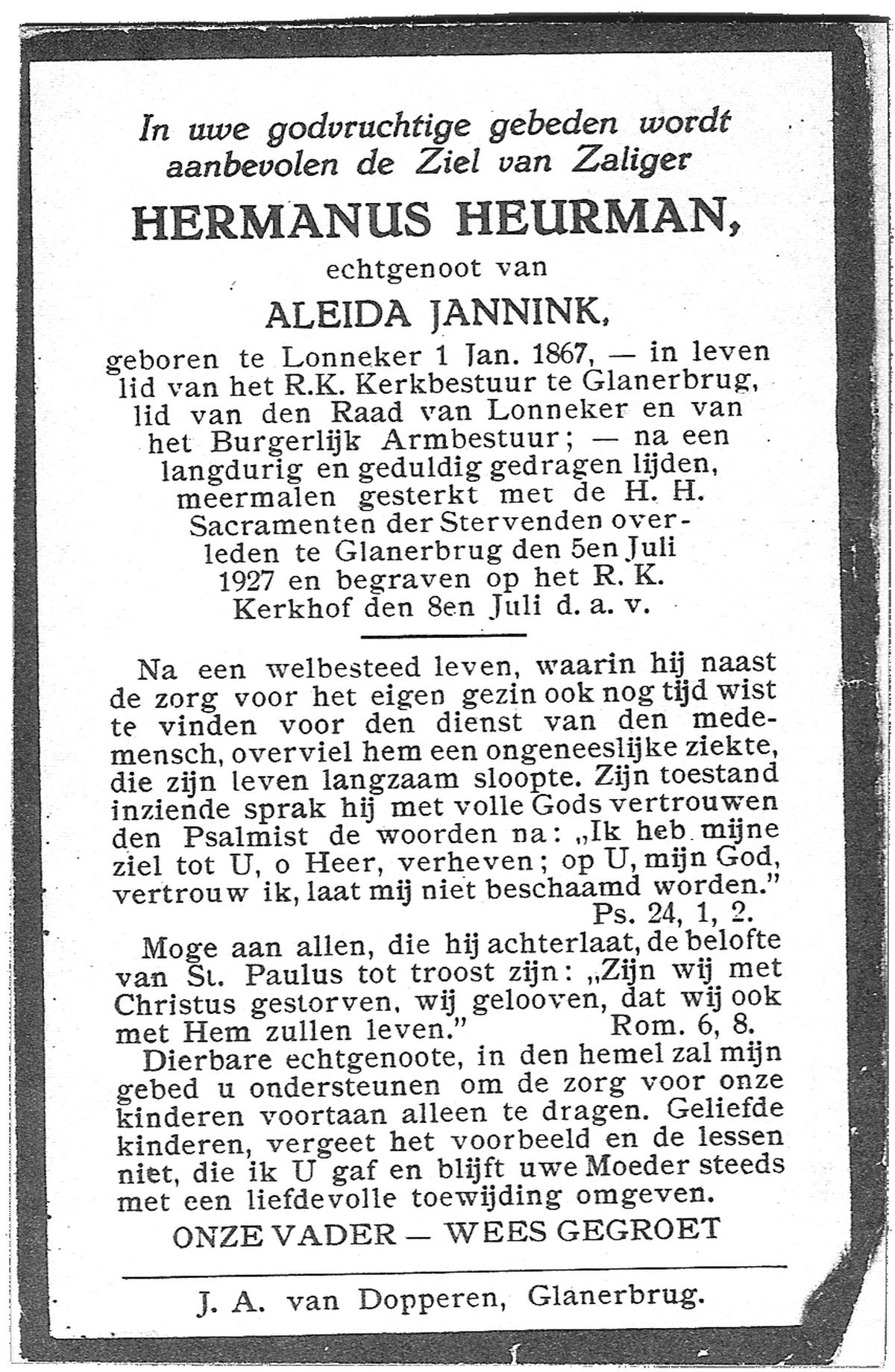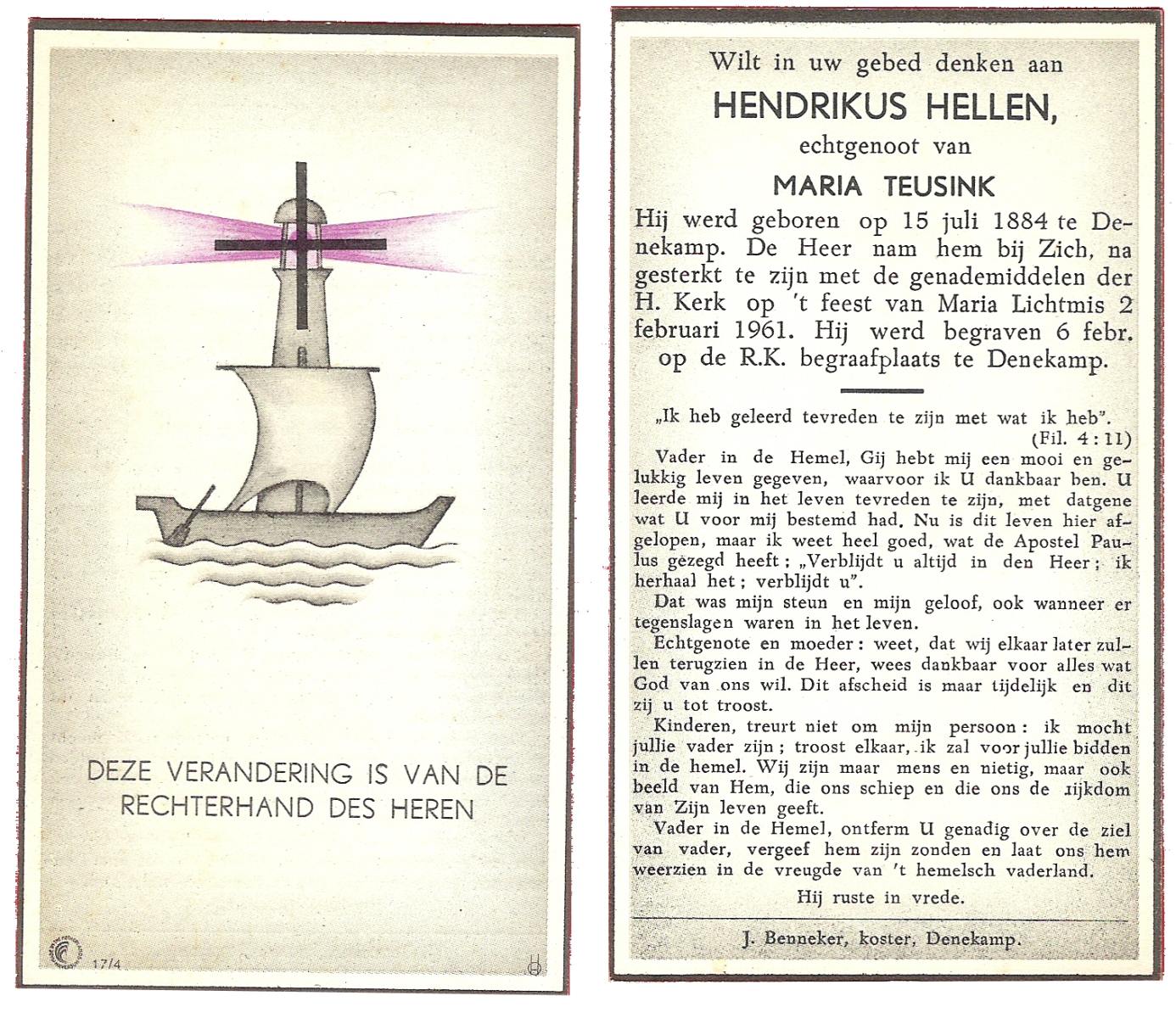 HEIDEMAN, Hendrikus, geboren op 19-09-1876 te Losser, overleden op 10-1-1945 te Overdinkel op 68-jarige leeftijd, begraven op 15-1-1945 te Overdinkel.