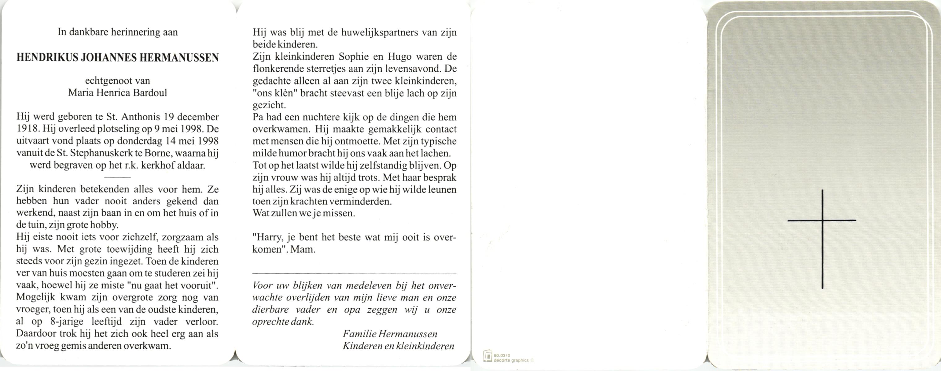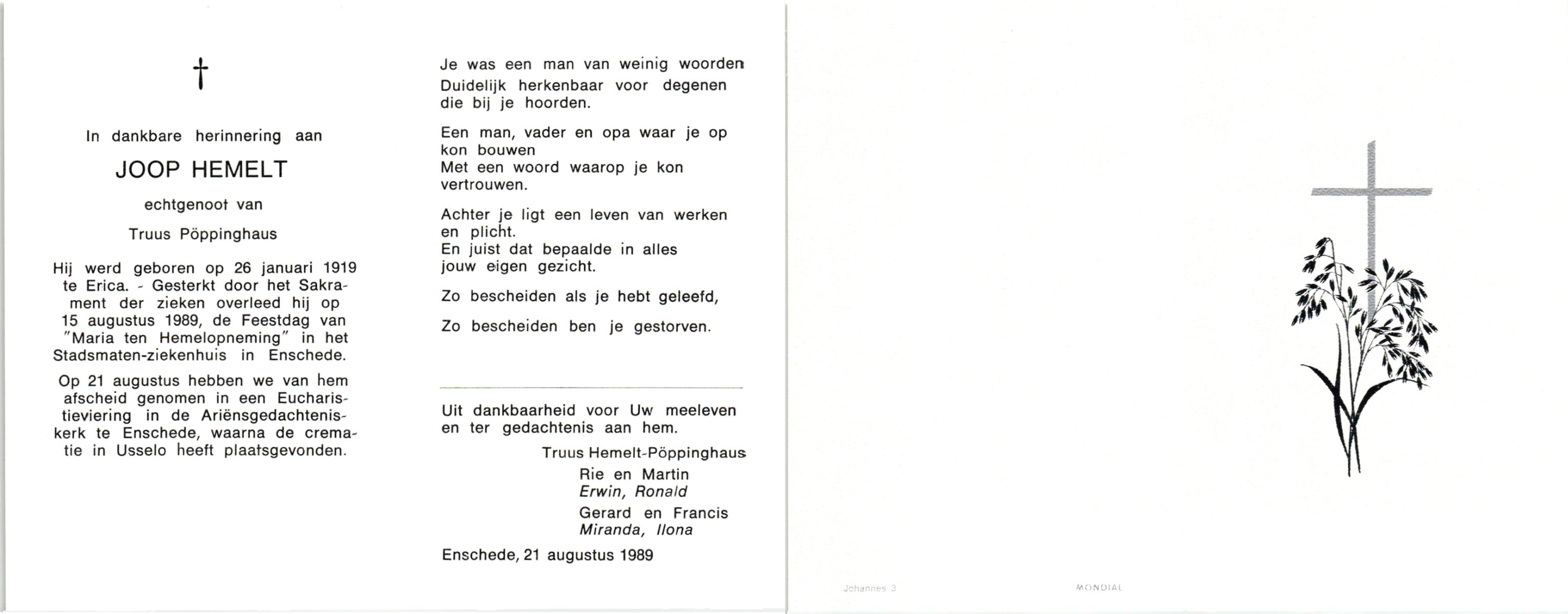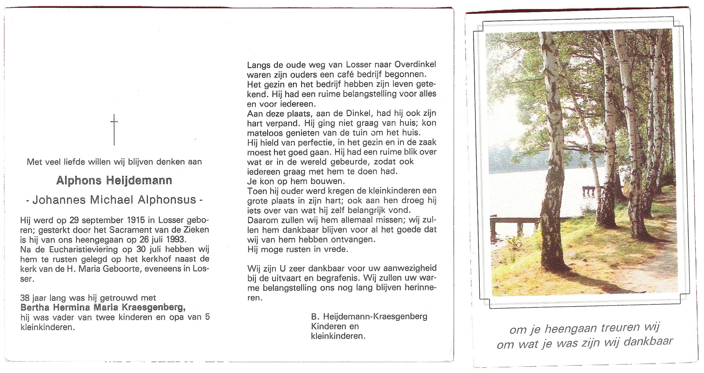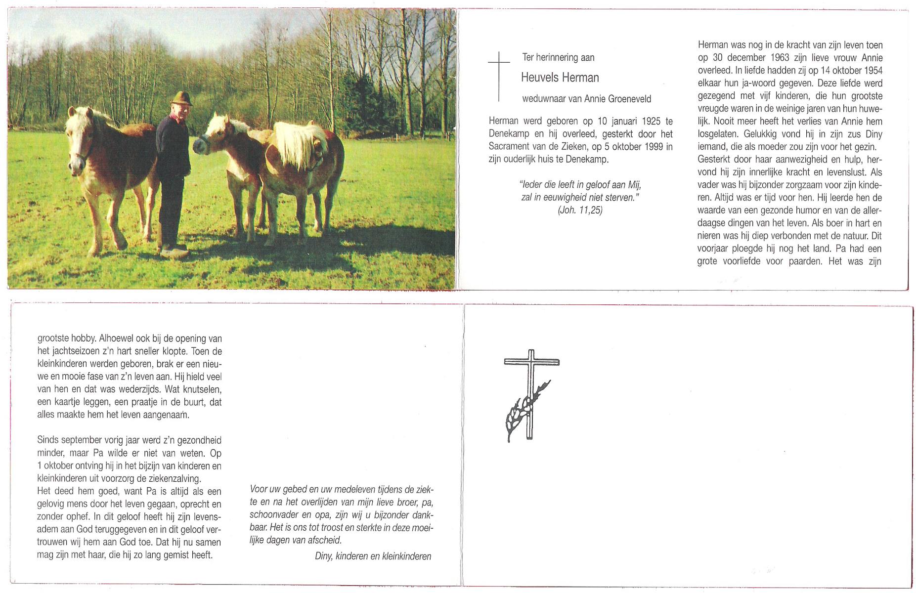 HEIDEMAN, Herman Bernard, geboren op 26-6-1920 te Oldenzaal, overleden op 17-3-1993 te Oldenzaal op 72-jarige leeftijd, gecremeerd op 22-3-1993 te Usselo.