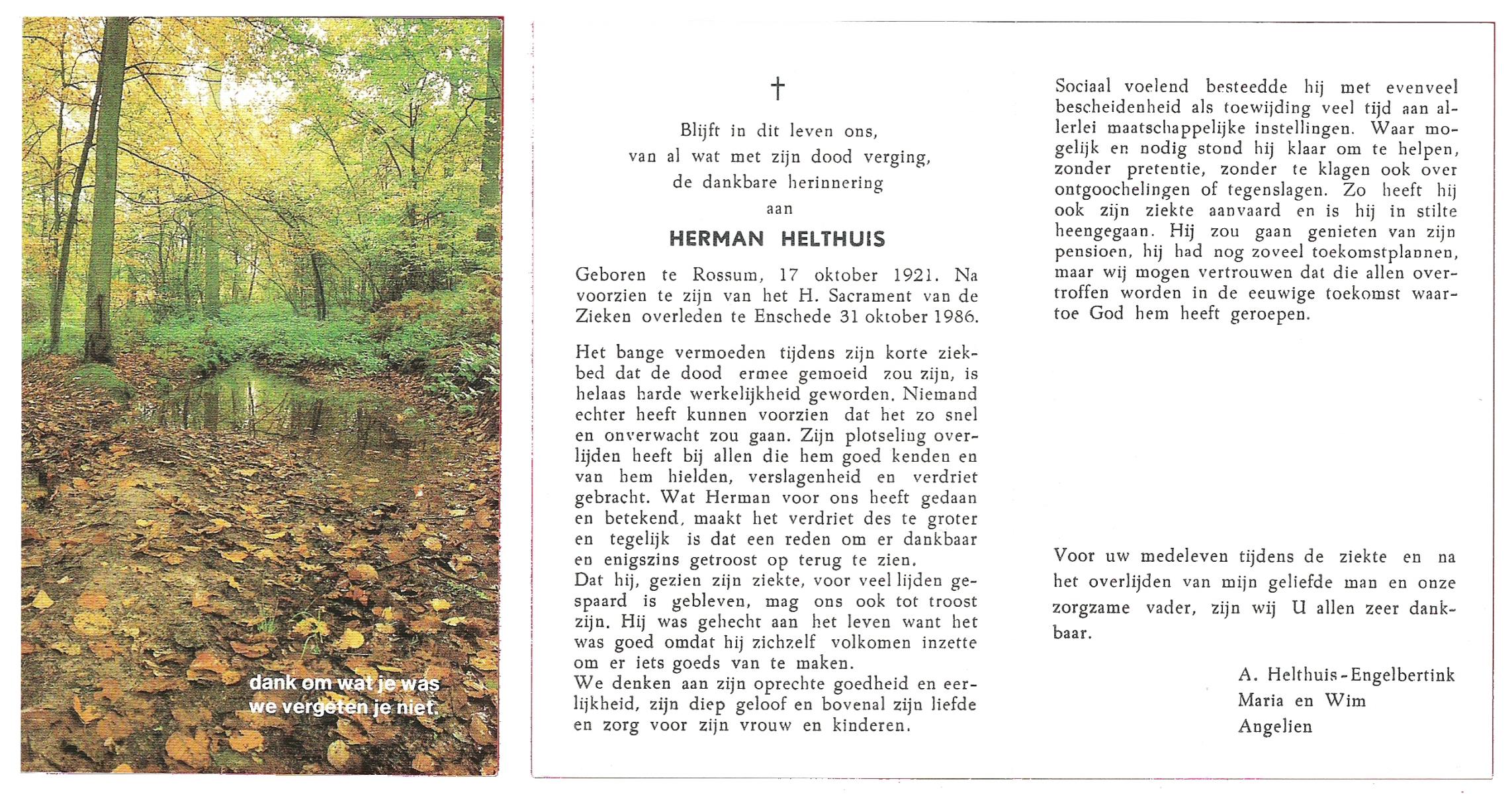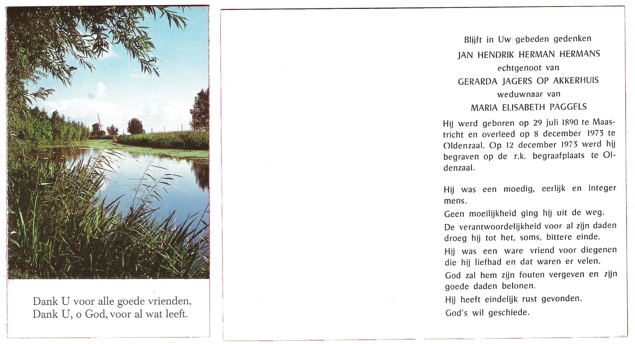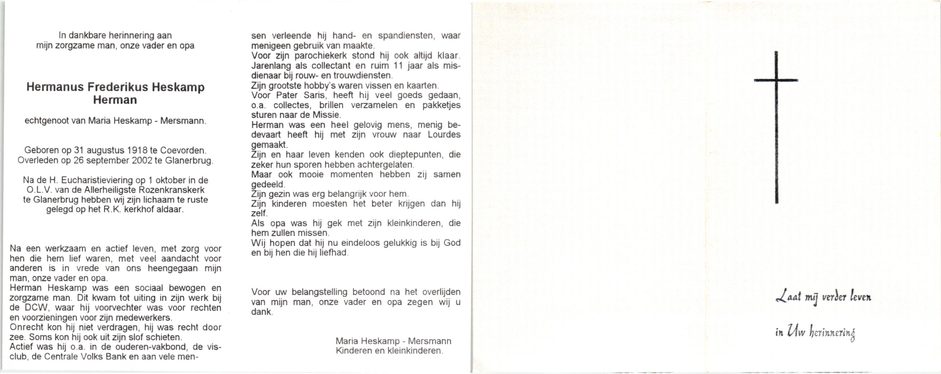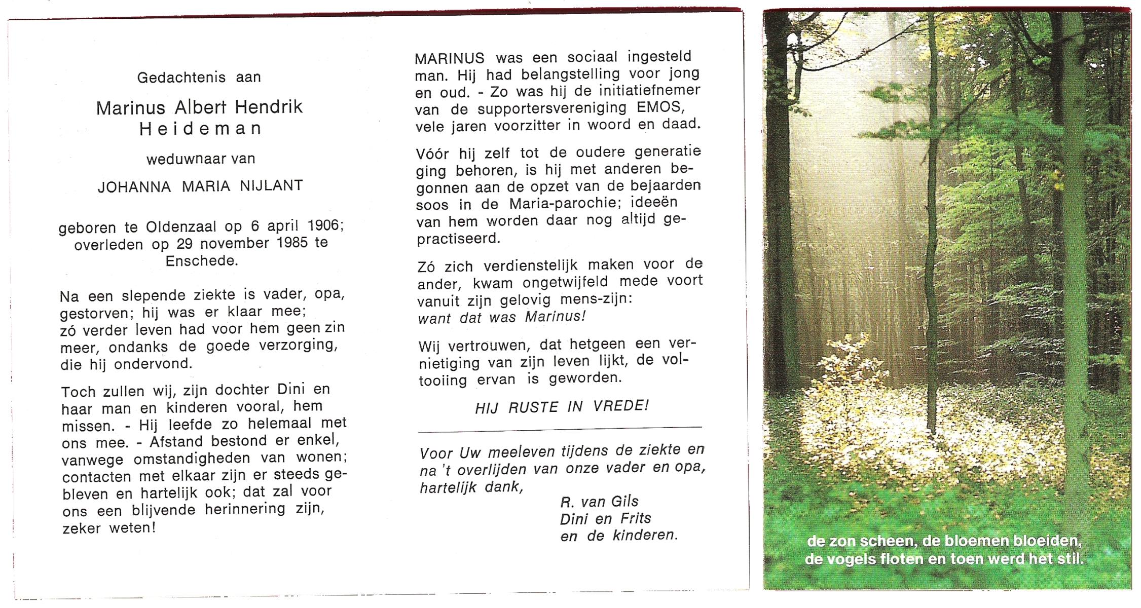 HEIDEMAN, Herman Bernard, geboren op 26-6-1920 te Oldenzaal, overleden op 17-3-1993 te Oldenzaal op 72-jarige leeftijd, gecremeerd op 22-3-1993 te Usselo.