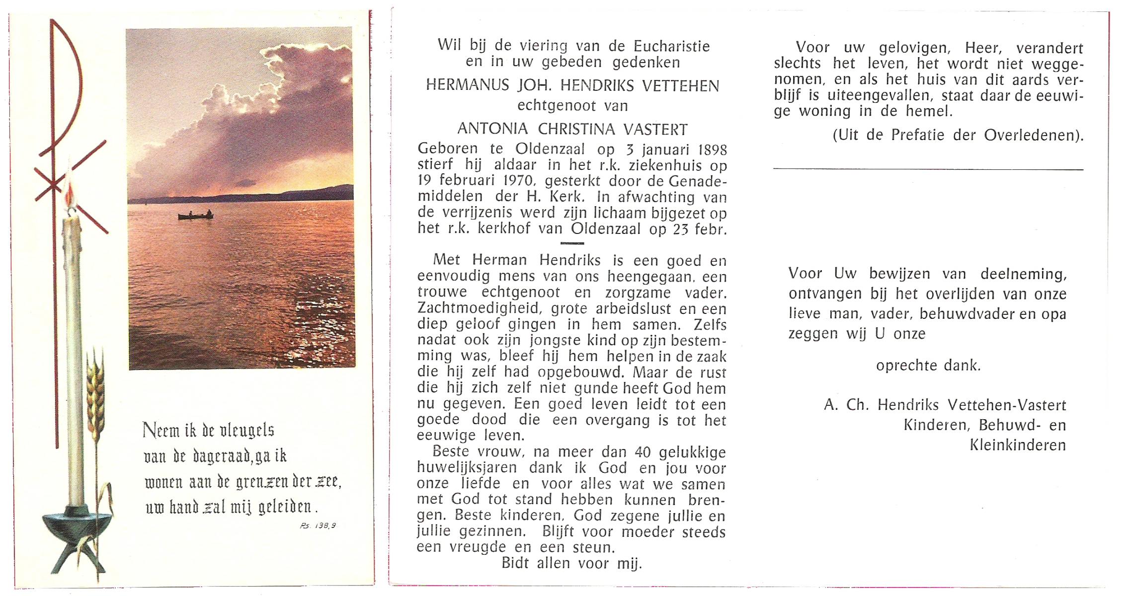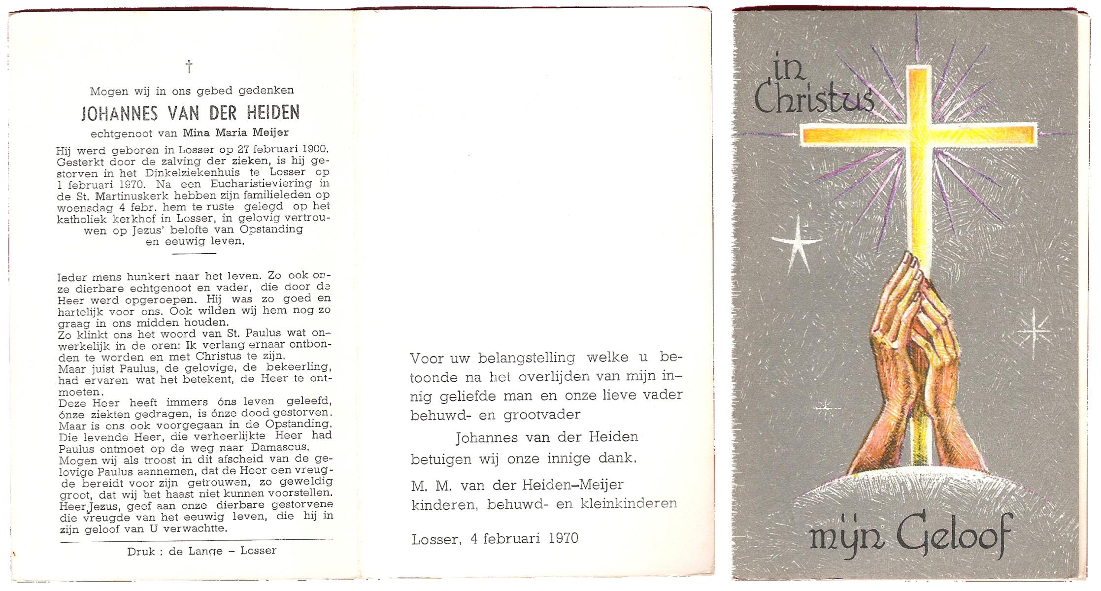 HEIDEN, van der, Johannes, geboren op 27-2-1900 te Losser, overleden op 1-2-1970 te Losser op 69-jarige leeftijd, begraven op 4-2-1970 te Losser.