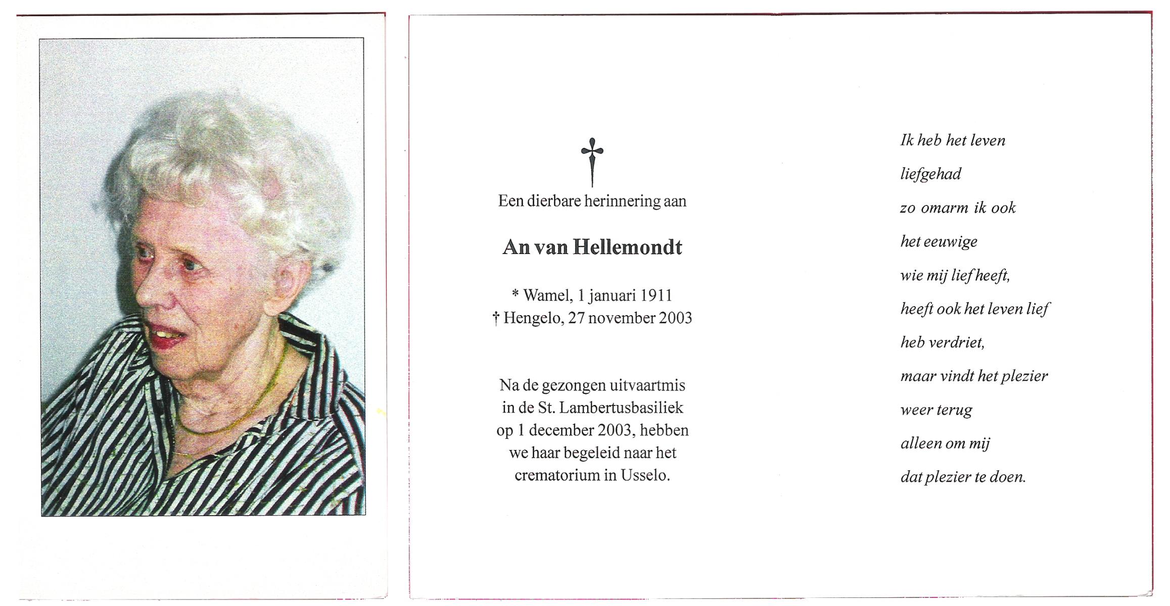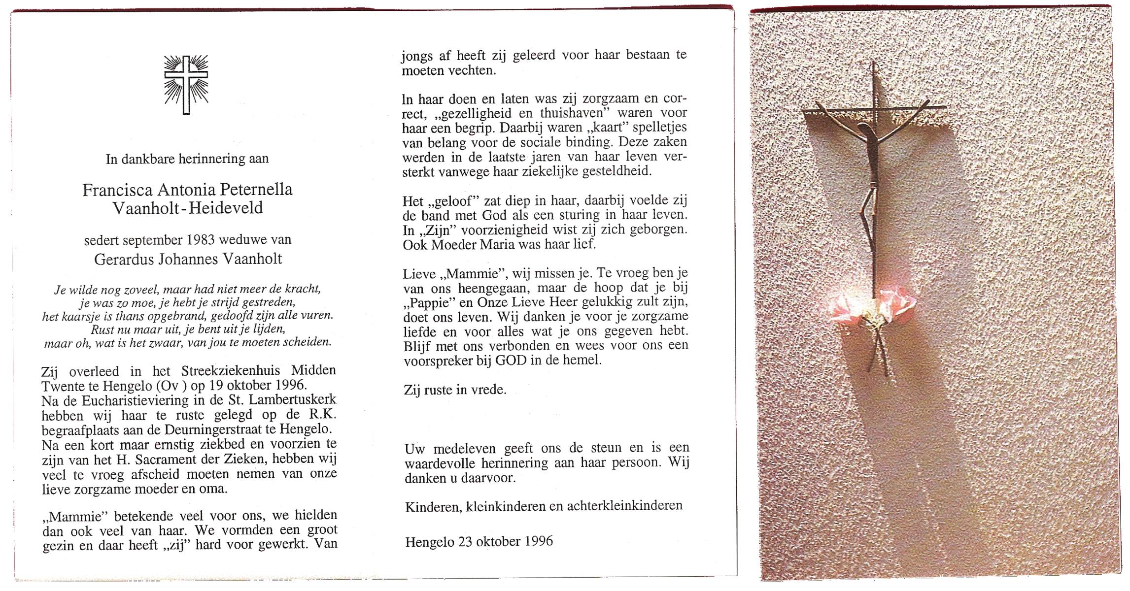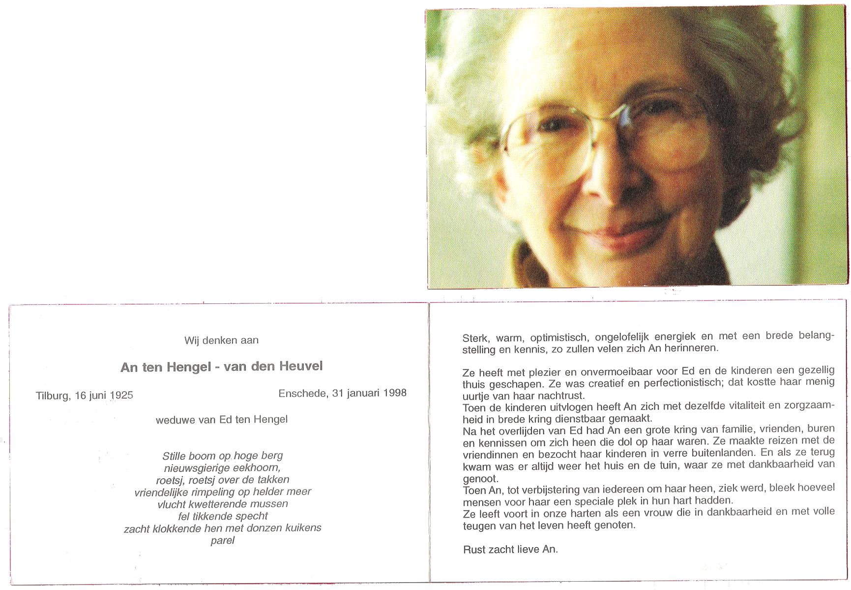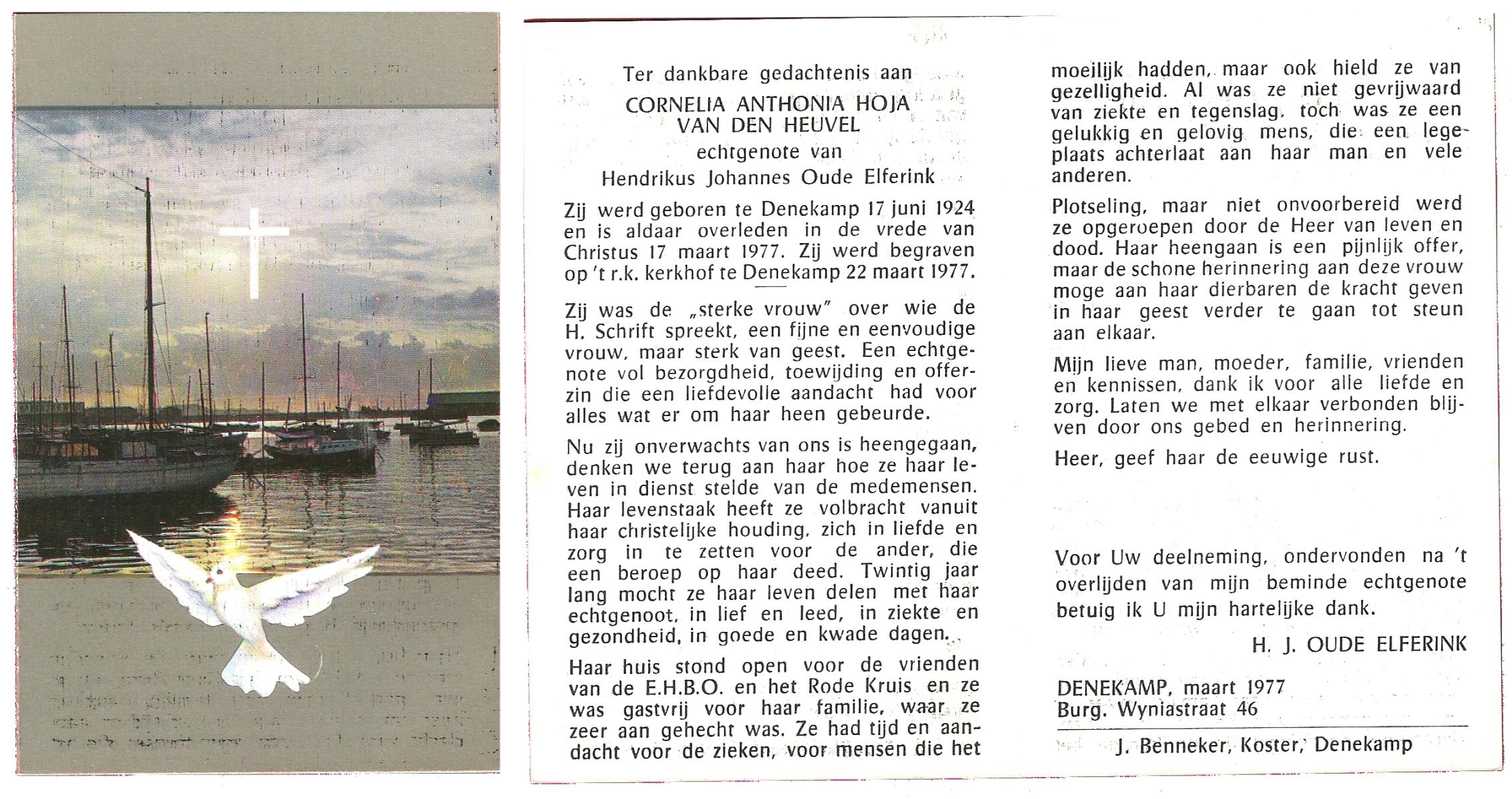 HEIDEN, van, Antonia Maria, geboren op 13-6-1922 te Arnhem, overleden op 17-8-1989 te Hengelo (O) op 67-jarige leeftijd, begraven op 21-8-1989 te Delden.