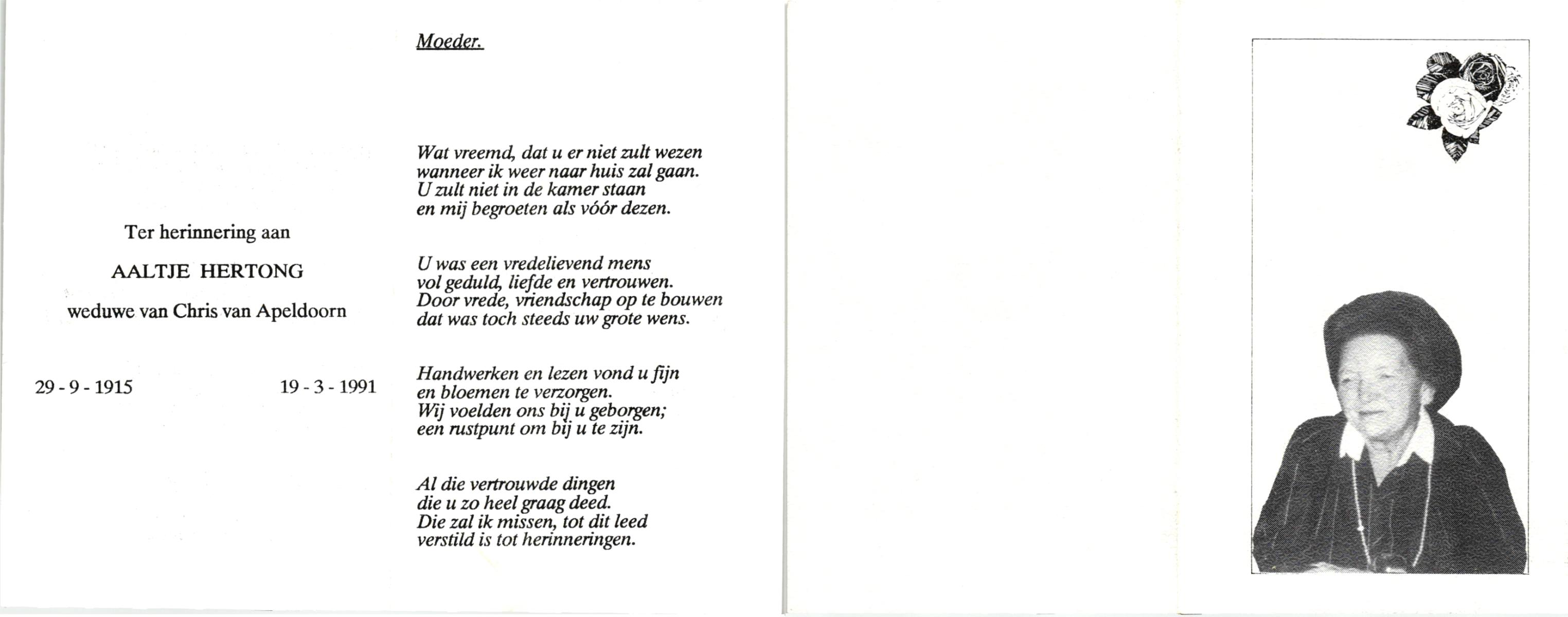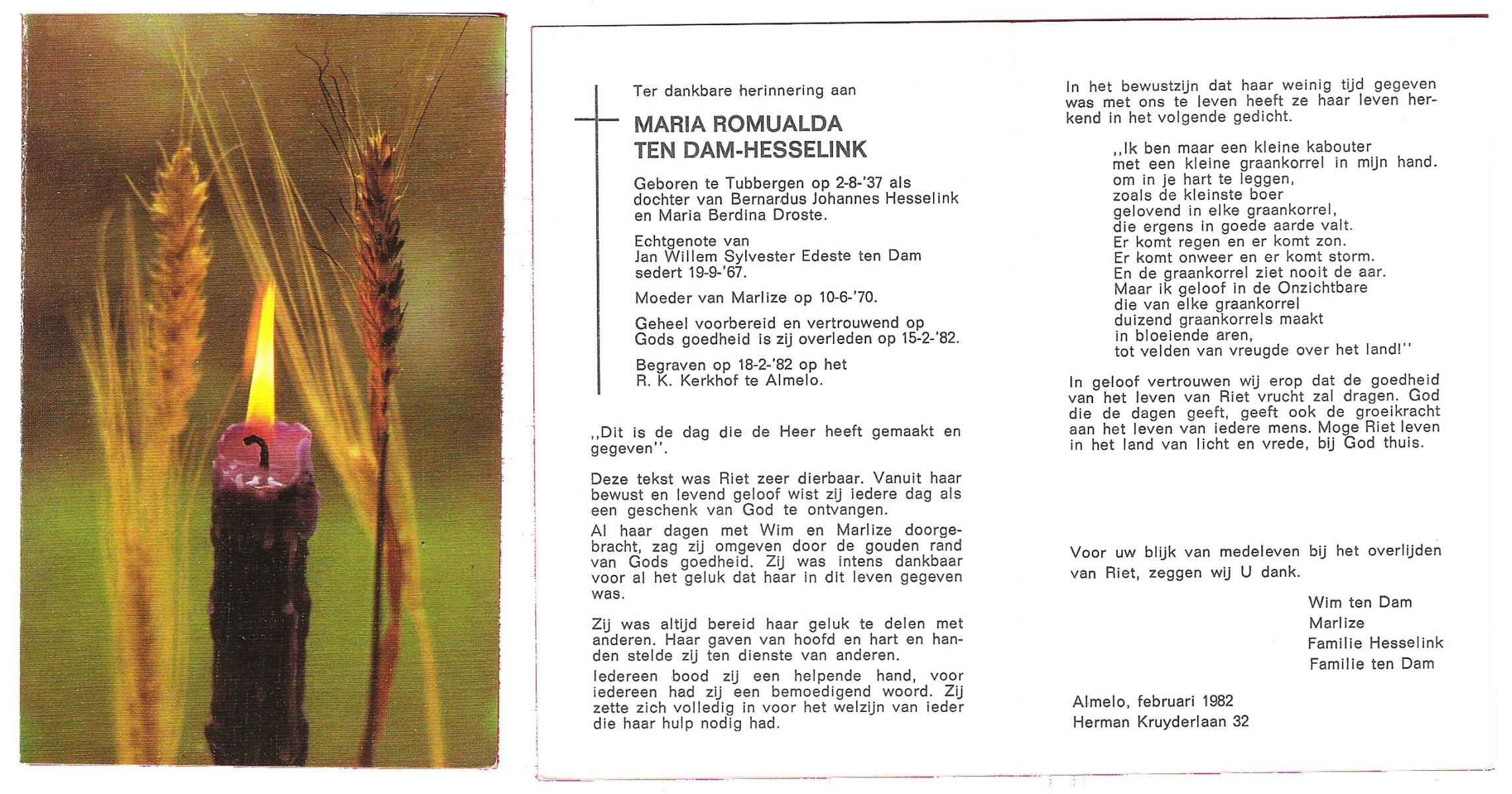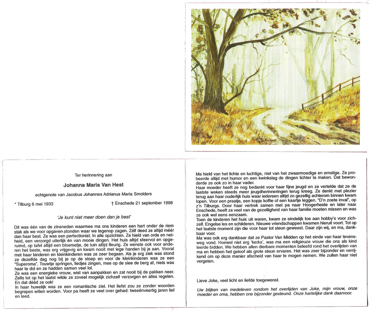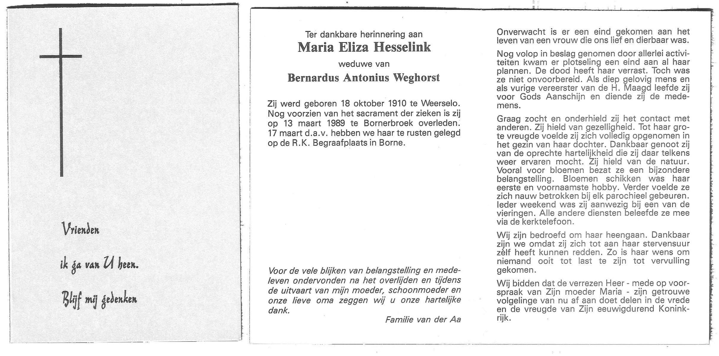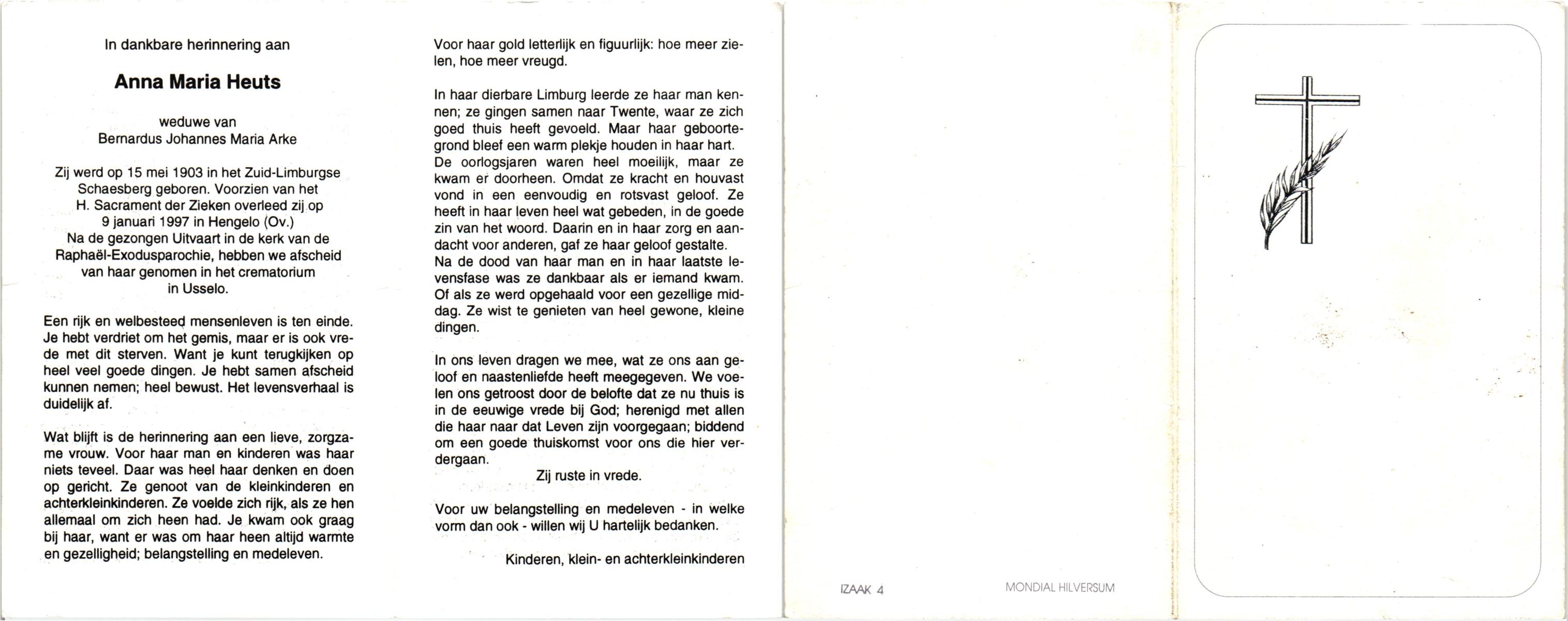 HEIDEN, van, Antonia Maria, geboren op 13-6-1922 te Arnhem, overleden op 17-8-1989 te Hengelo (O) op 67-jarige leeftijd, begraven op 21-8-1989 te Delden.