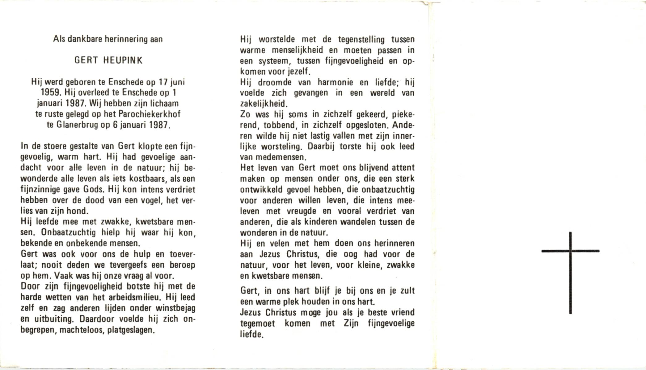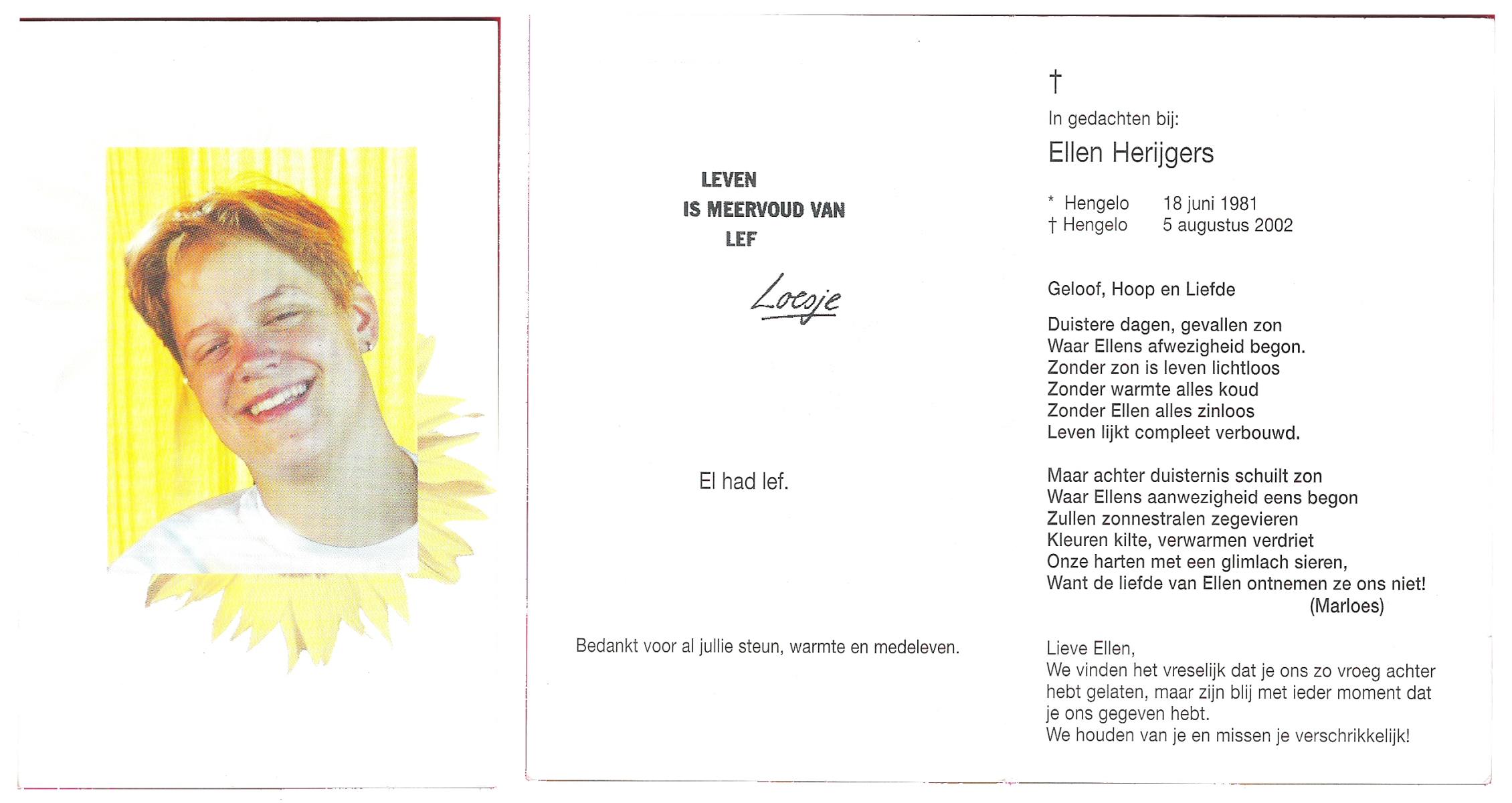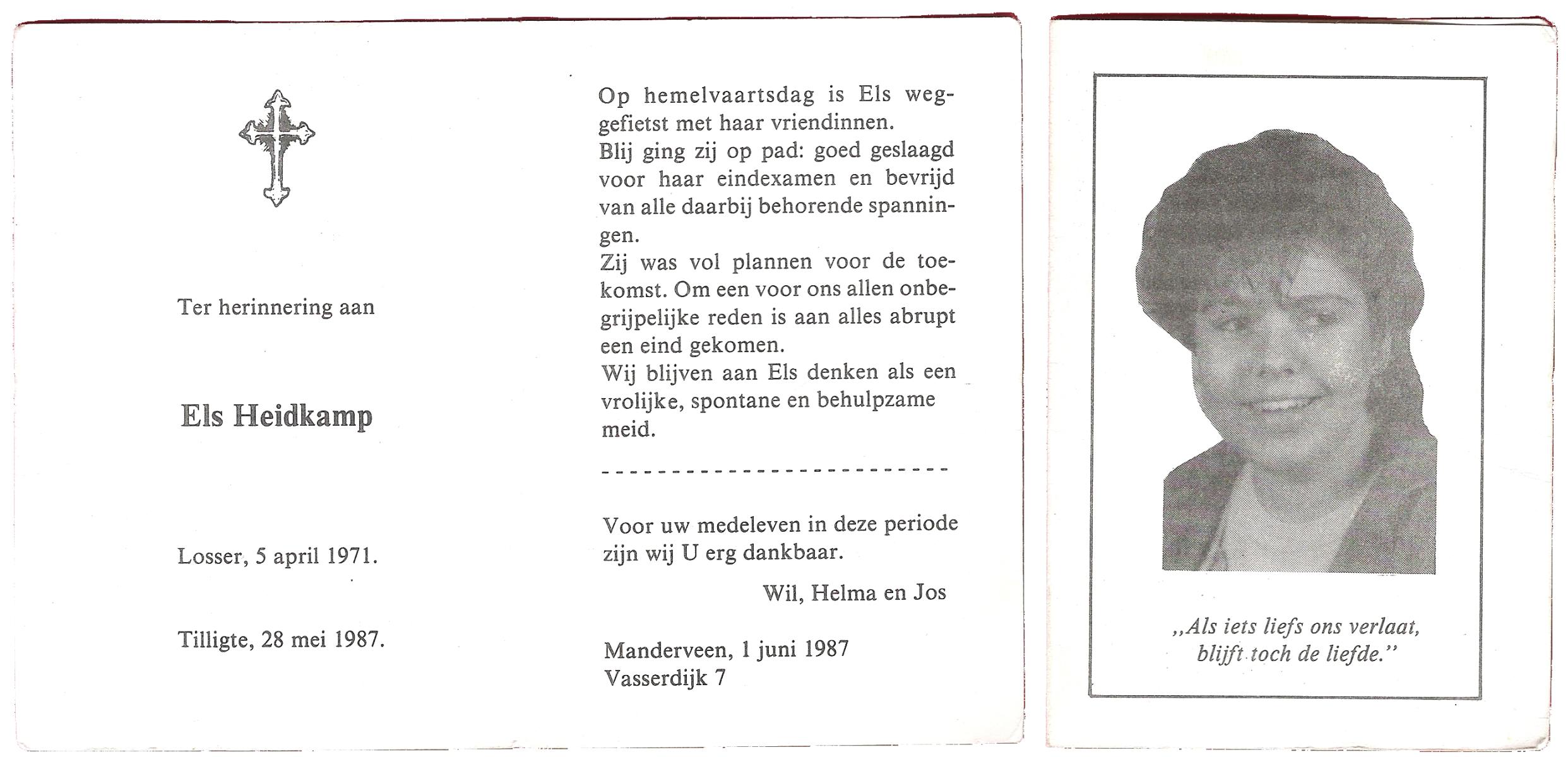 HEIDKAMP, Els, geboren op 5-4-1971 te Losser, overleden op 28-5-1987 te Tilligte op 16-jarige leeftijd.