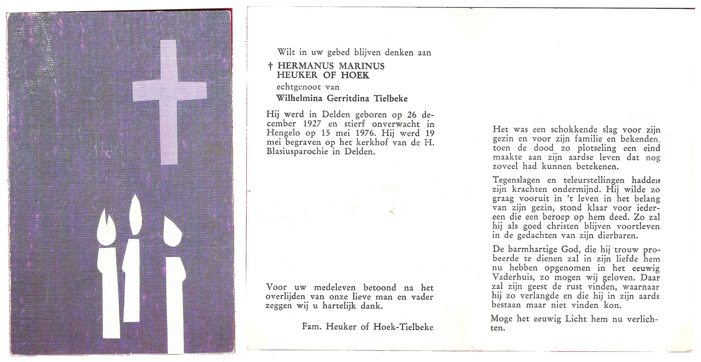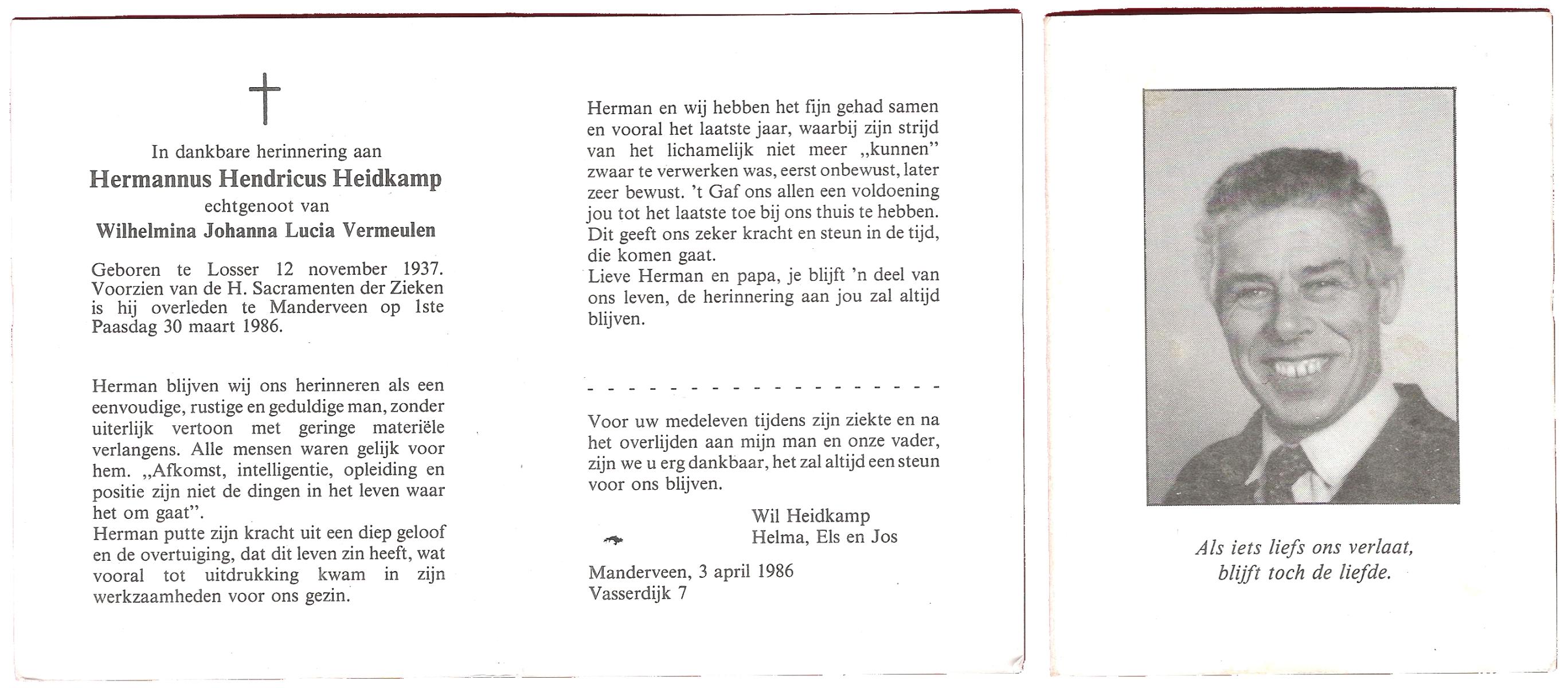 HEIDKAMP, Hermannus Hendricus, geboren op 12-11-1937 te Losser, overleden op 30-3-1986 te Mander op 48-jarige leeftijd.