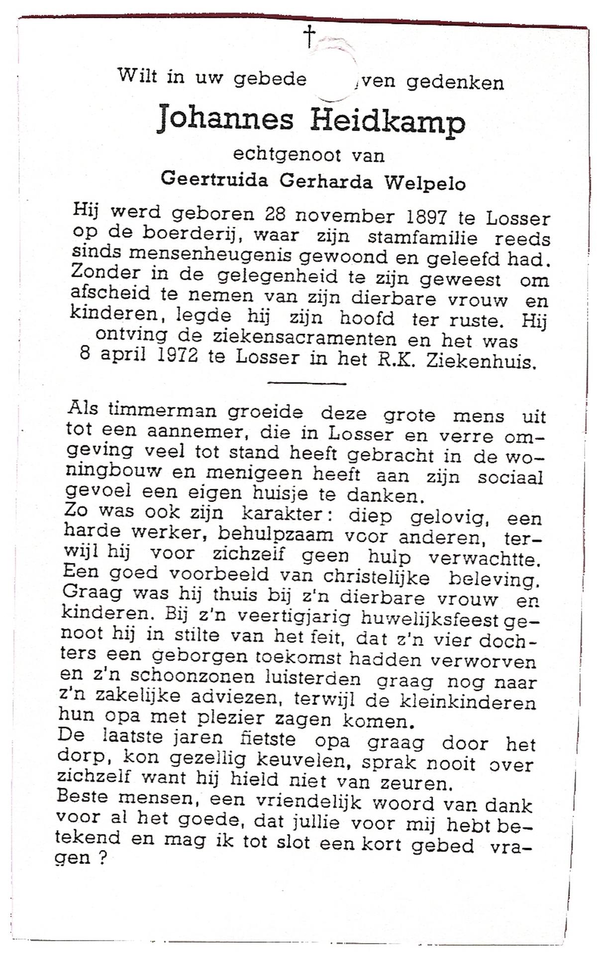 HEIDKAMP, Johannes, geboren op 28-11-1897 te Losser, overleden op 8-4-1972 te Losser op 74-jarige leeftijd.