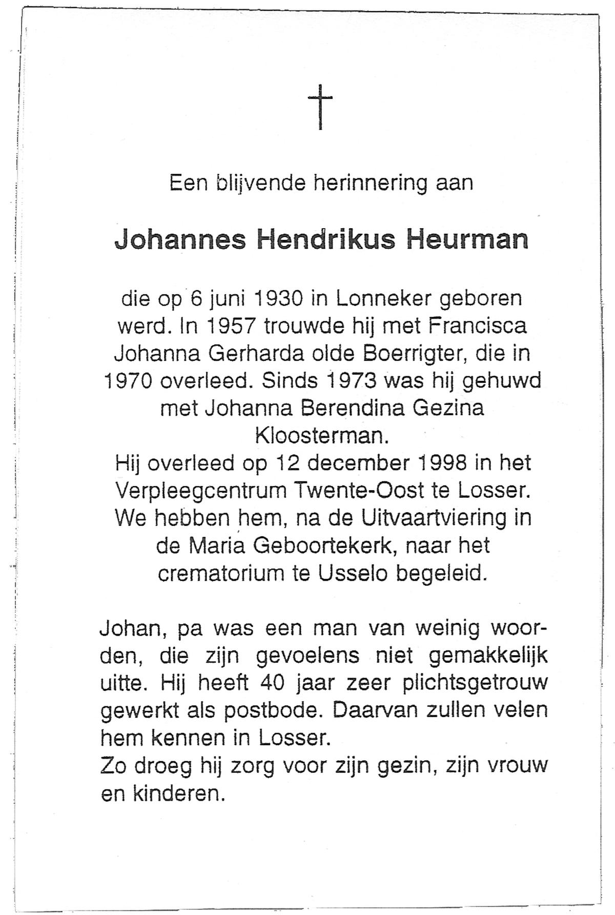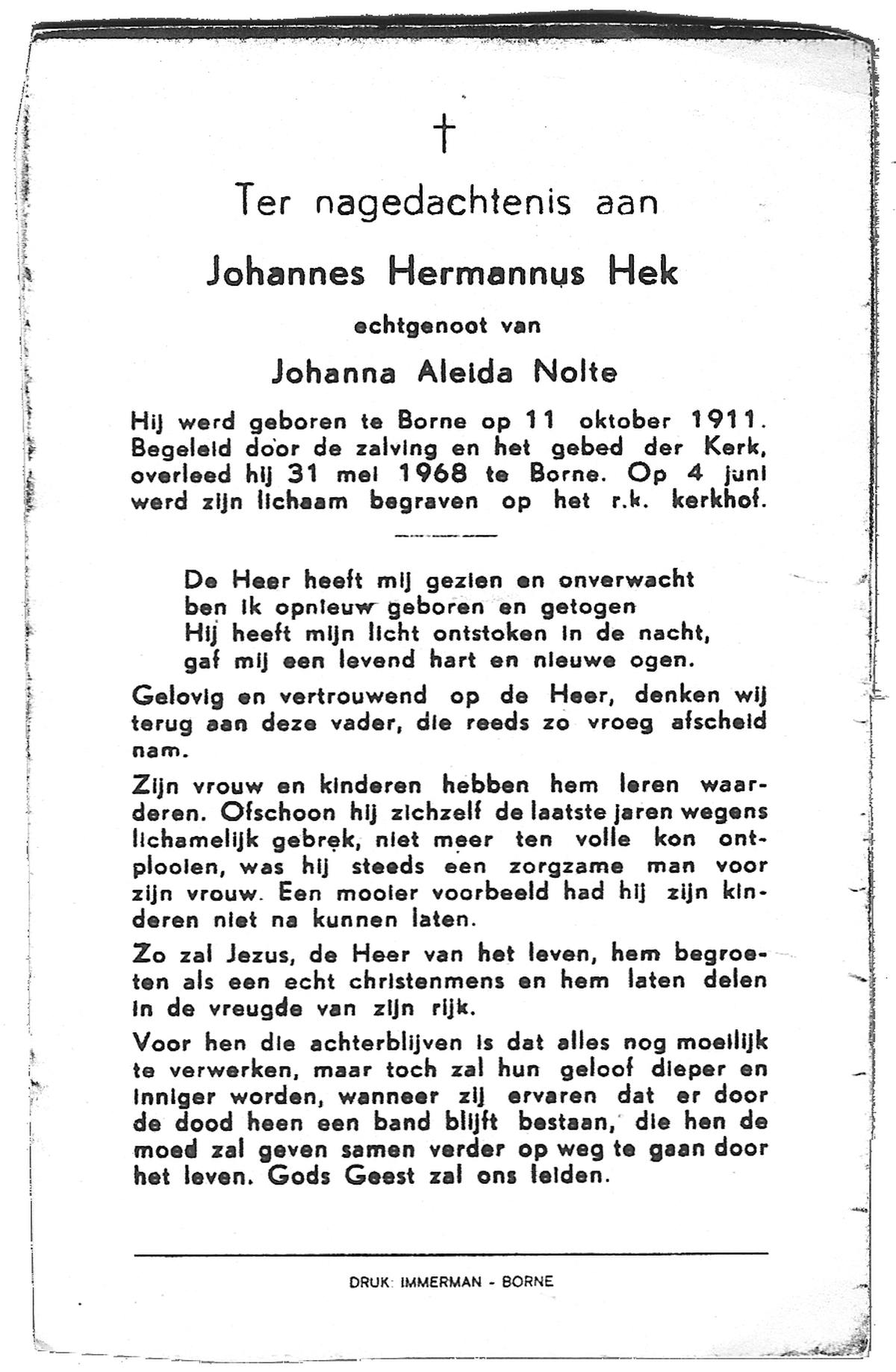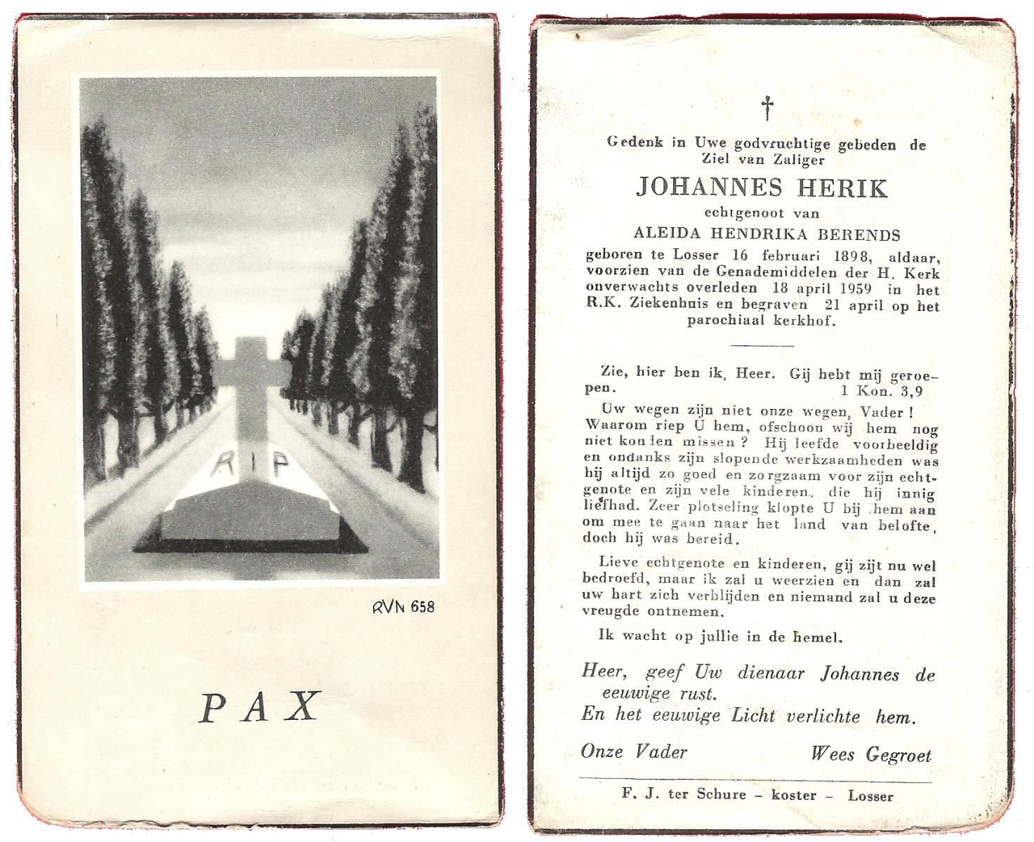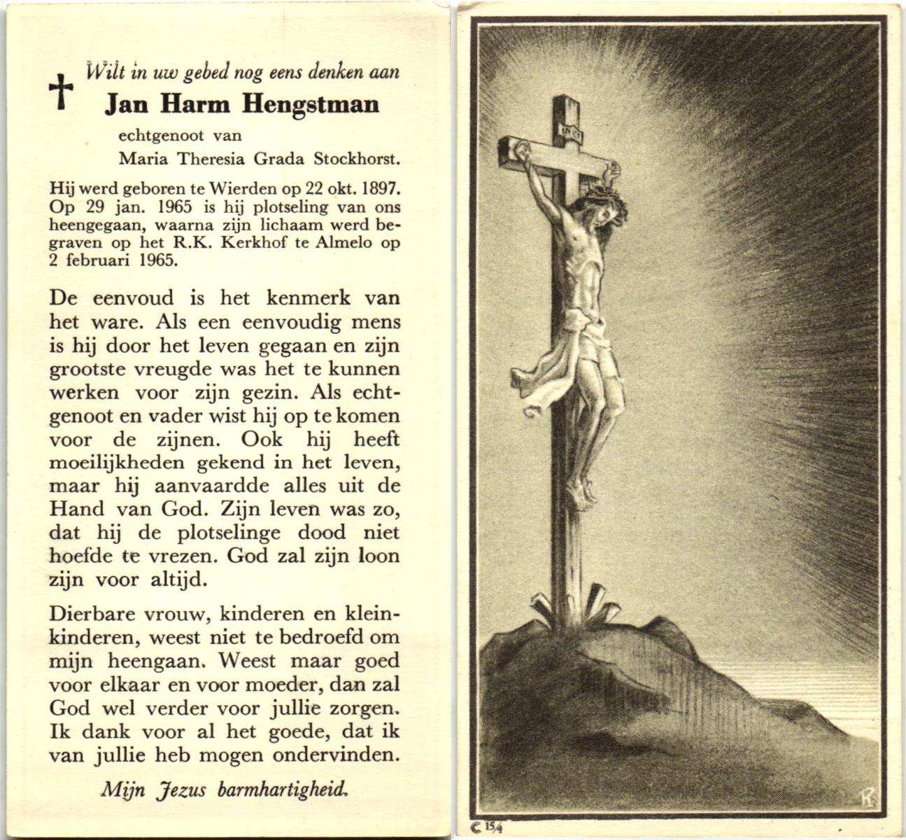 HEIJDEMANN, Johannes Hendrikus Gerhardus, geboren op 5-9-1911 te Overdinkel, overleden op 14-2-1968 te Losser op 56-jarige leeftijd, begraven op 17-2-1968 te Overdinkel.