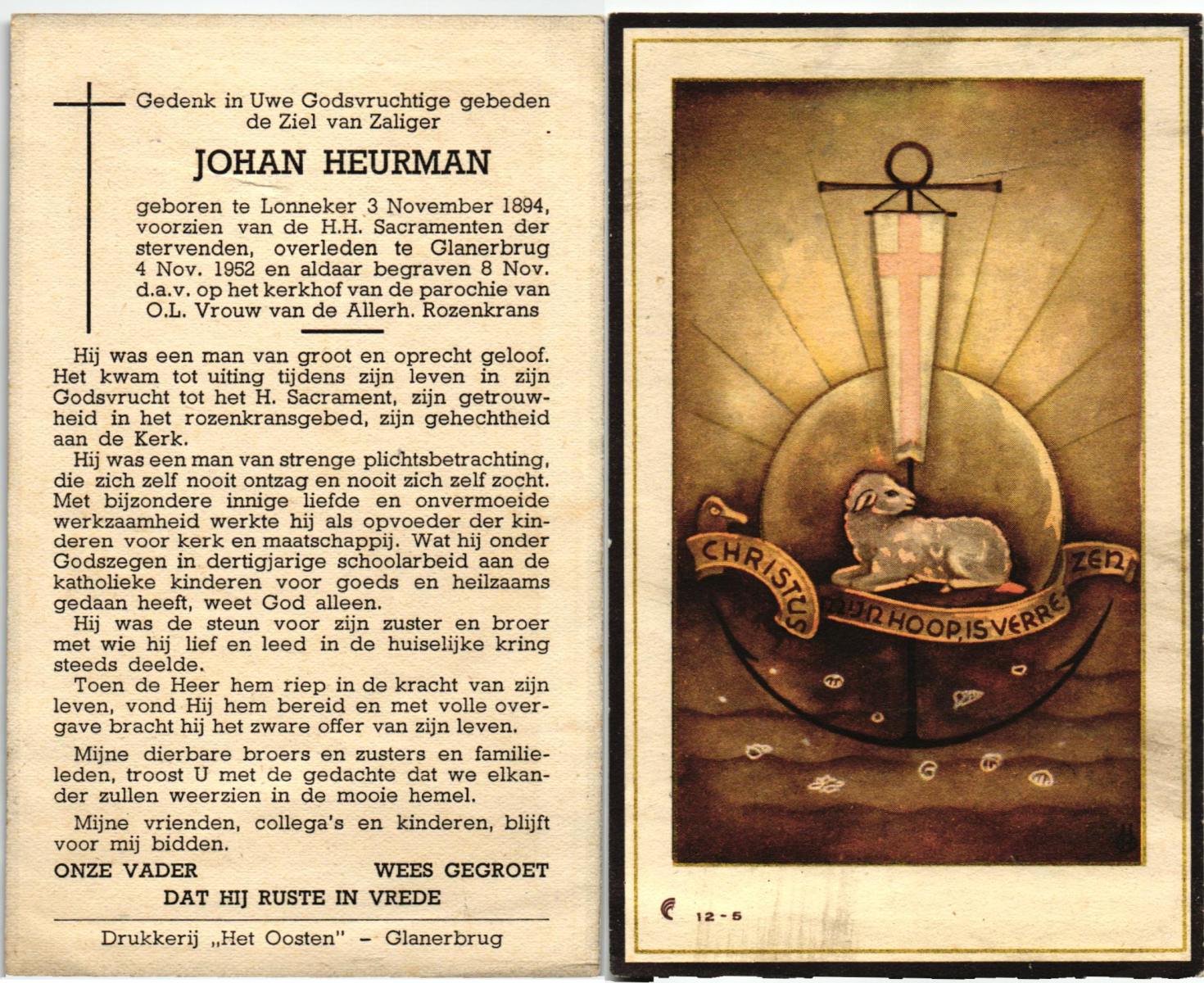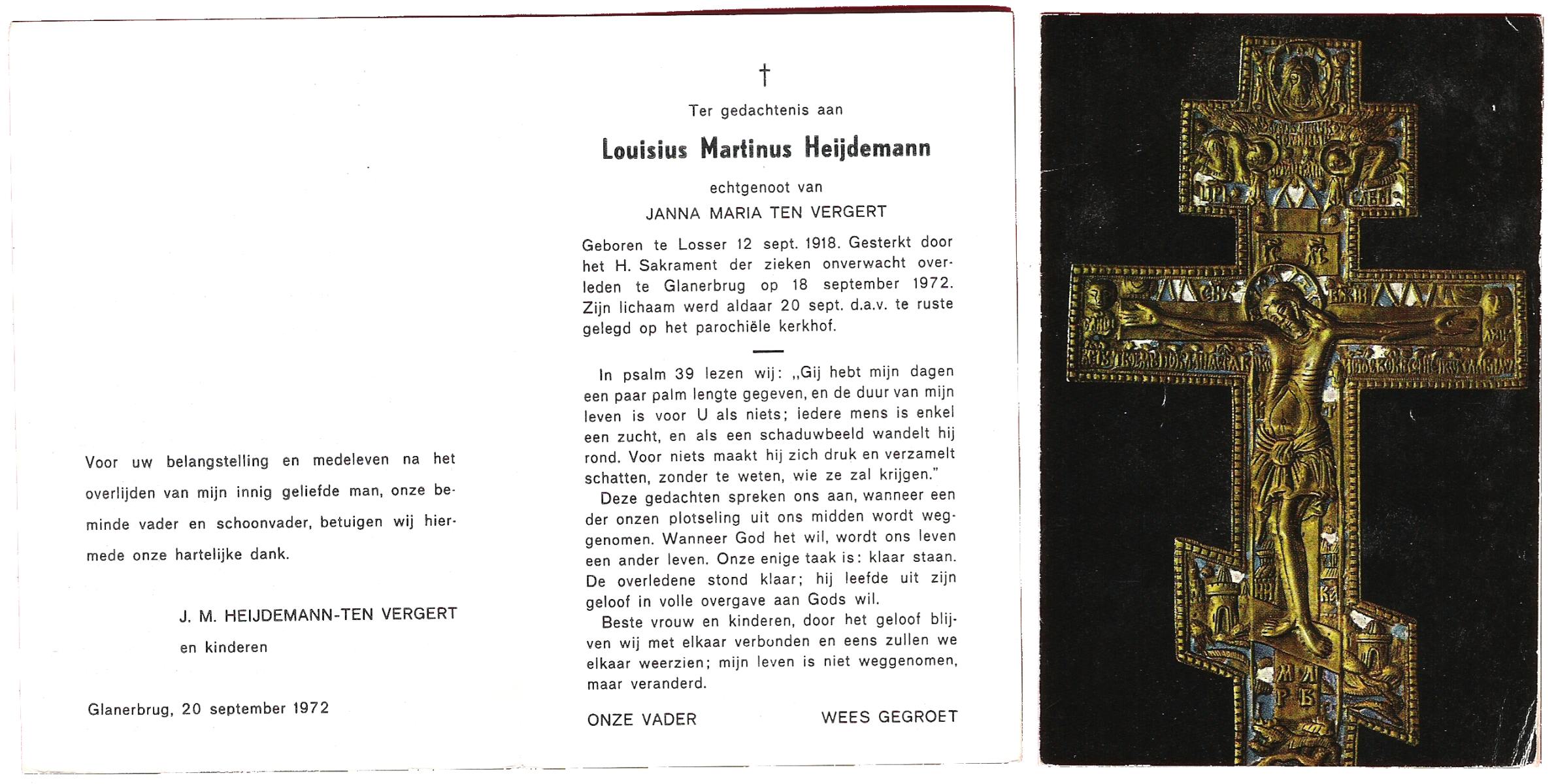 HEIJDEMANN, Lousius Martinus, geboren op 12-9-1918 te Losser, overleden op 18-9-1972 te Glanerbrug op 54-jarige leeftijd, begraven op 20-9-1972 te Glanerbrug.