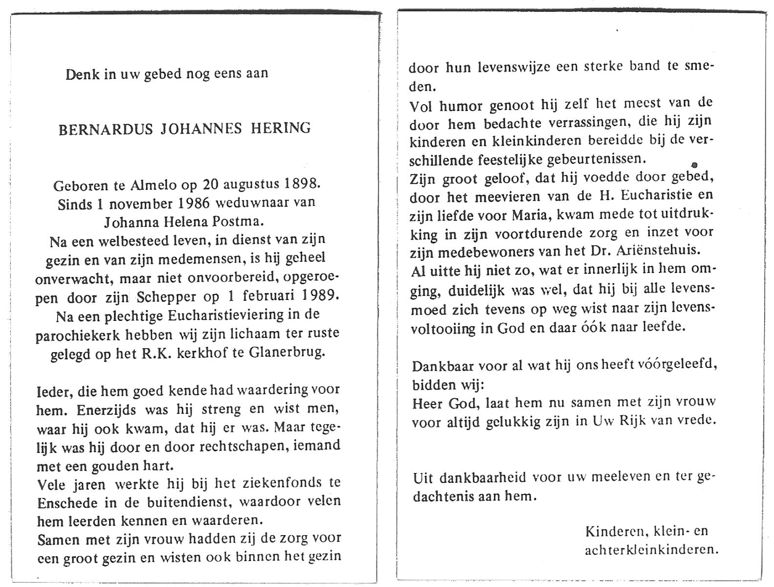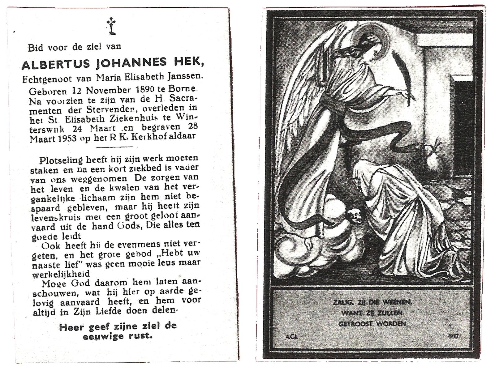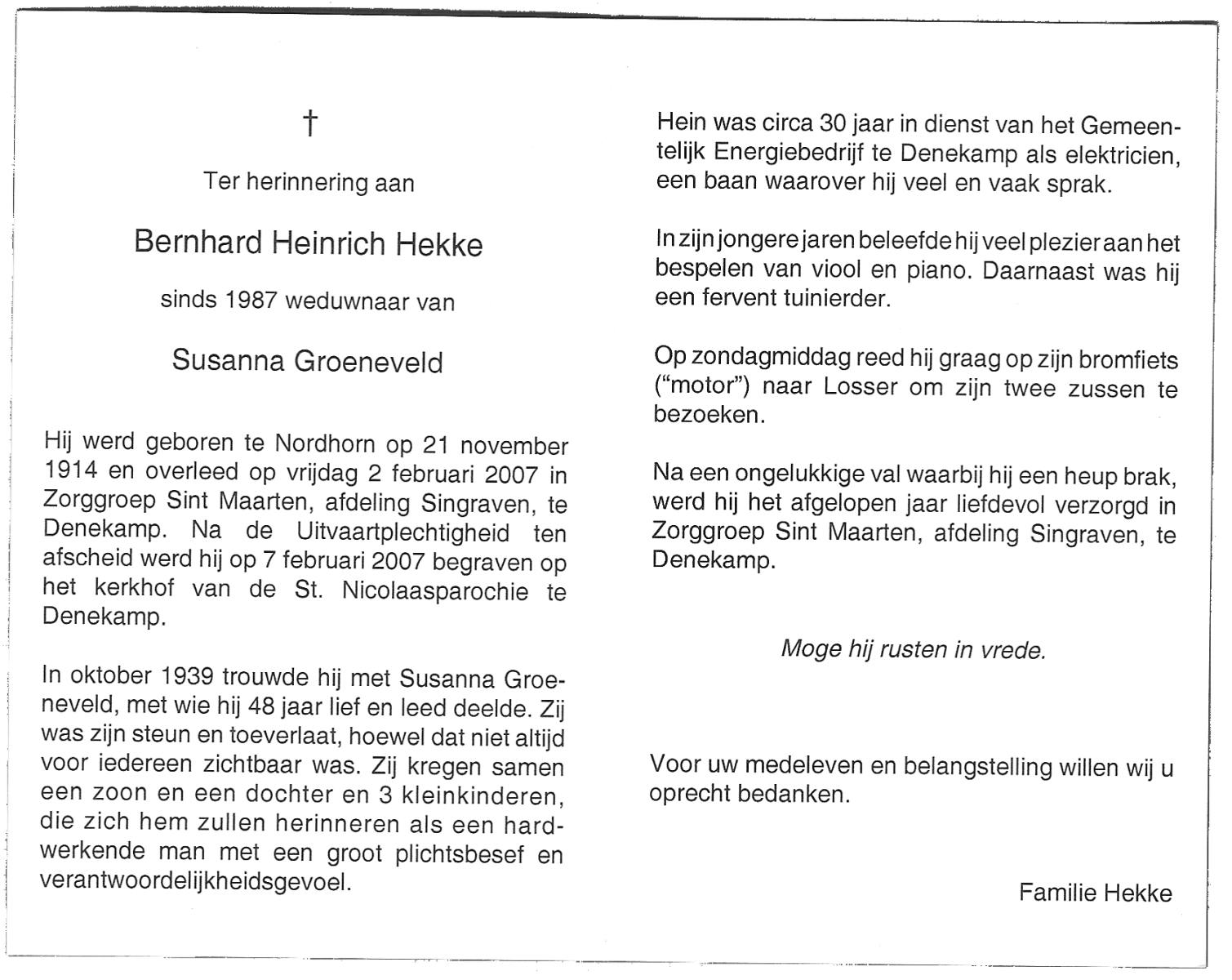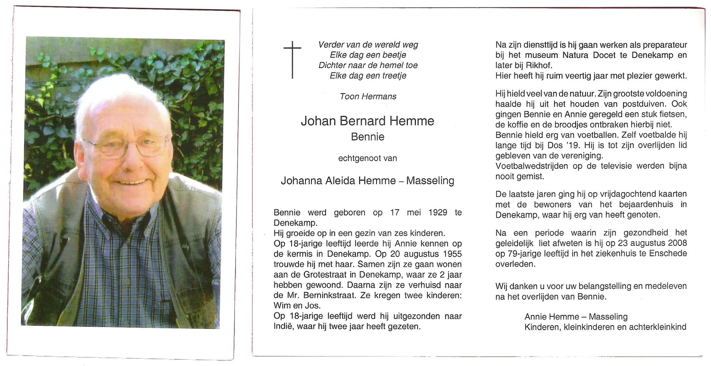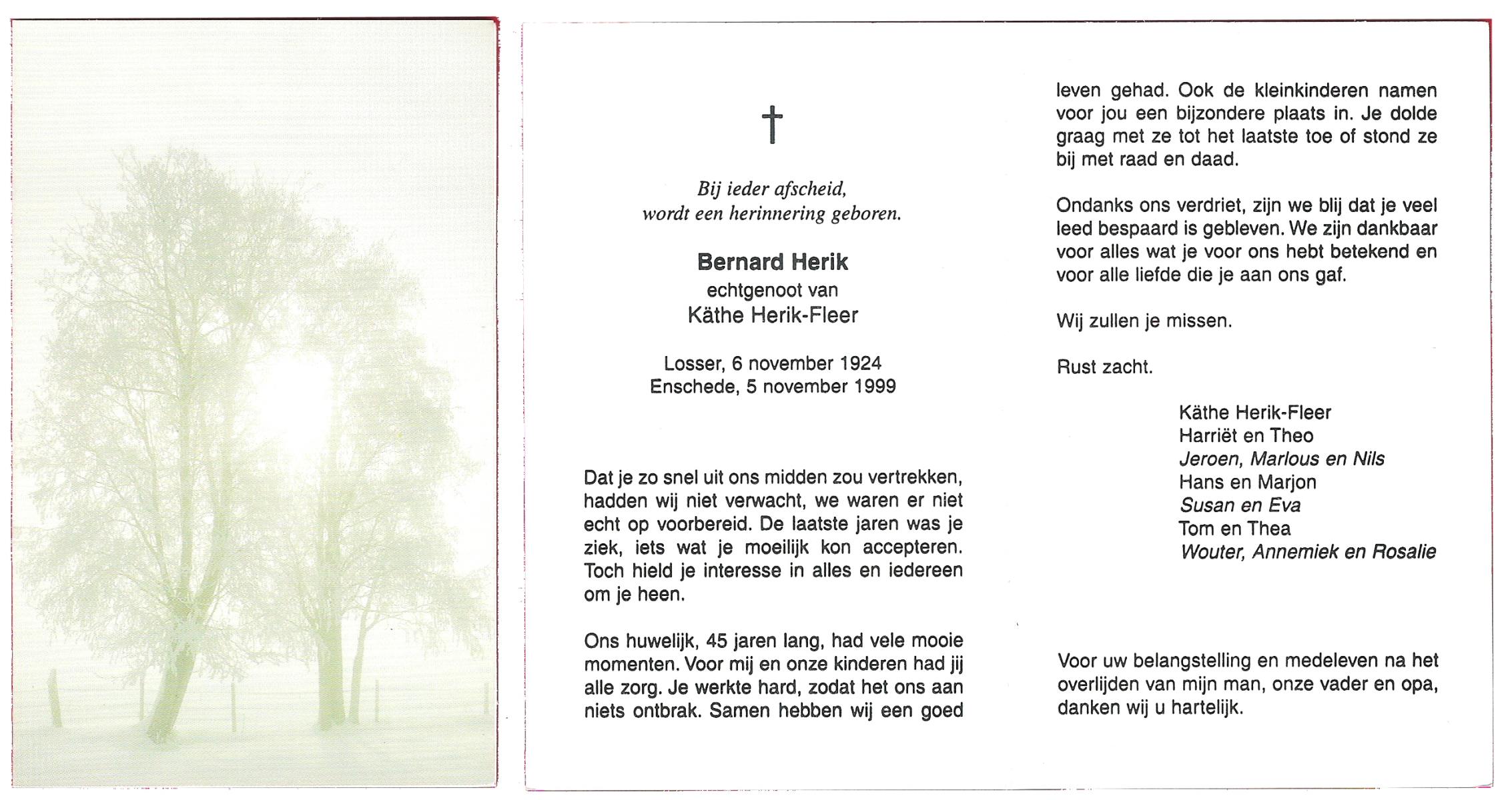 HEIJMER, Bernardus Antonius (Bernard), geboren op 9-9-1921 te Hengevelde, overleden op 25-2-1998 te Nordhorn, Dld op 76-jarige leeftijd, begraven op 2-3-1998 te Hengevelde.