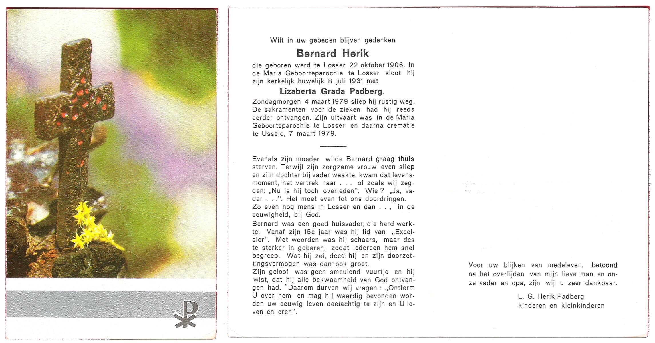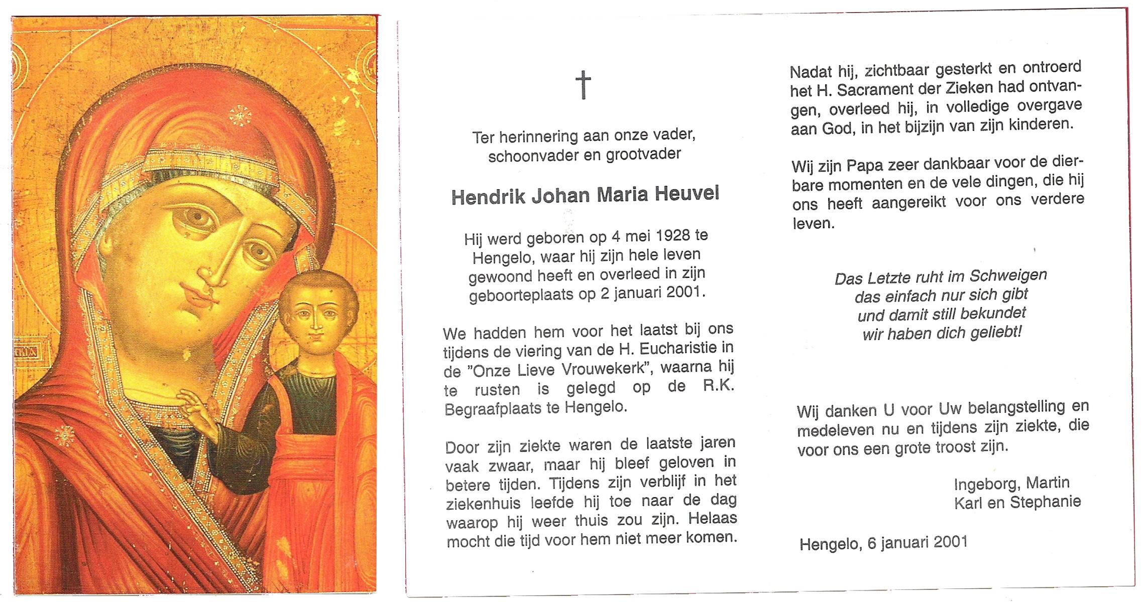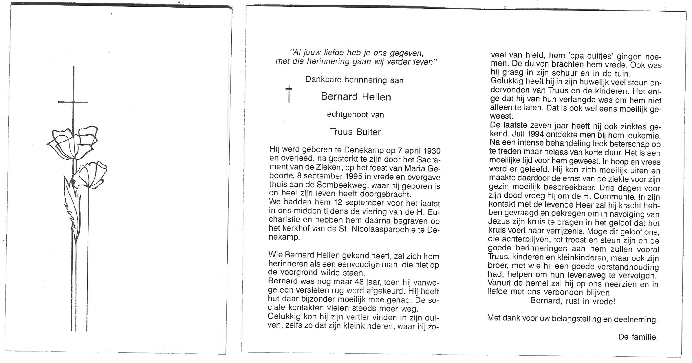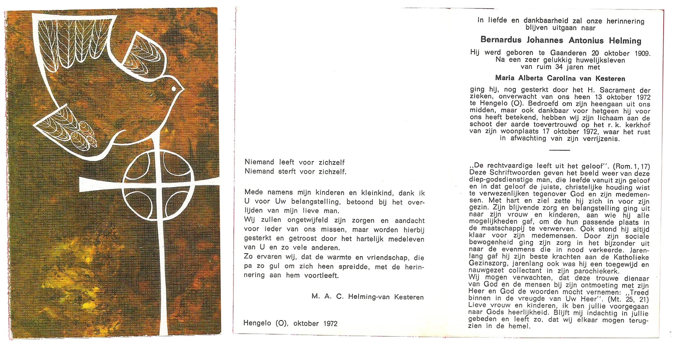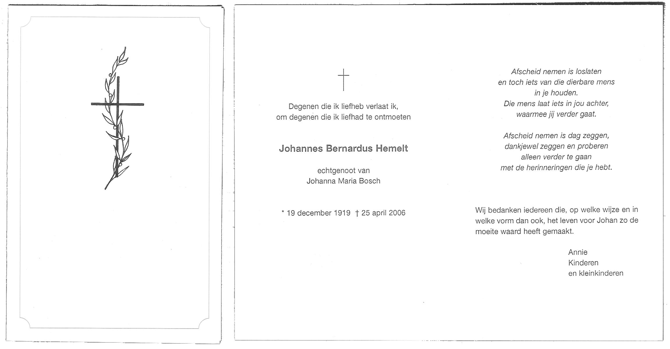 HEIJMER, Bernardus Antonius (Bernard), geboren op 9-9-1921 te Hengevelde, overleden op 25-2-1998 te Nordhorn, Dld op 76-jarige leeftijd, begraven op 2-3-1998 te Hengevelde.