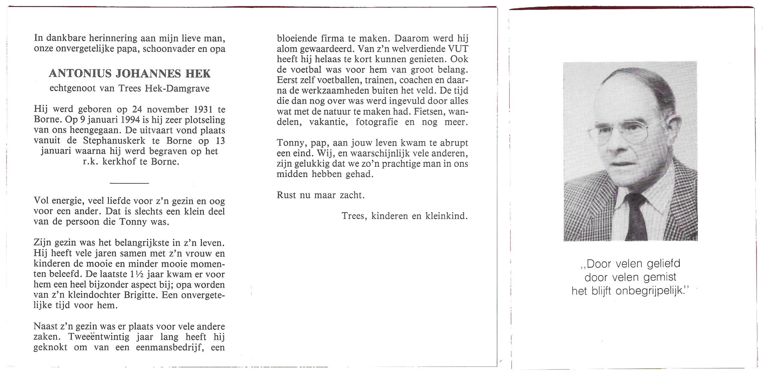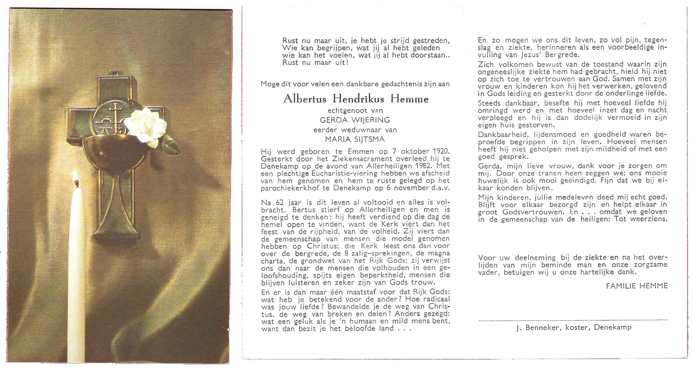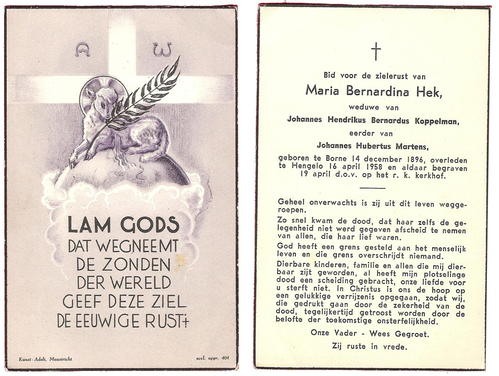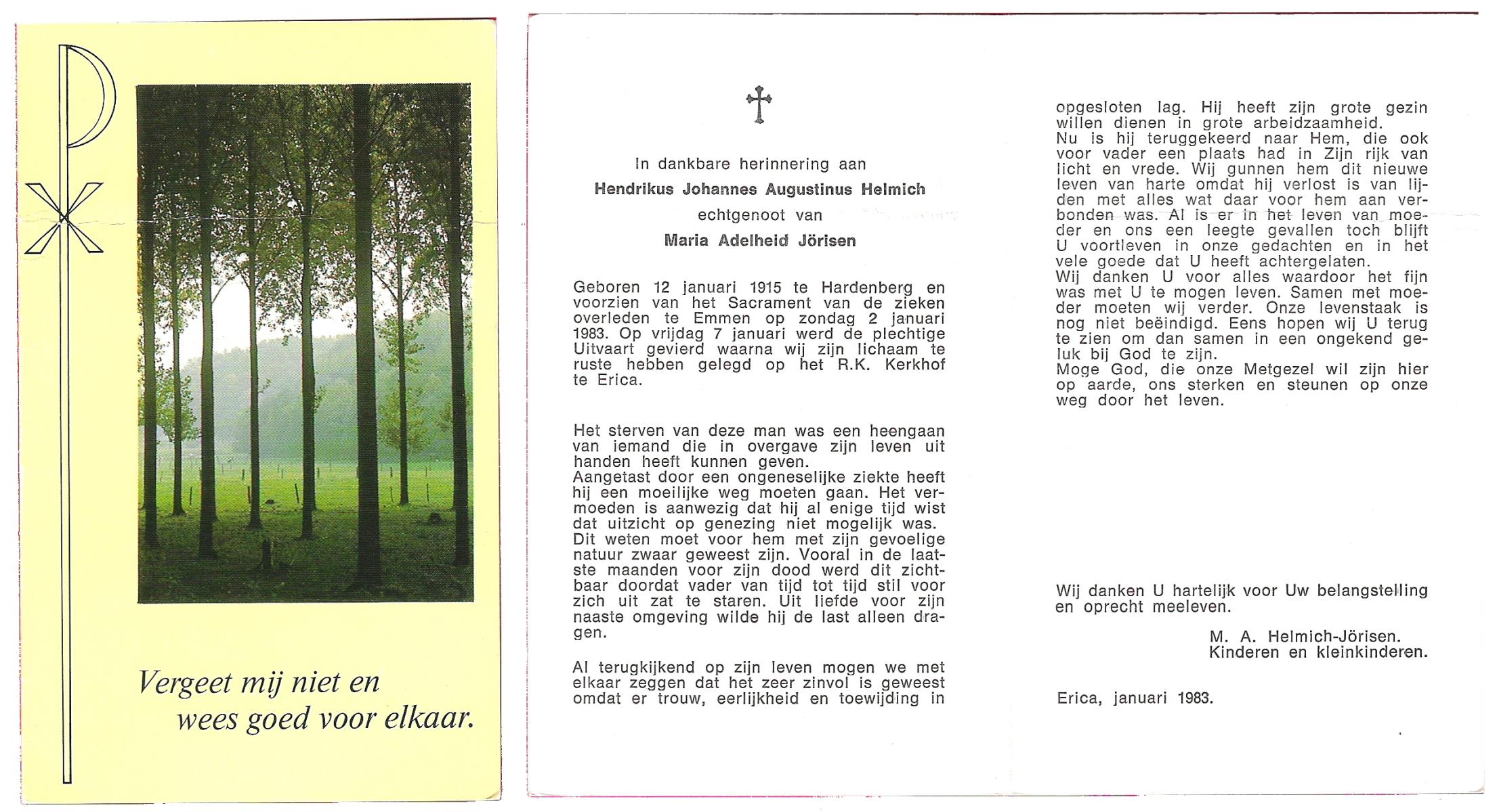 HEIJMER, Bernardus Antonius (Bernard), geboren op 9-9-1921 te Hengevelde, overleden op 25-2-1998 te Nordhorn, Dld op 76-jarige leeftijd, begraven op 2-3-1998 te Hengevelde.