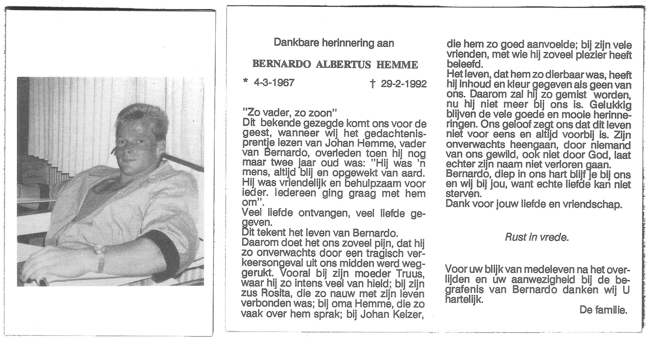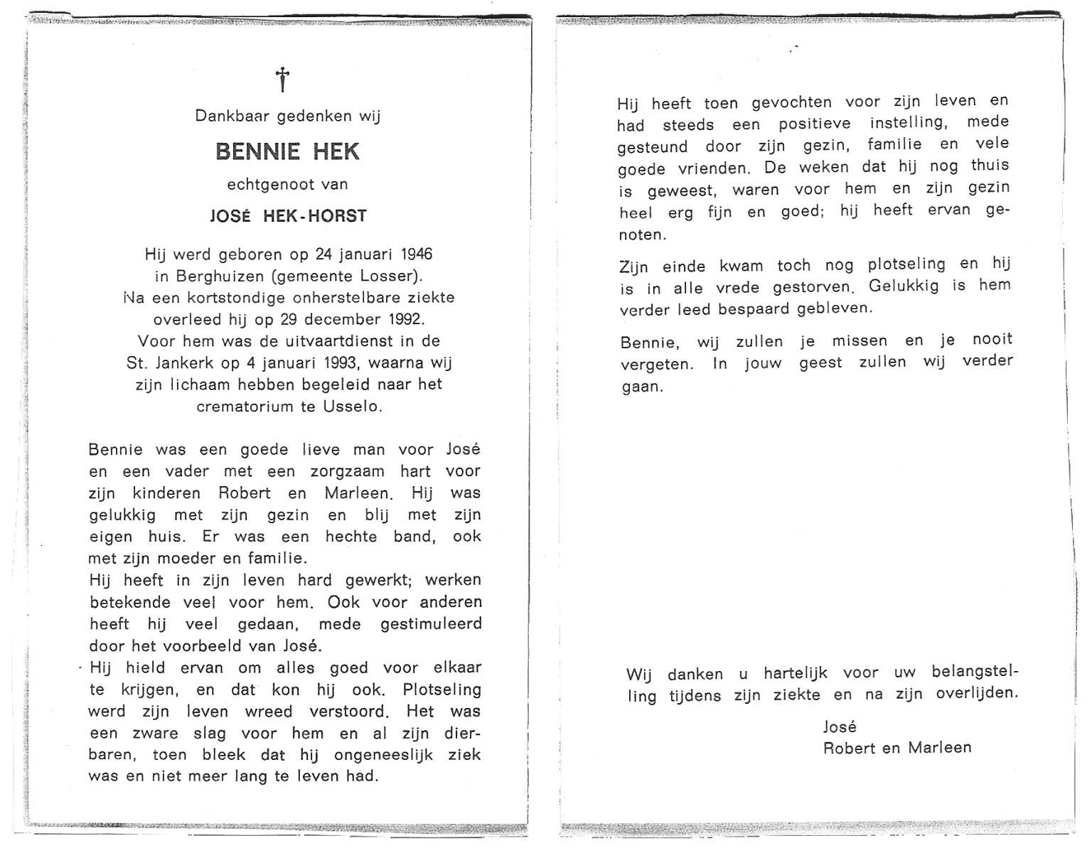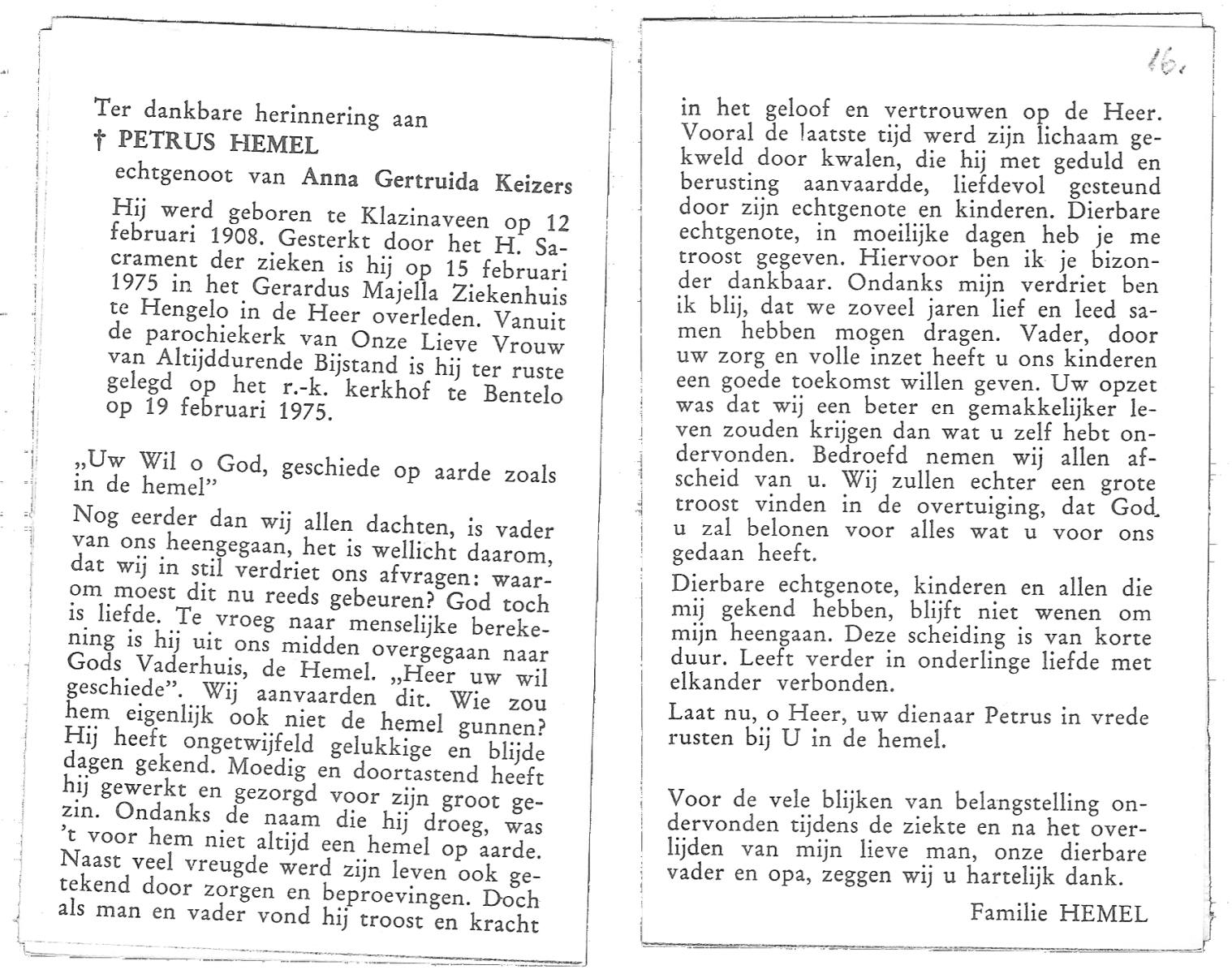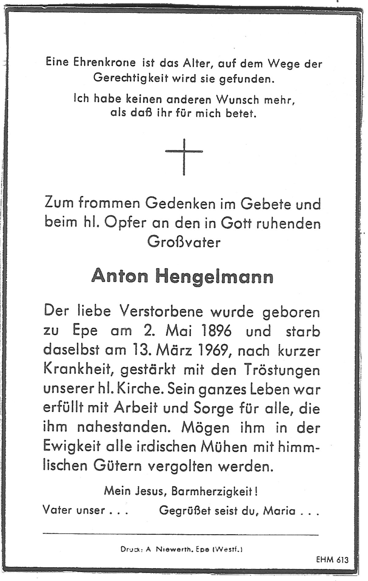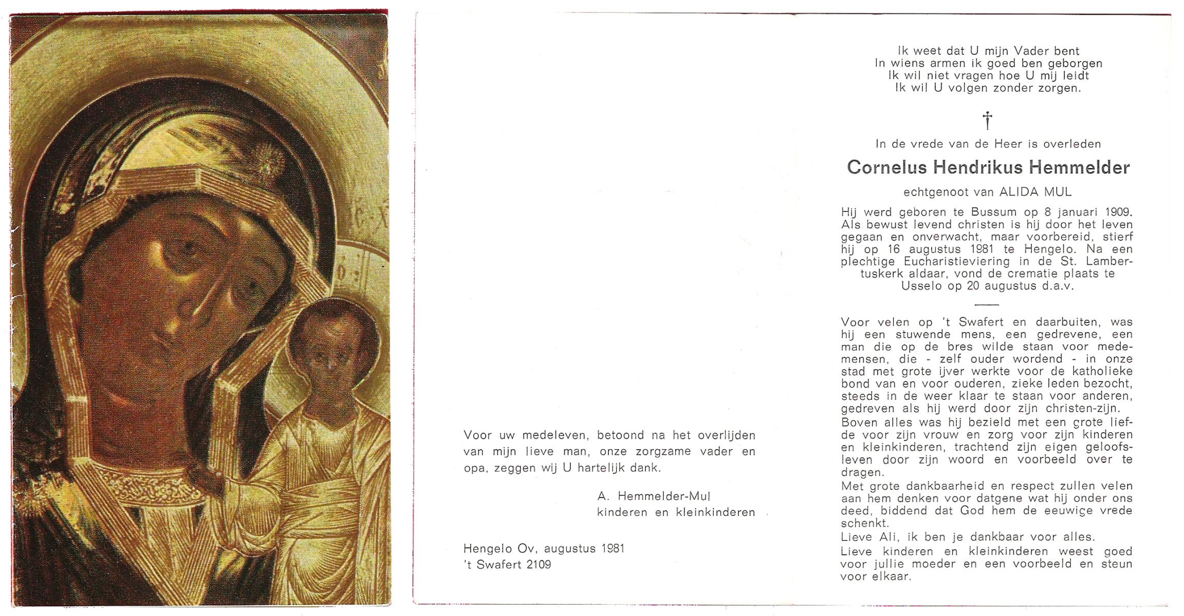 HEIJMER, Bernardus Antonius (Bernard), geboren op 9-9-1921 te Hengevelde, overleden op 25-2-1998 te Nordhorn, Dld op 76-jarige leeftijd, begraven op 2-3-1998 te Hengevelde.