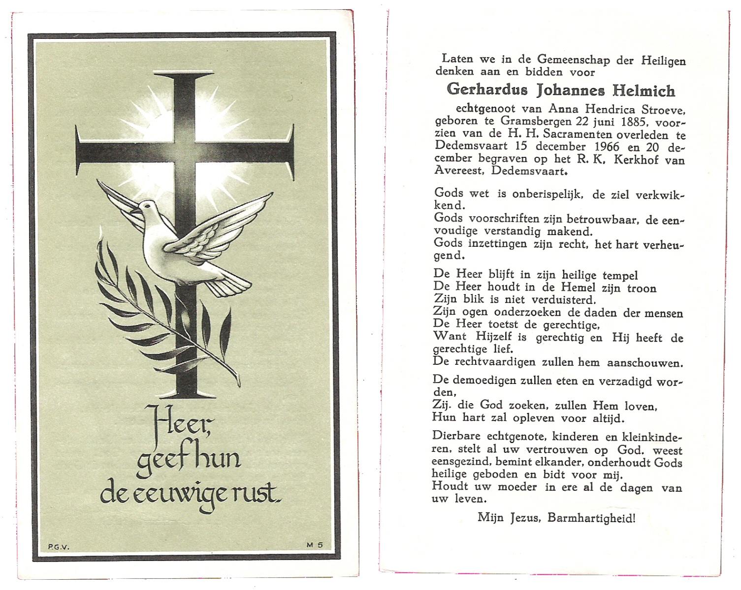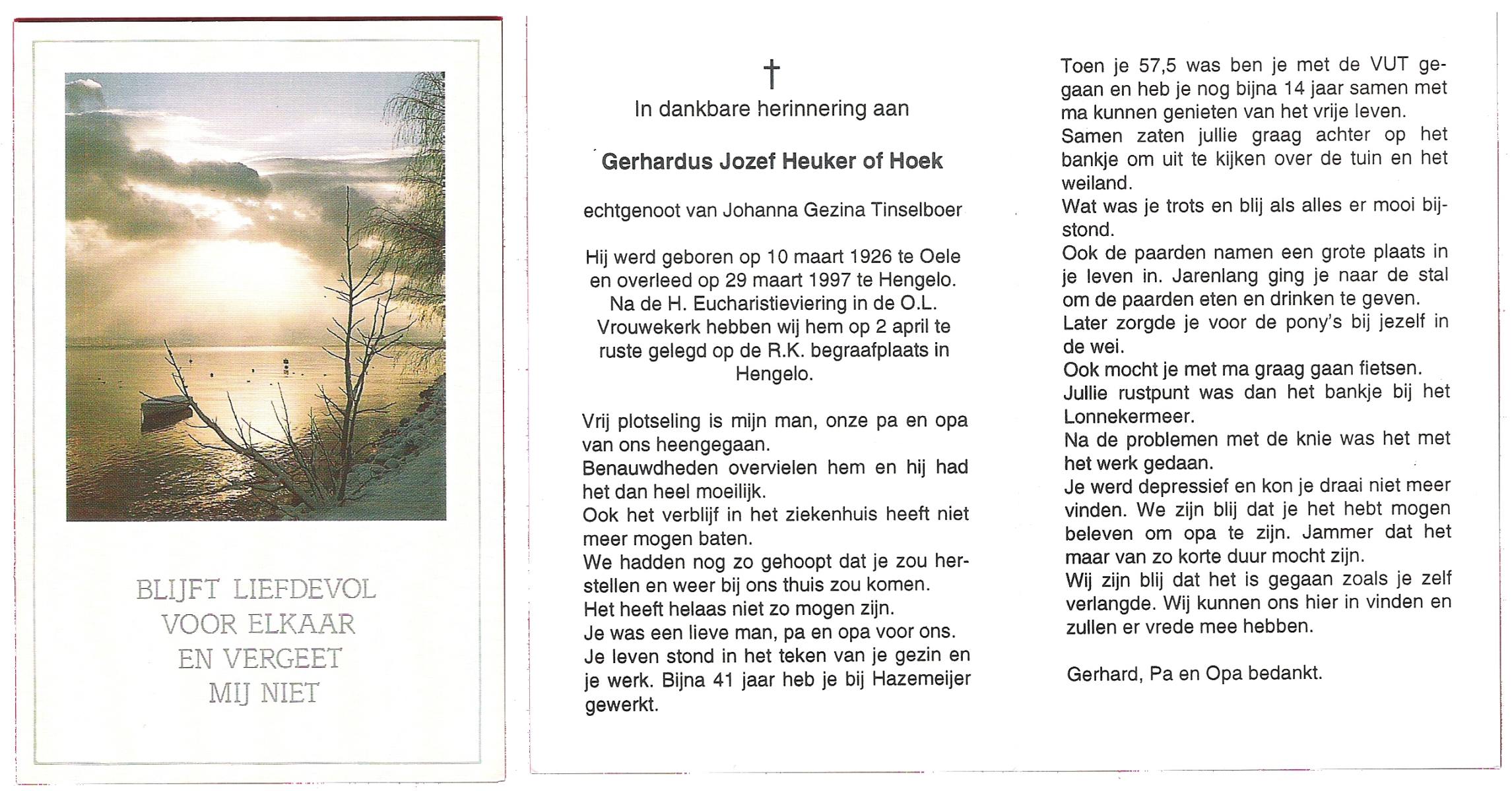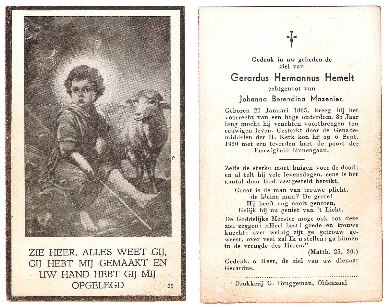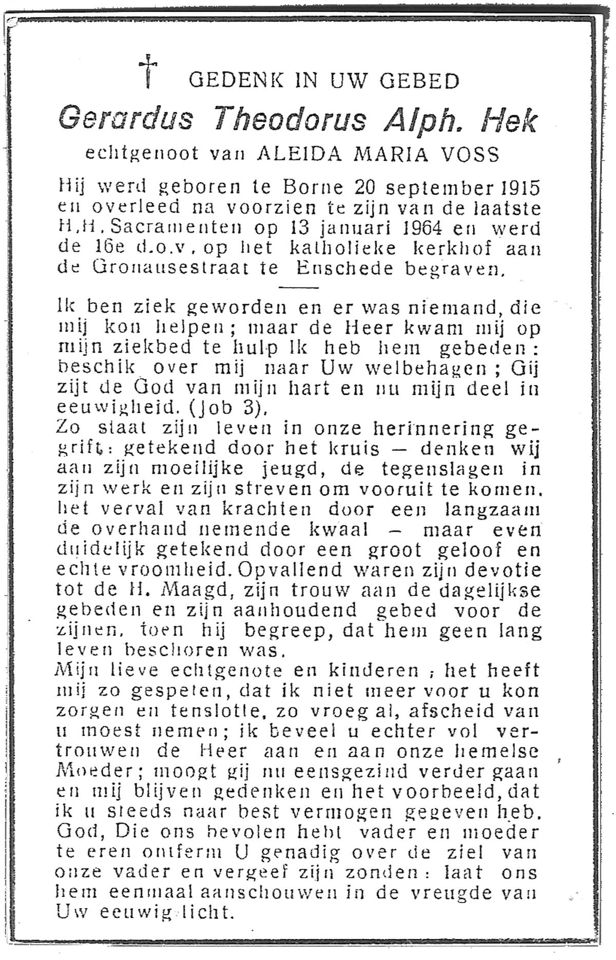 HEIJMER, Gerardus Johannes, geboren op 15-12-1909 te Hengevelde, overleden op 21-7-1978 te Hengelo (Ov.) op 68-jarige leeftijd, begraven te Hengevelde.