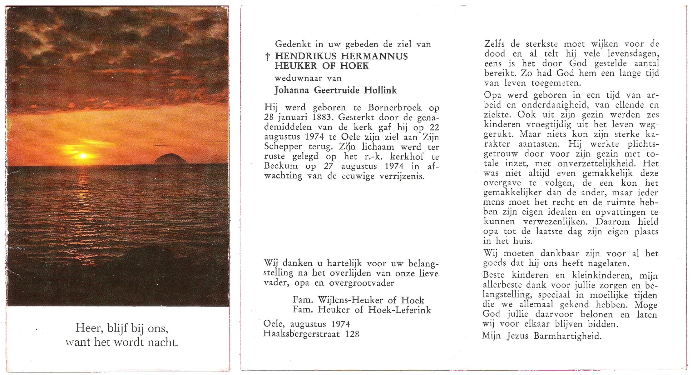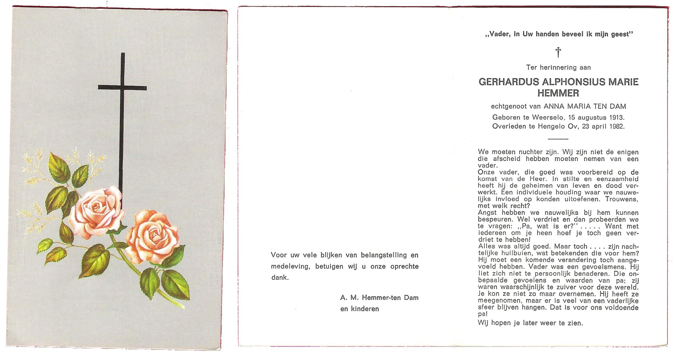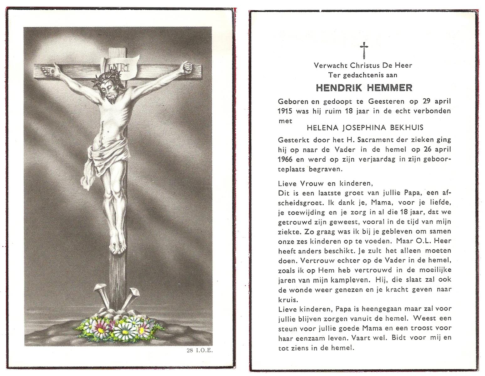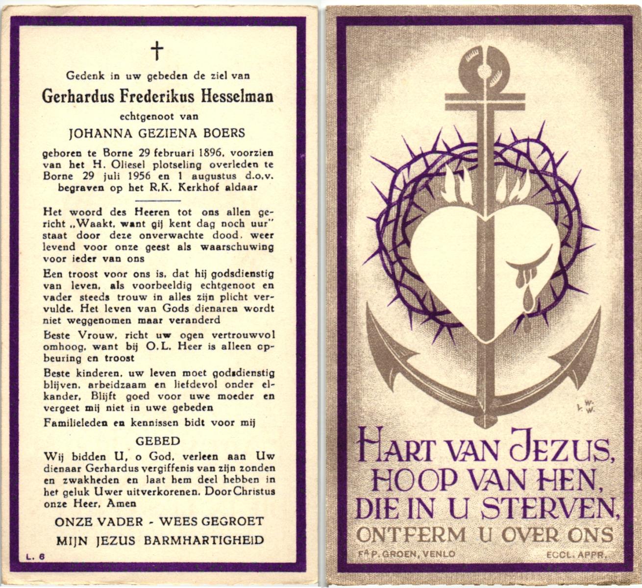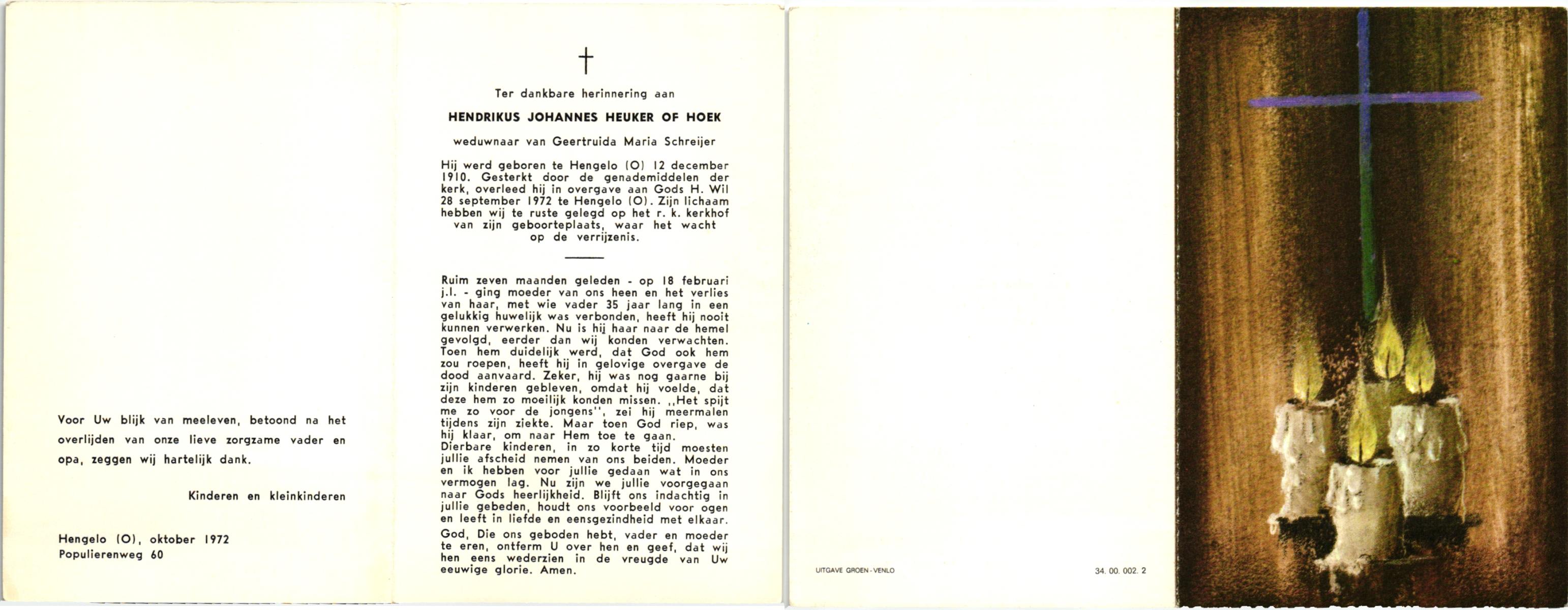 HEIJMER, Gerardus Johannes, geboren op 15-12-1909 te Hengevelde, overleden op 21-7-1978 te Hengelo (Ov.) op 68-jarige leeftijd, begraven te Hengevelde.