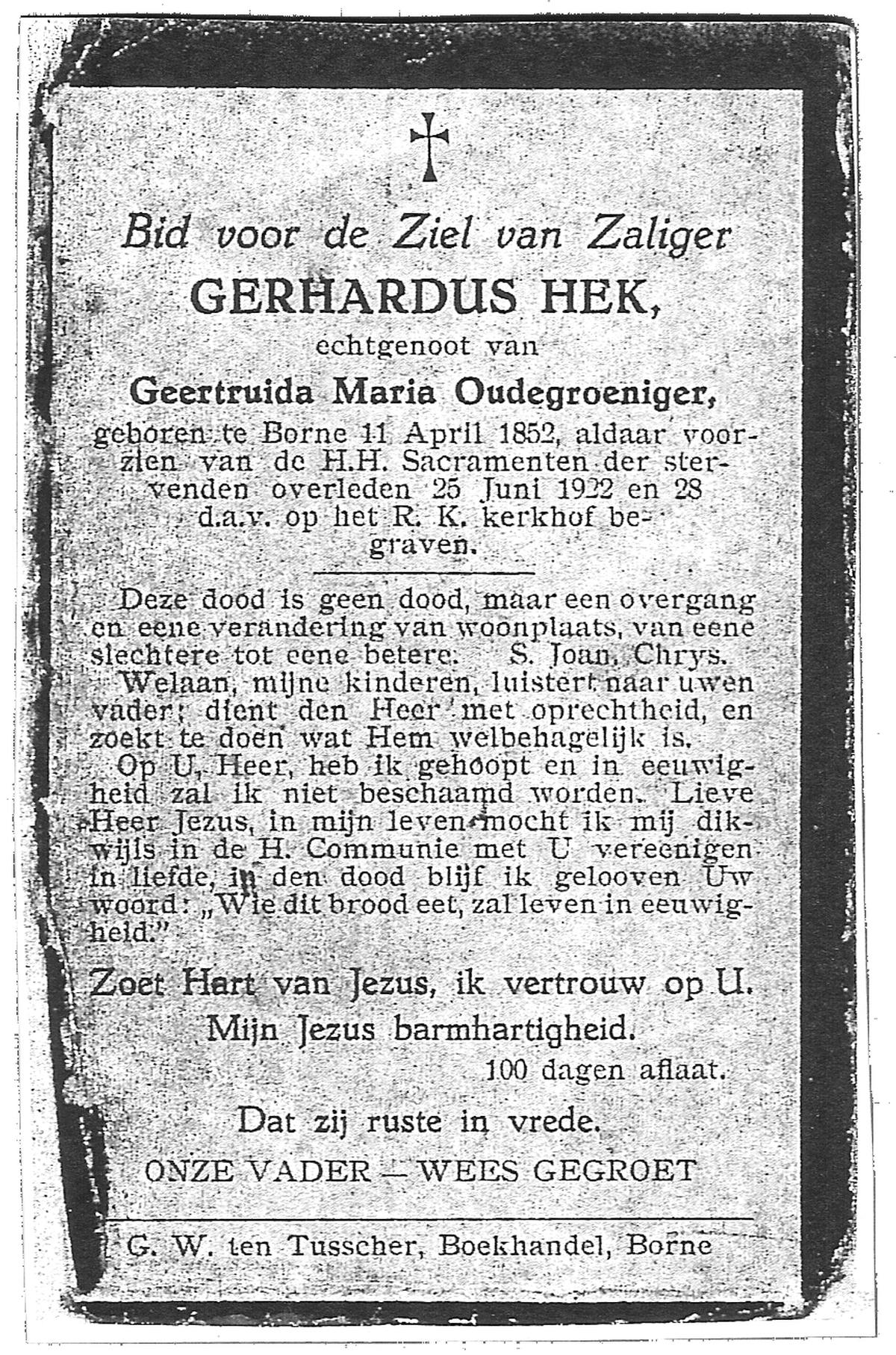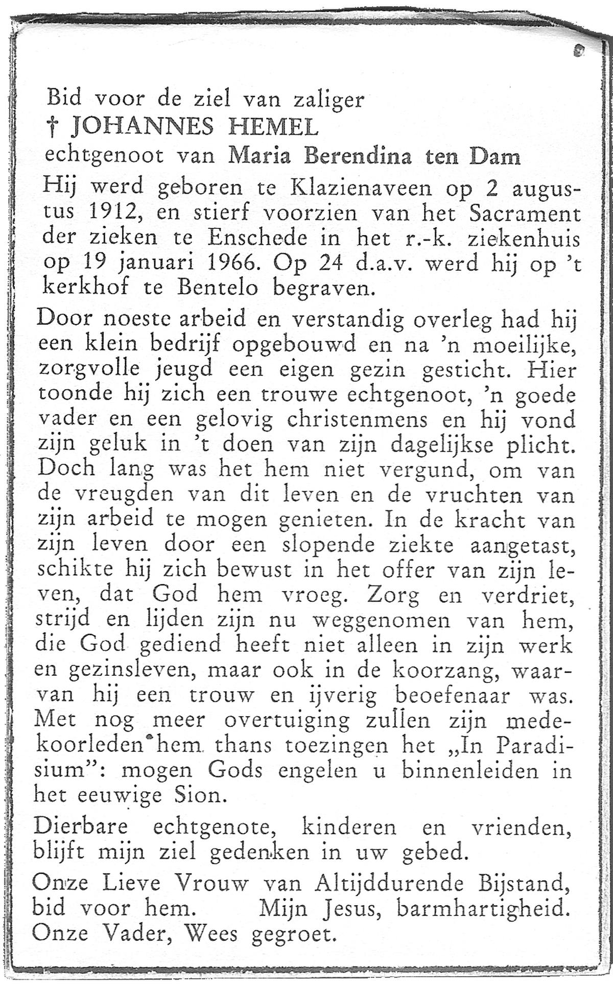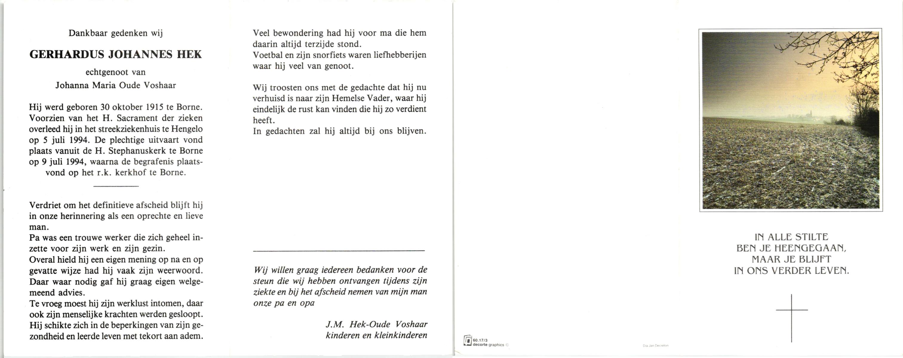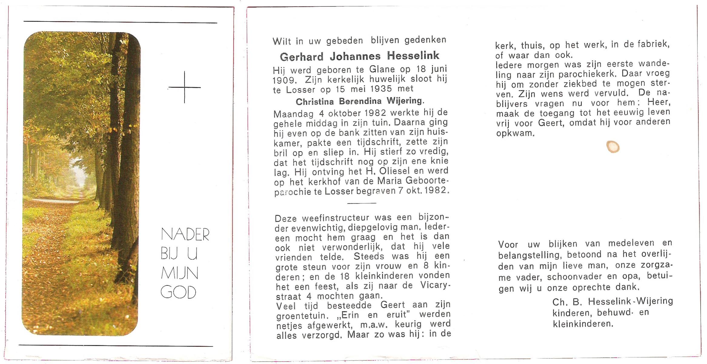 HEIJMER, Gerardus Johannes, geboren op 15-12-1909 te Hengevelde, overleden op 21-7-1978 te Hengelo (Ov.) op 68-jarige leeftijd, begraven te Hengevelde.