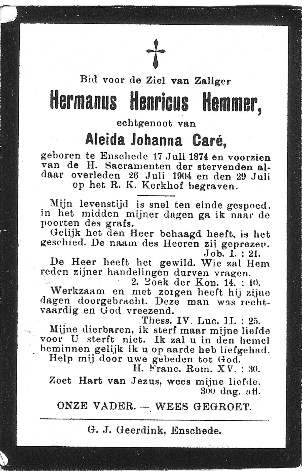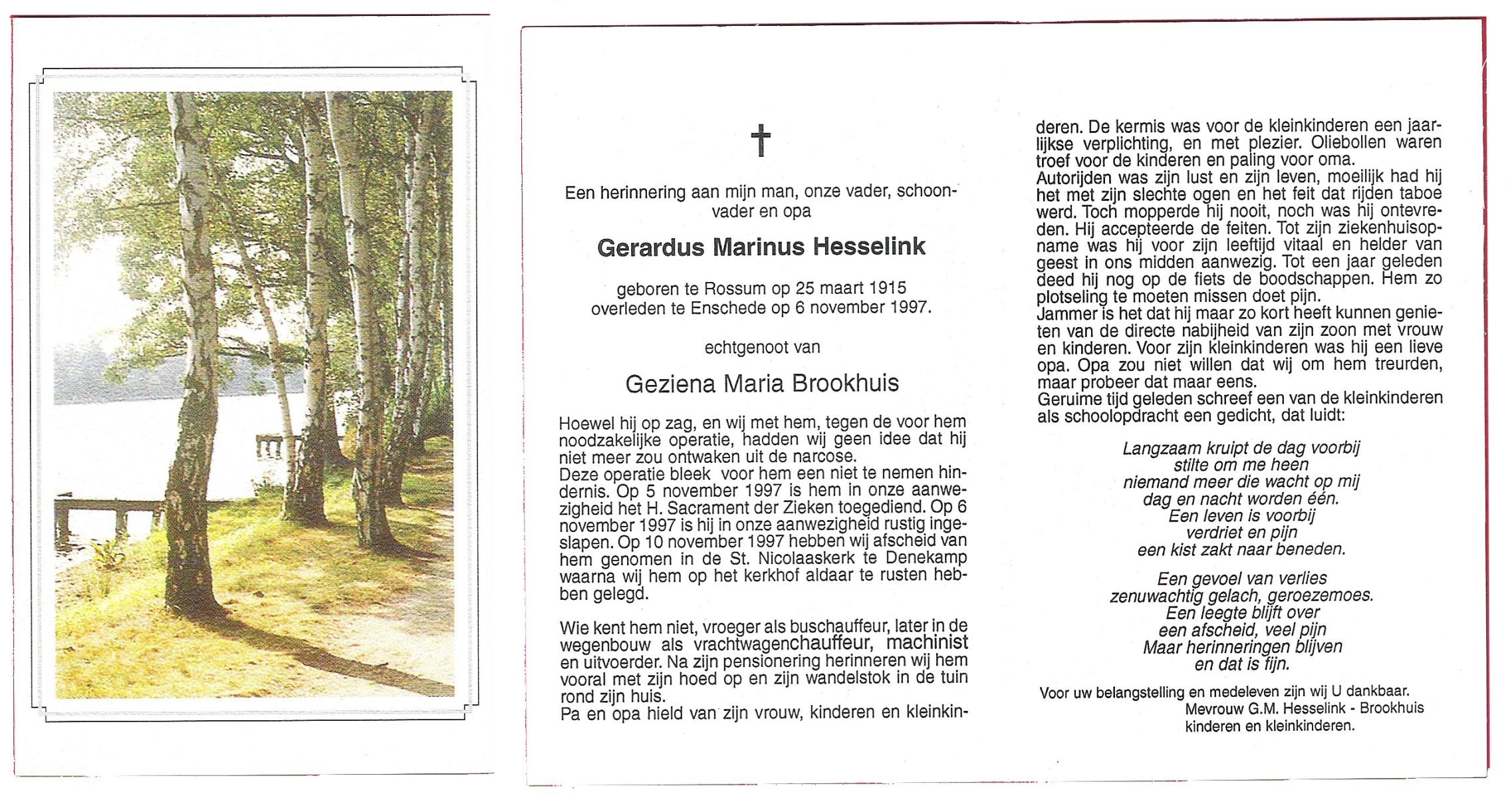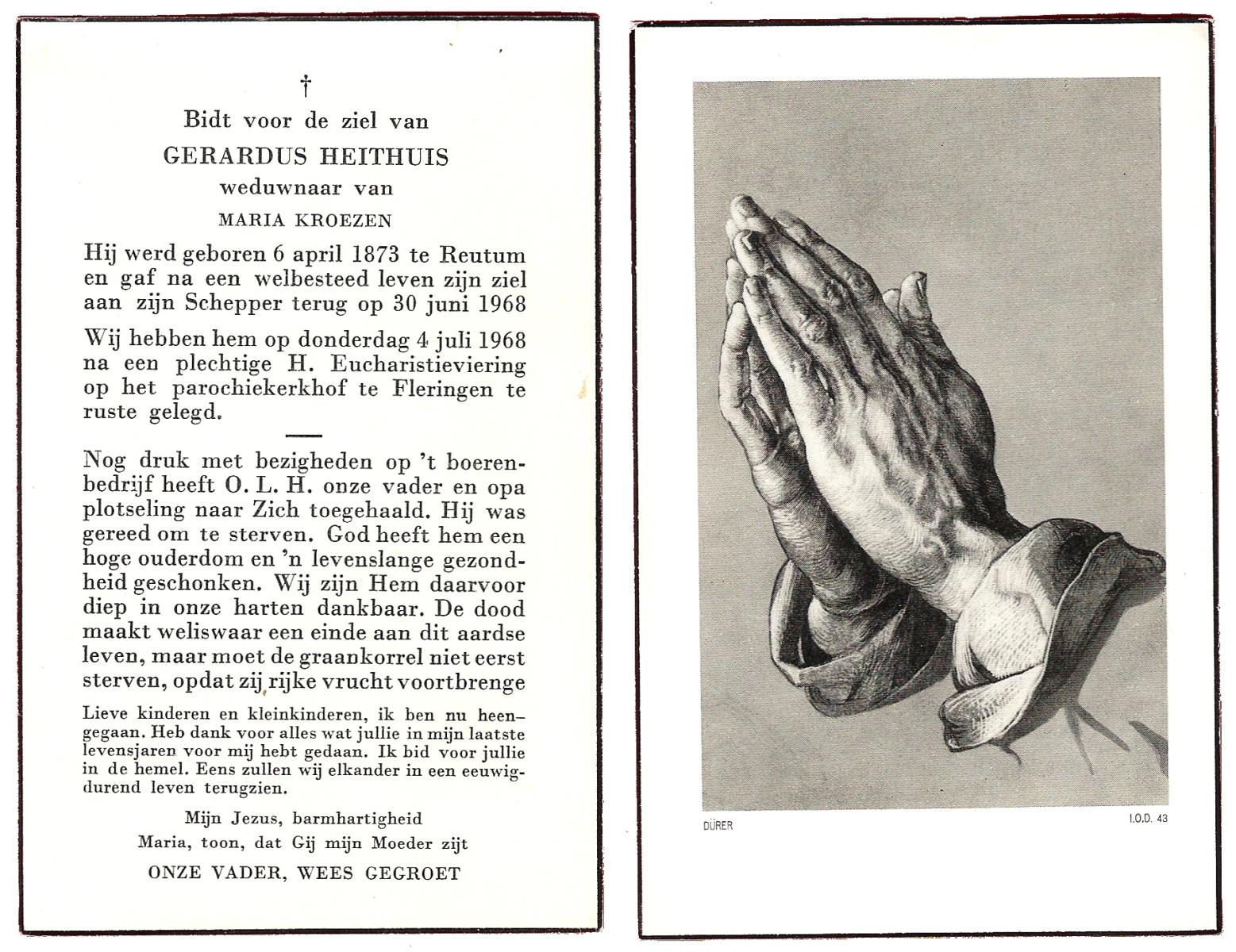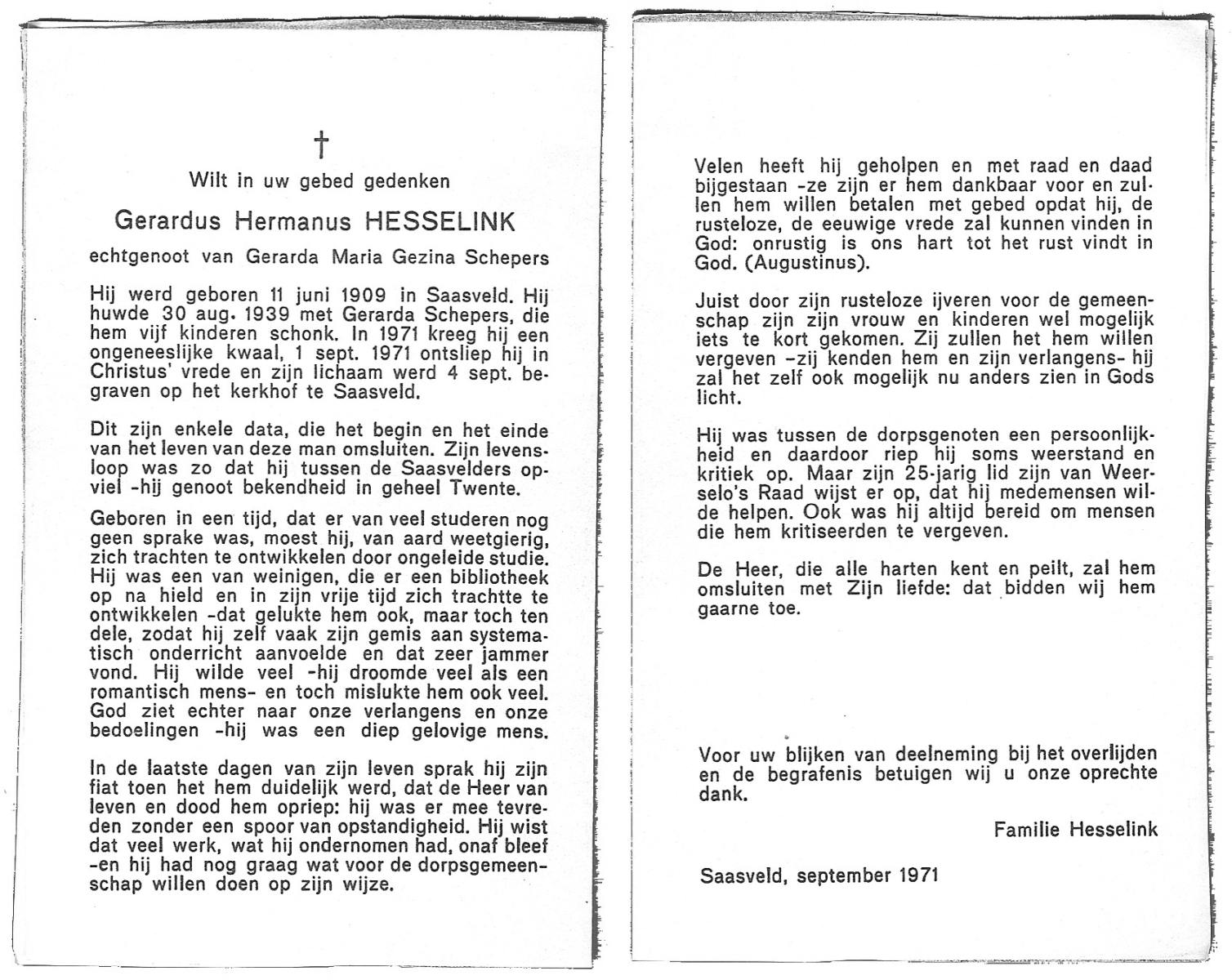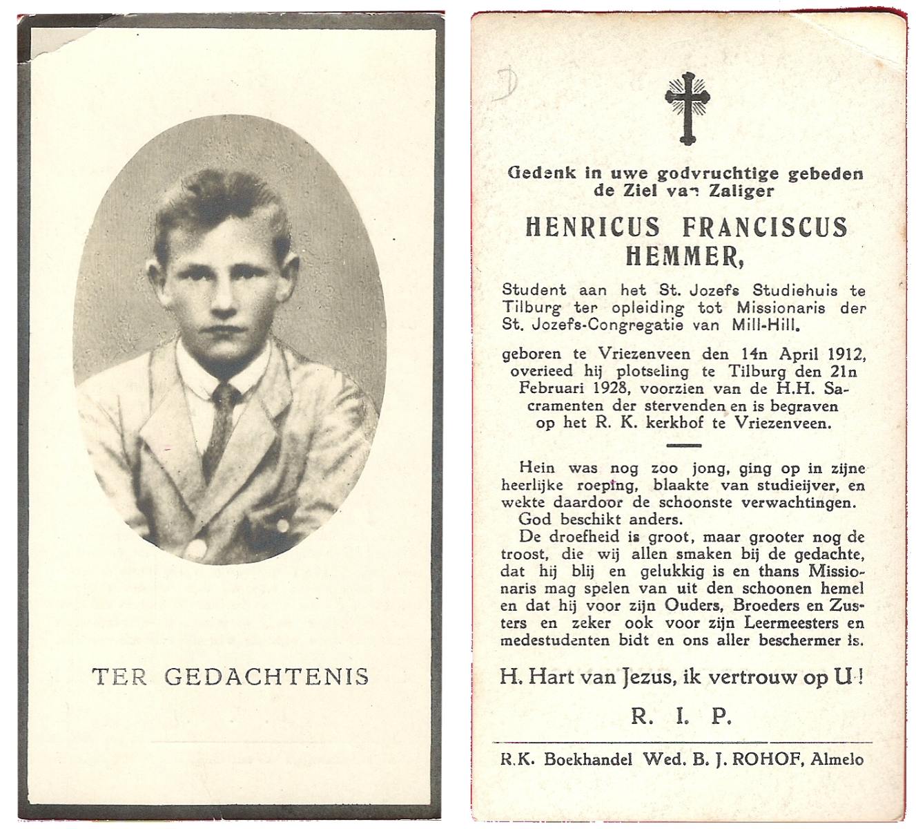 HEIJMER, Gerardus Johannes, geboren op 15-12-1909 te Hengevelde, overleden op 21-7-1978 te Hengelo (Ov.) op 68-jarige leeftijd, begraven te Hengevelde.