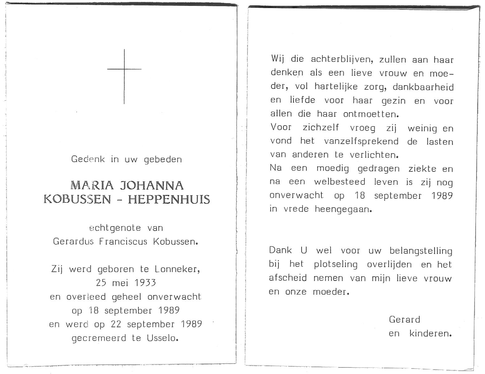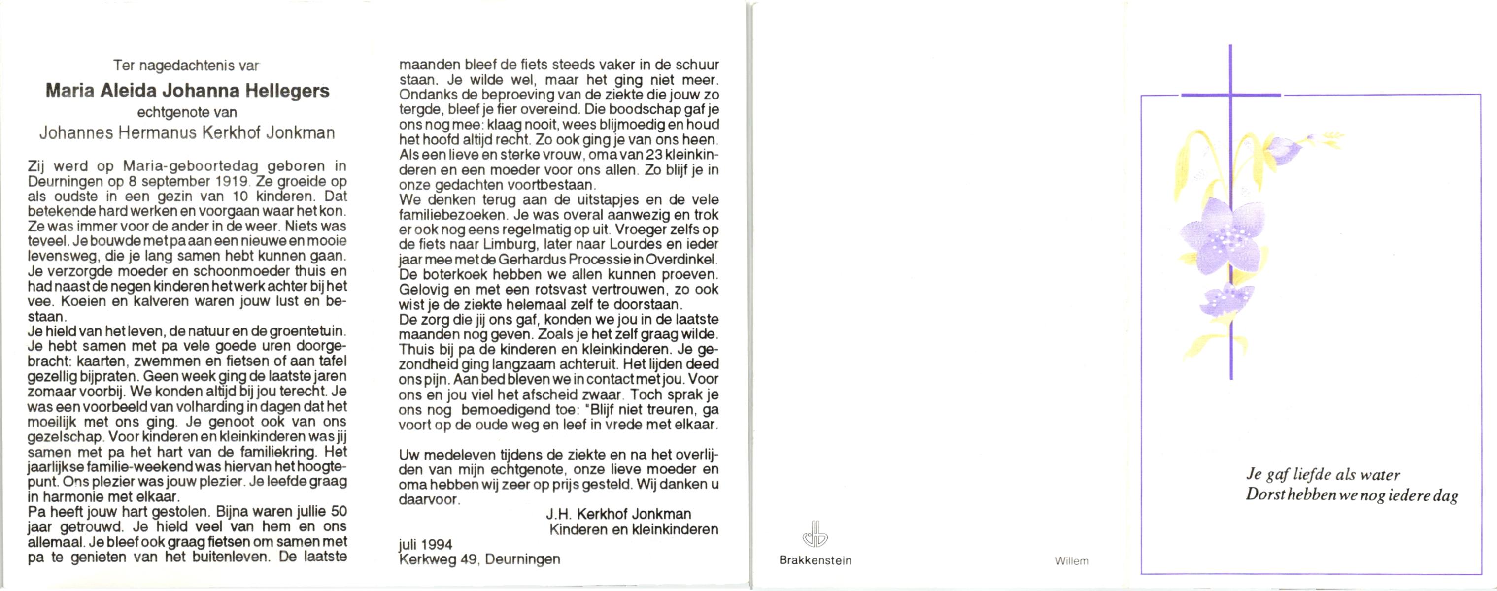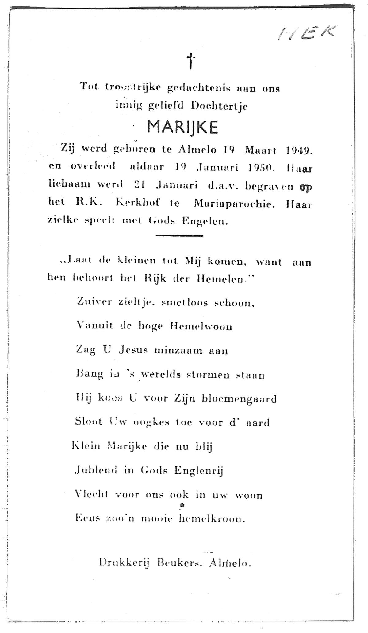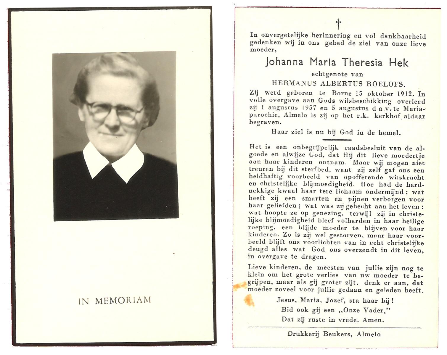 HEIJMER, Johanna Maria, geboren op 6-1-1912 te Hengevelde, overleden op 2-5-1994 op 82-jarige leeftijd, begraven op 7-5-1994 te Hengevelde.