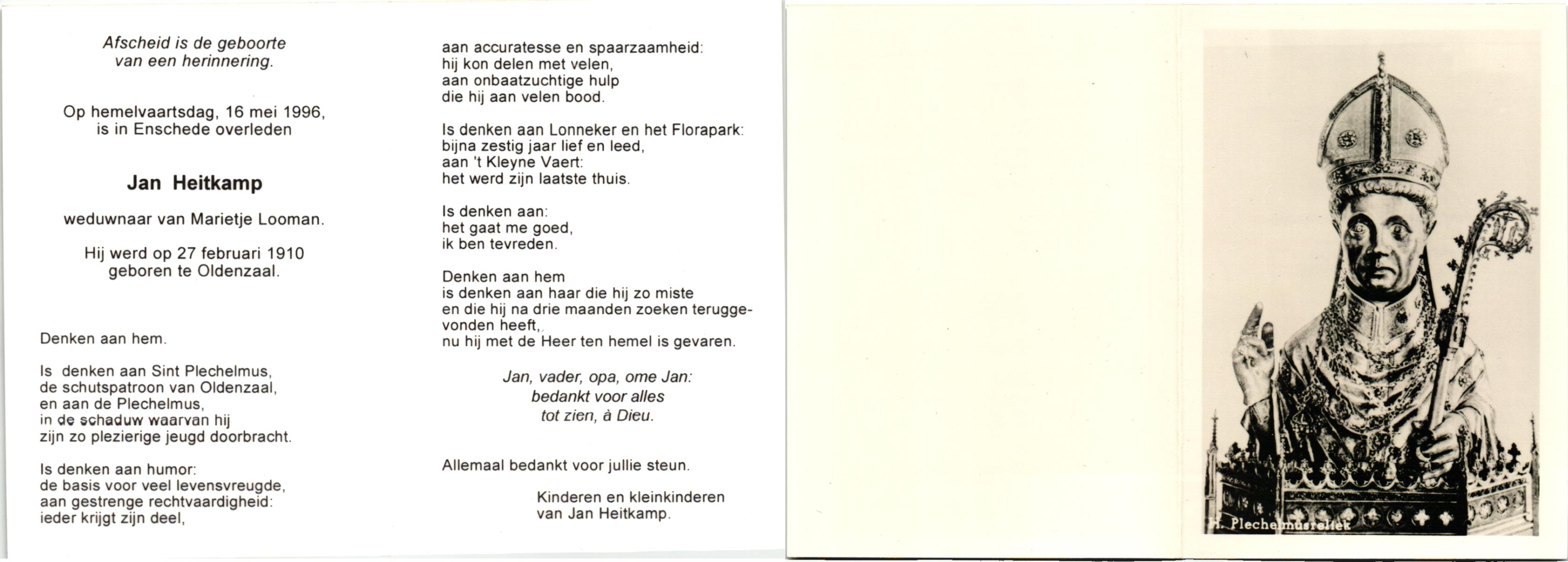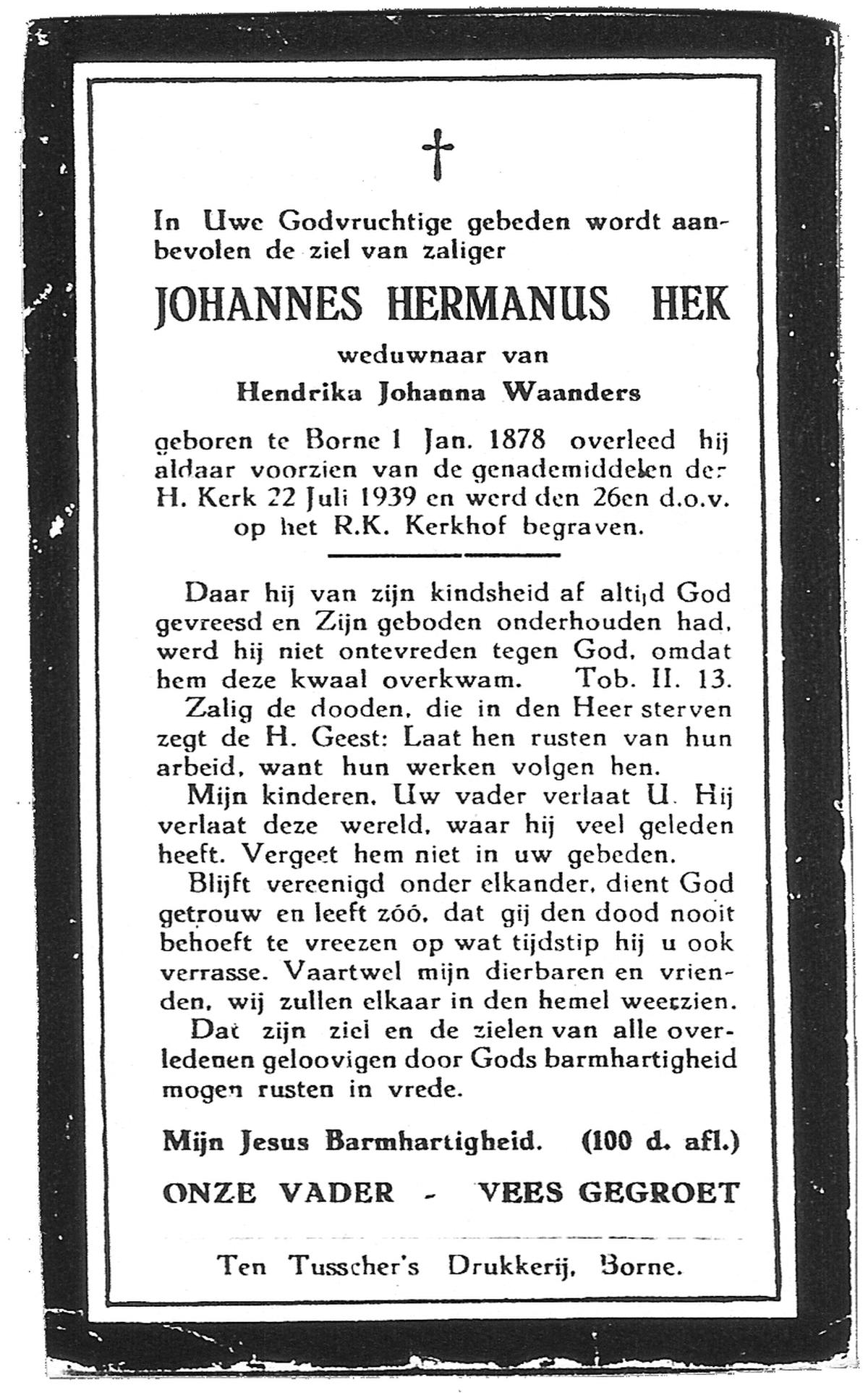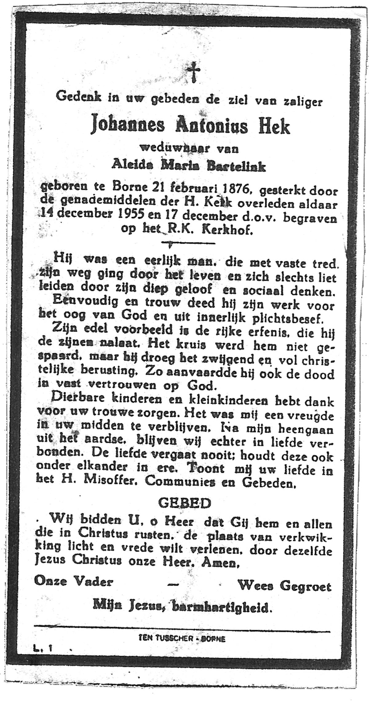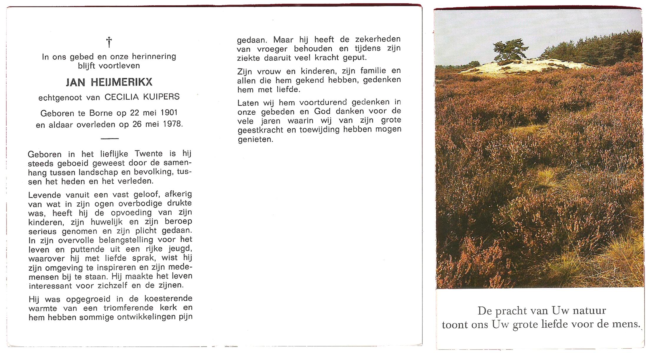 HEIJMERIKX, Jan, geboren op 22-5-1901 te Borne, overleden op 26-5-1978 te Borne op 77-jarige leeftijd.