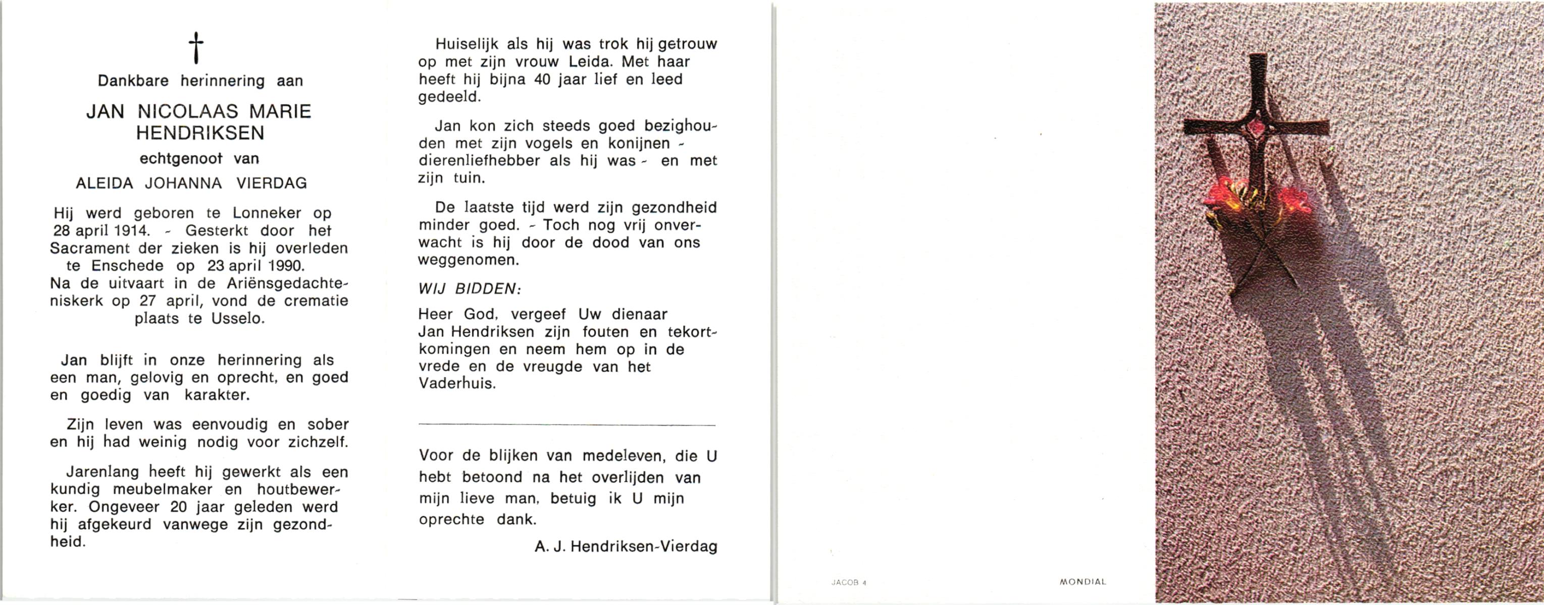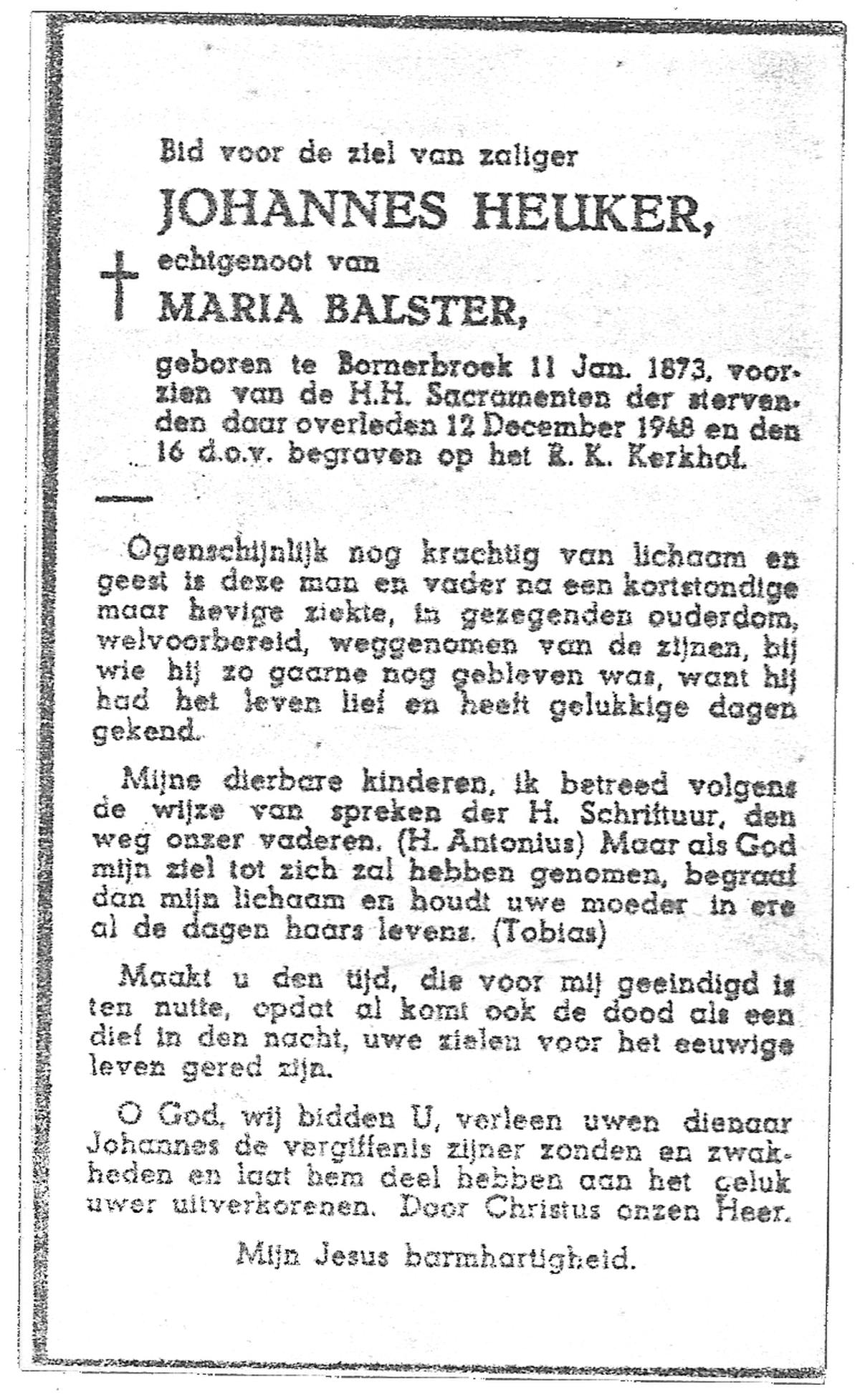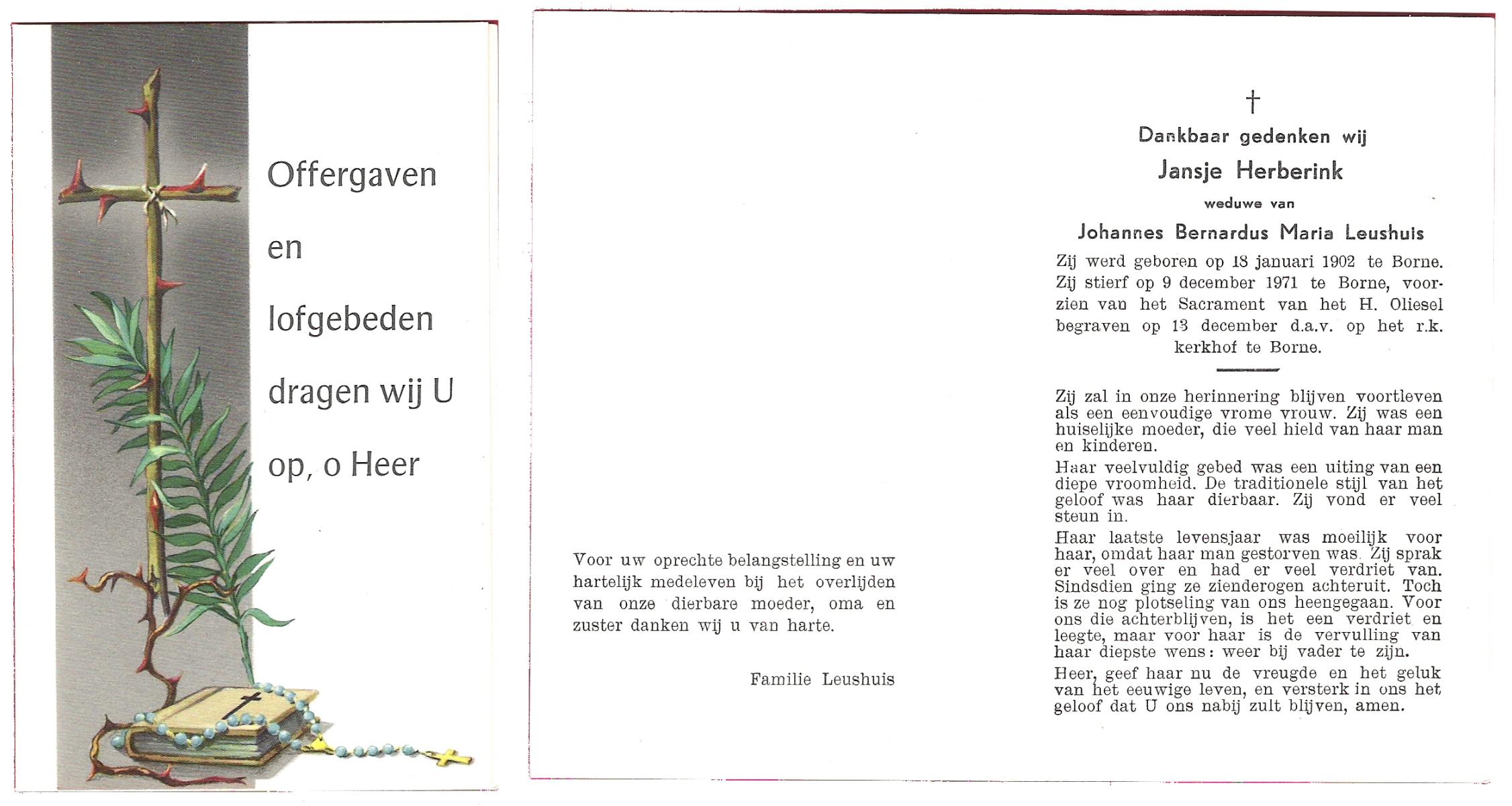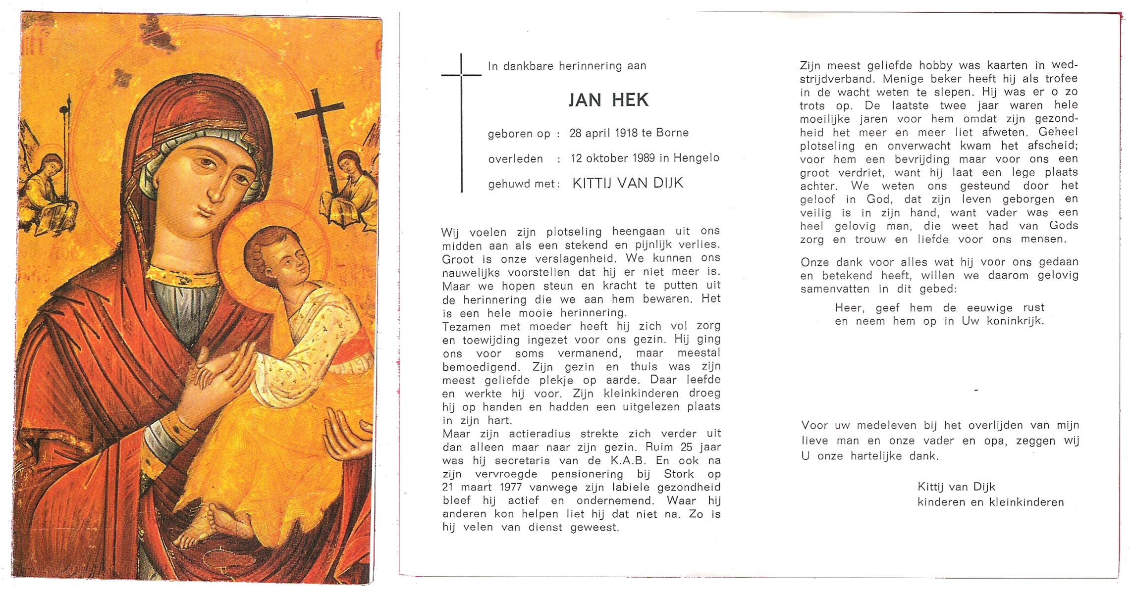 HEIJMERIKX, Jan, geboren op 22-5-1901 te Borne, overleden op 26-5-1978 te Borne op 77-jarige leeftijd.