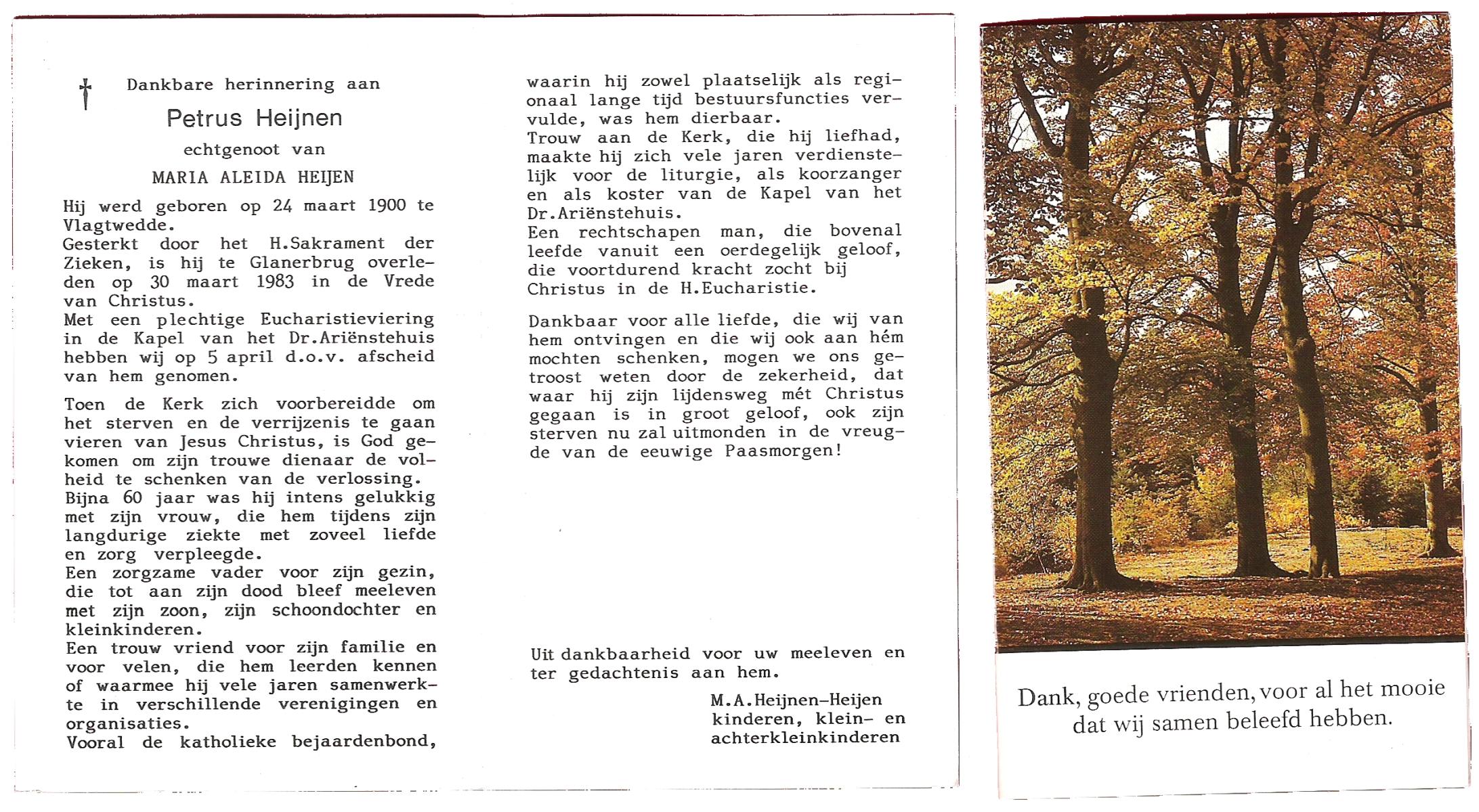 HEIJNEN, Petrus, geboren op 24-3-1900 te Vlagtwedde, overleden op 30-3-1983 te Glanerbrug op 83-jarige leeftijd.