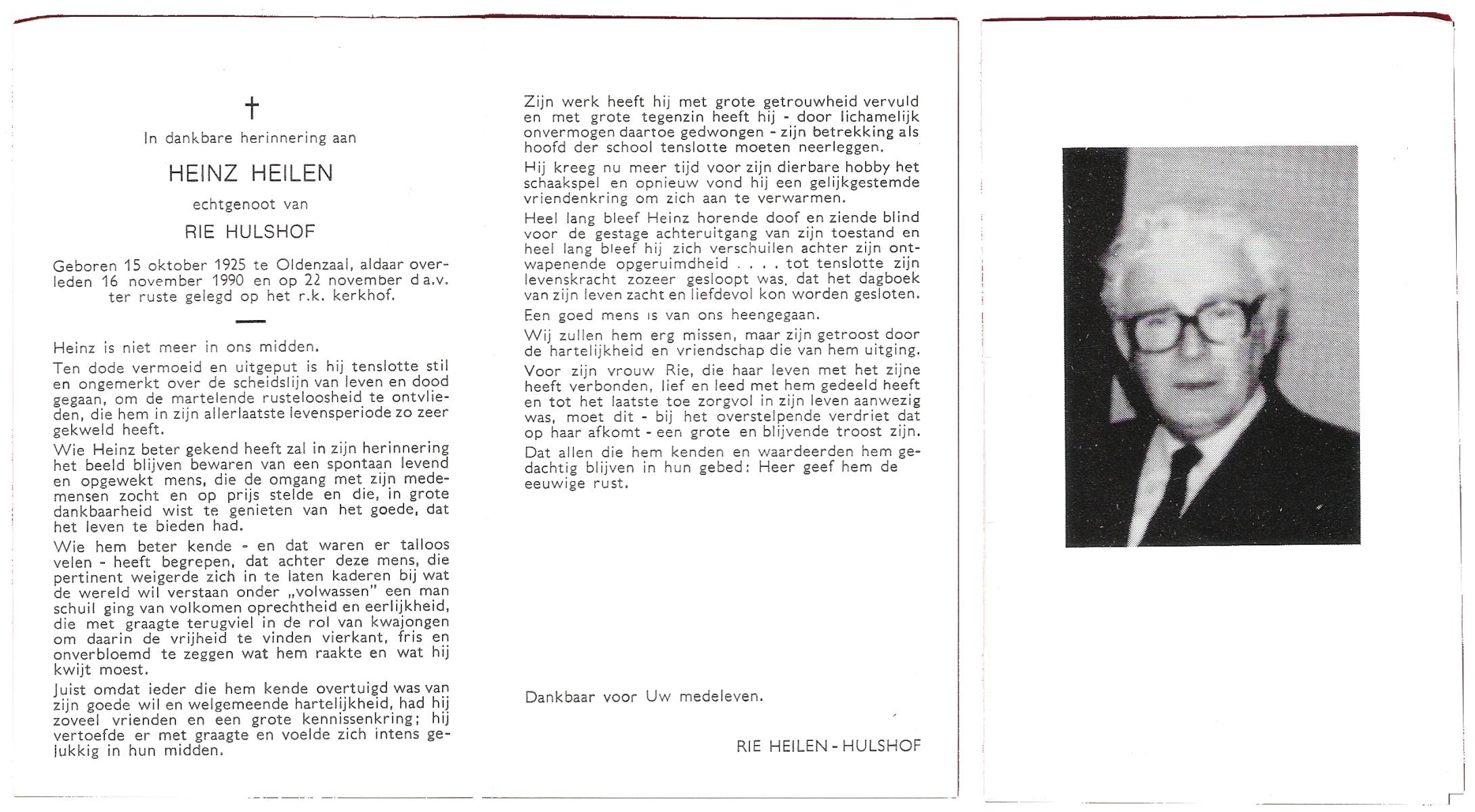 HEILEN, Heinz, geboren op 15-10-1925 te Oldenzaal, overleden op 16-11-1990 te Oldenzaal op 65-jarige leeftijd, begraven op 22-11-1990 te Oldenzaal.