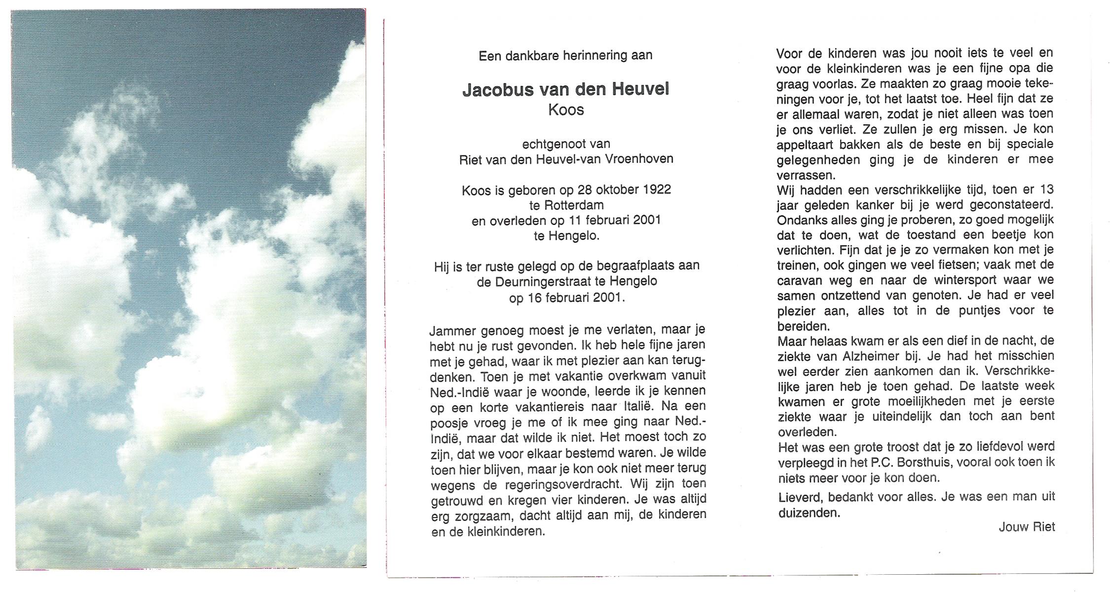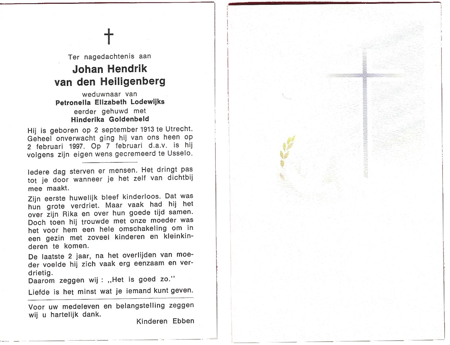 HEILIGENBERG, van den, Johan Hendrik, geboren op 2-9-1913 te Utrecht, overleden op 2-2-1997 op 83-jarige leeftijd, gecremeerd op 7-2-1997 te Usselo.