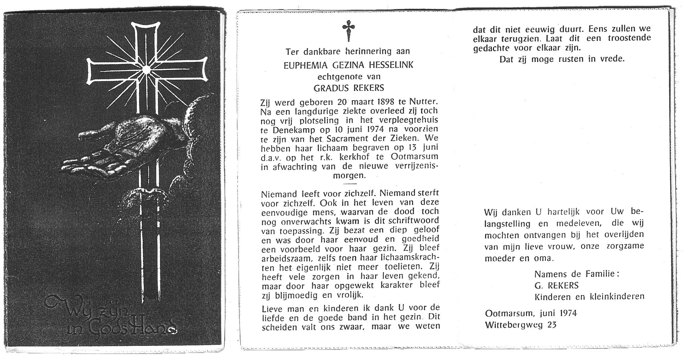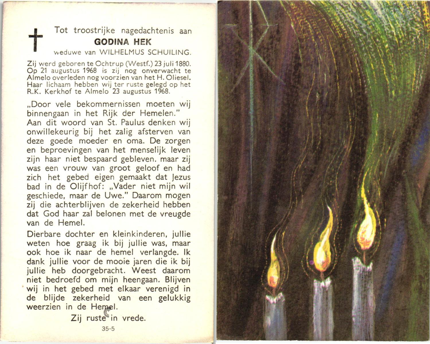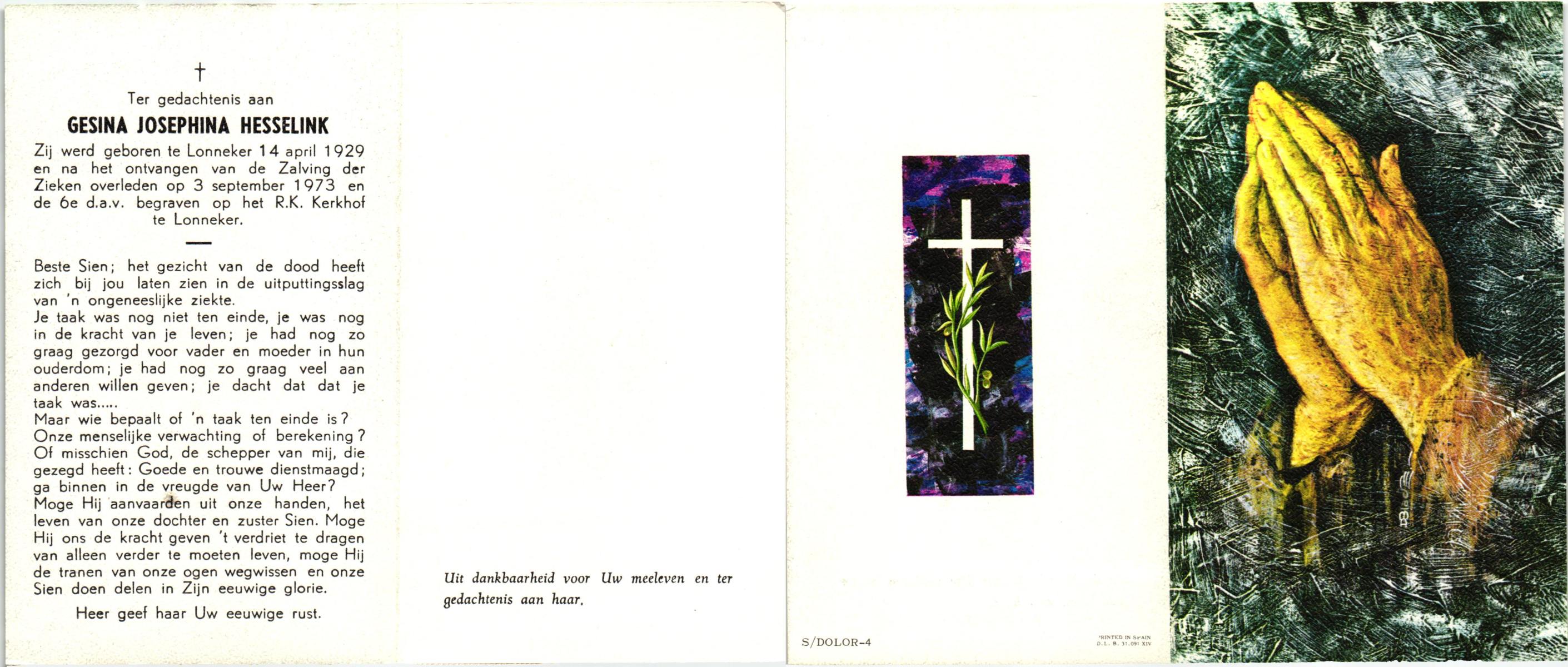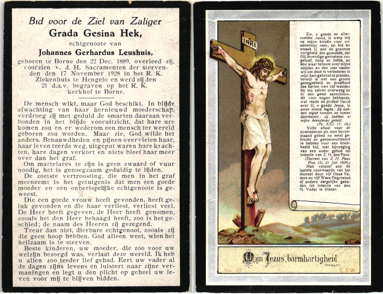 HEILS, Gesina, geboren op 5-10-1900 te Gildehaus (Dld.), overleden op 23-2-1976 te Oldenzaal op 76-jarige leeftijd, begraven op 27-2-1976 te Denekamp.