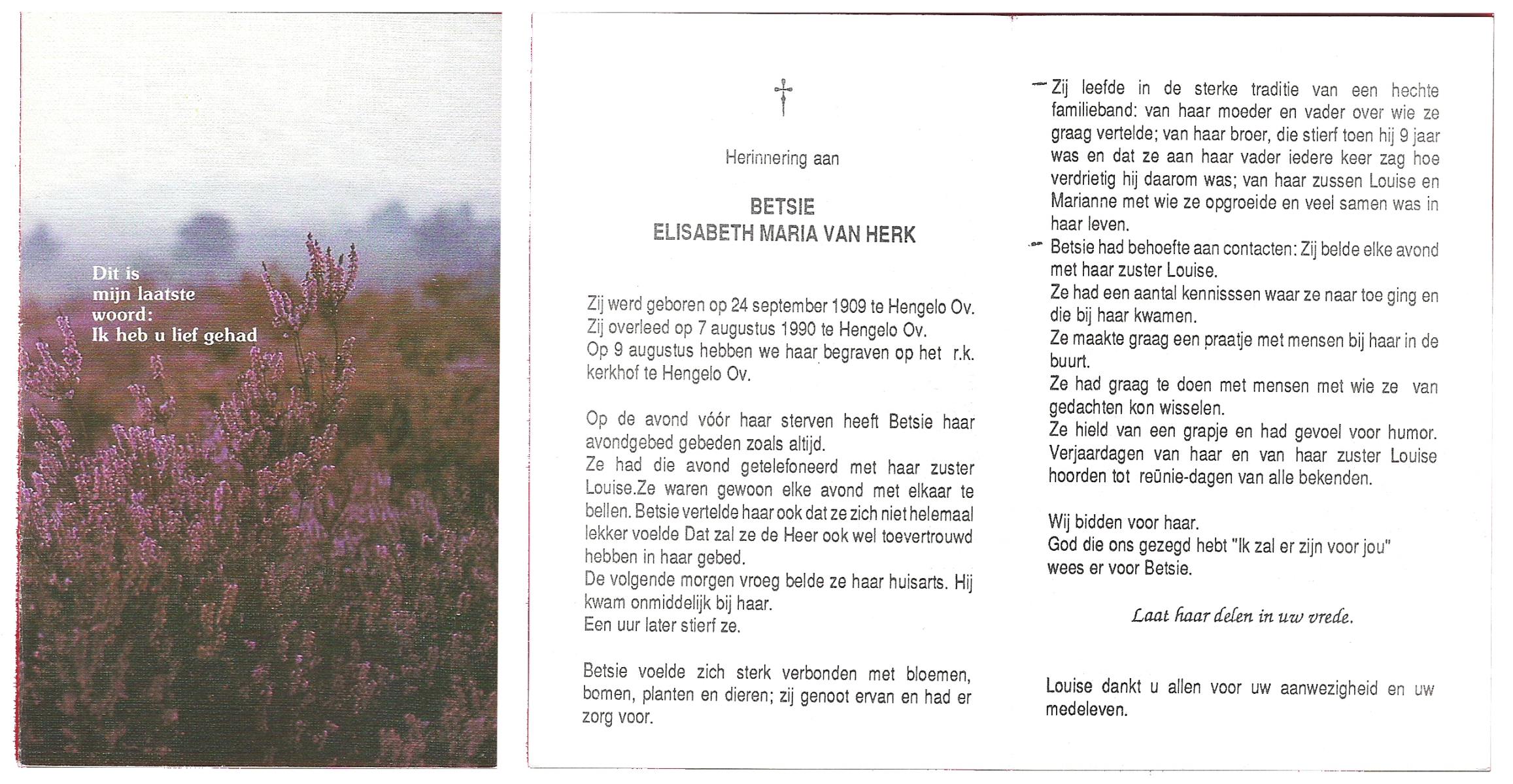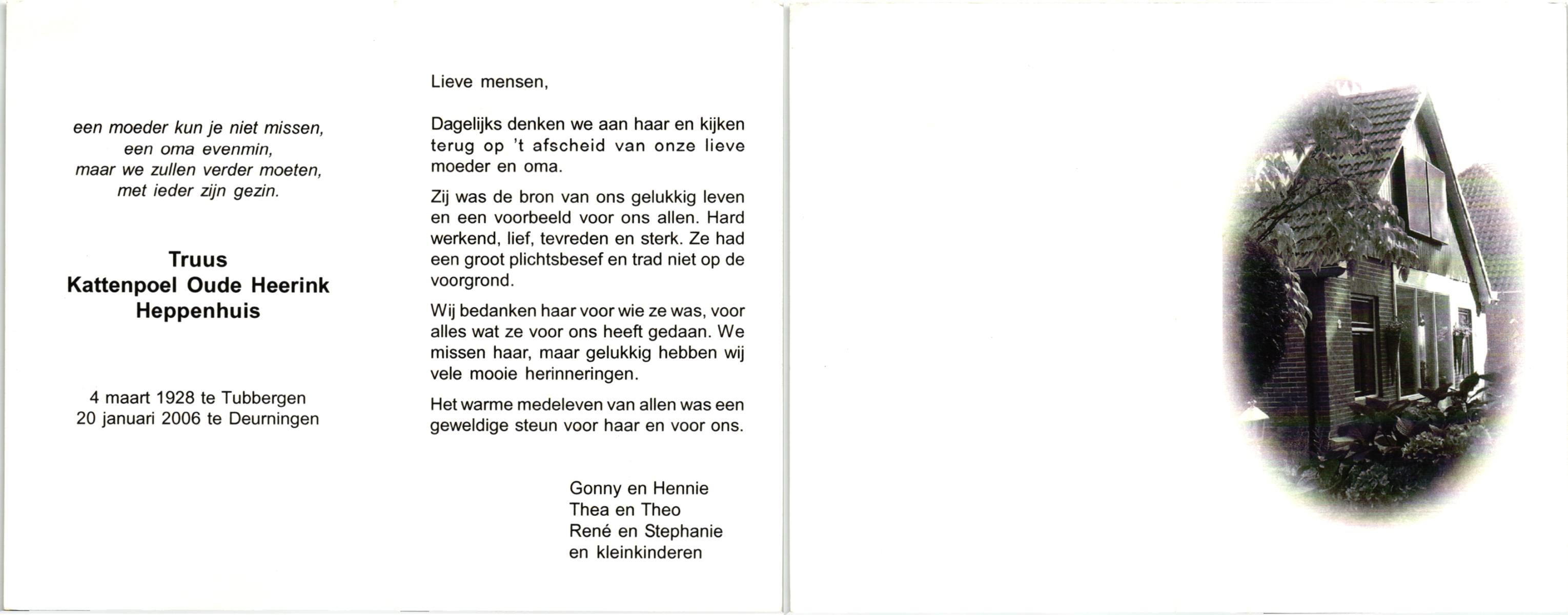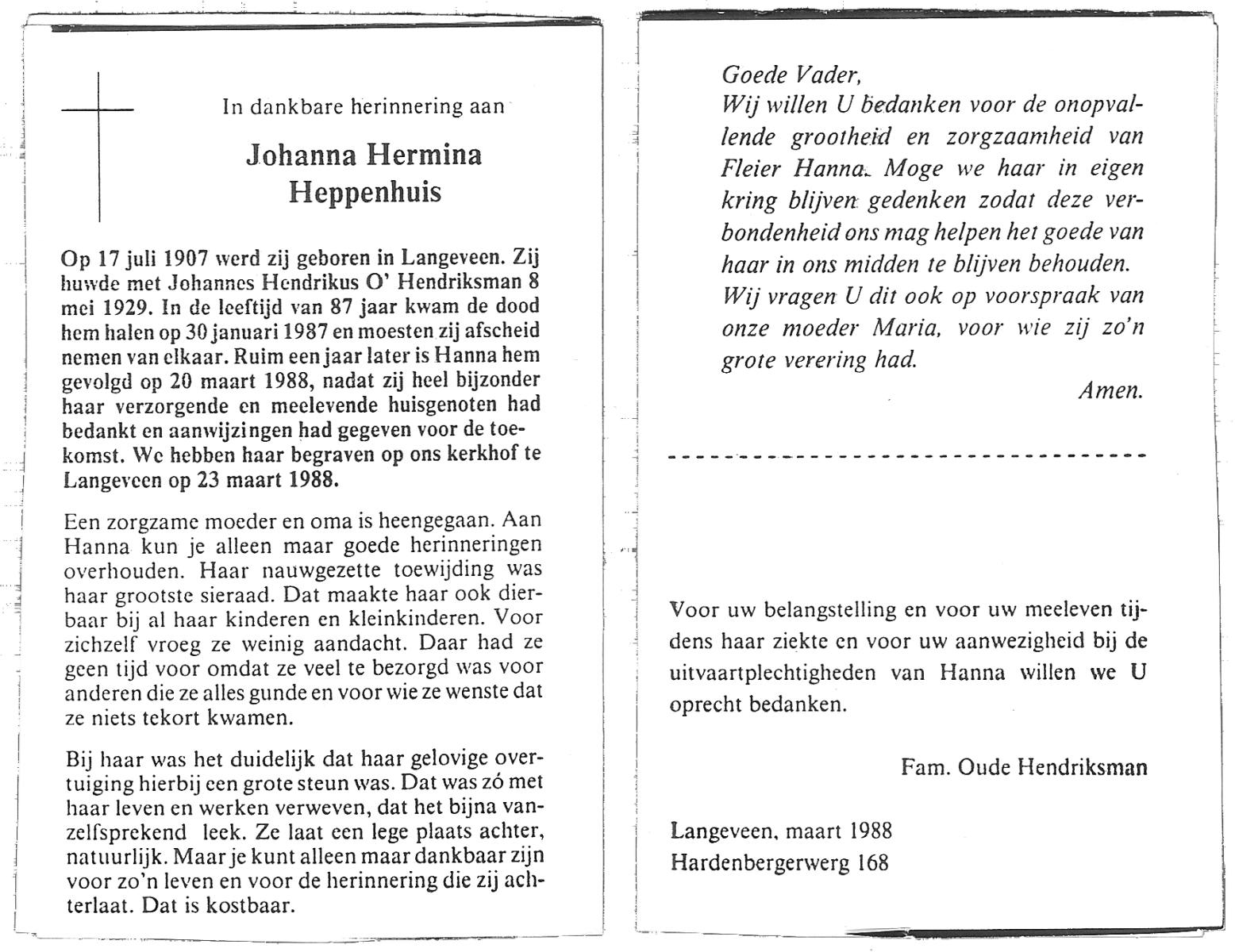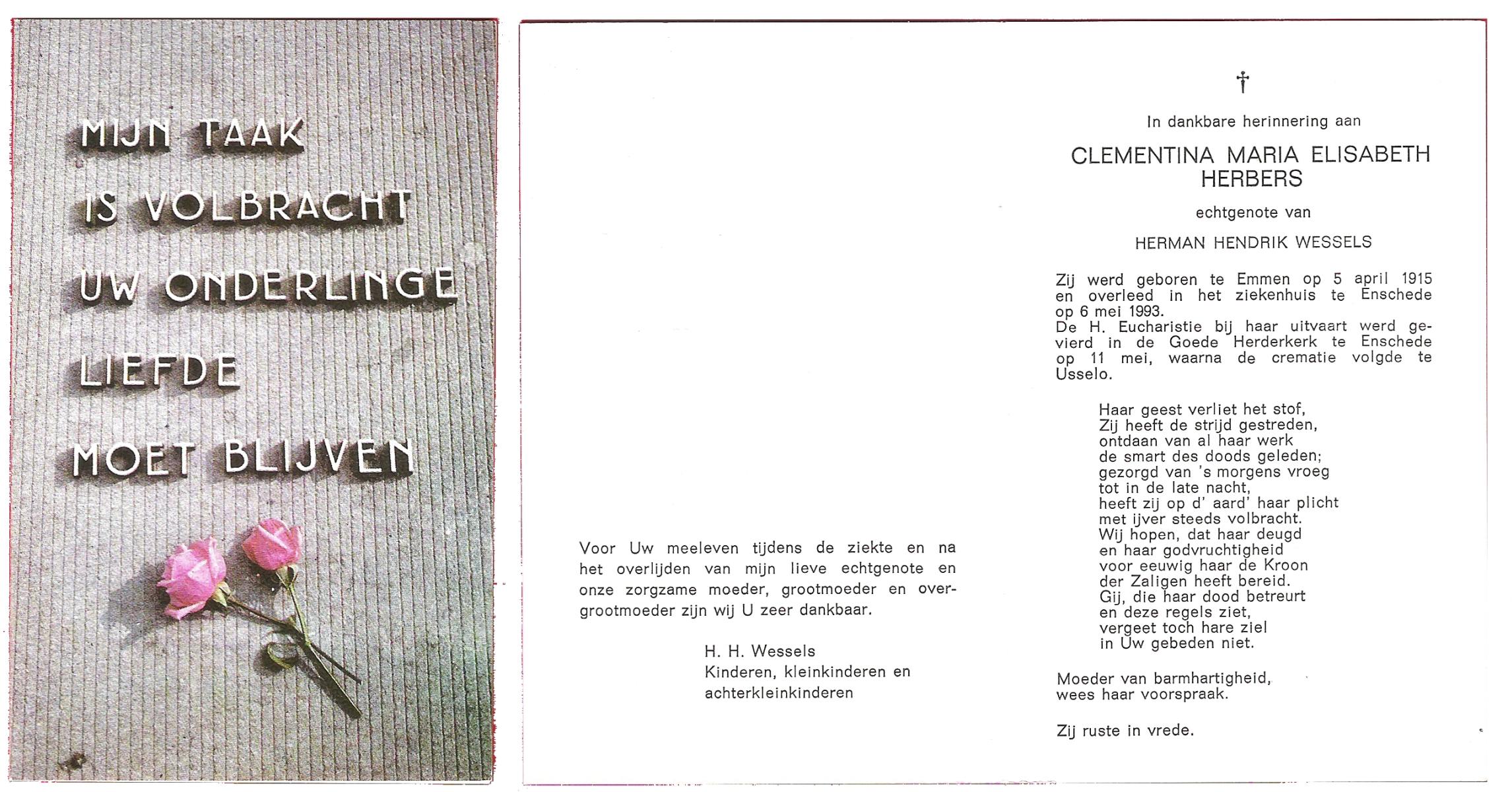 HEIMEN, Hermina Johanna, geboren op 25-02-1893 te Wehl, overleden op 9-2-1996 te Weerselo op 96-jarige leeftijd, begraven op 13-2-1996 te Rossum.