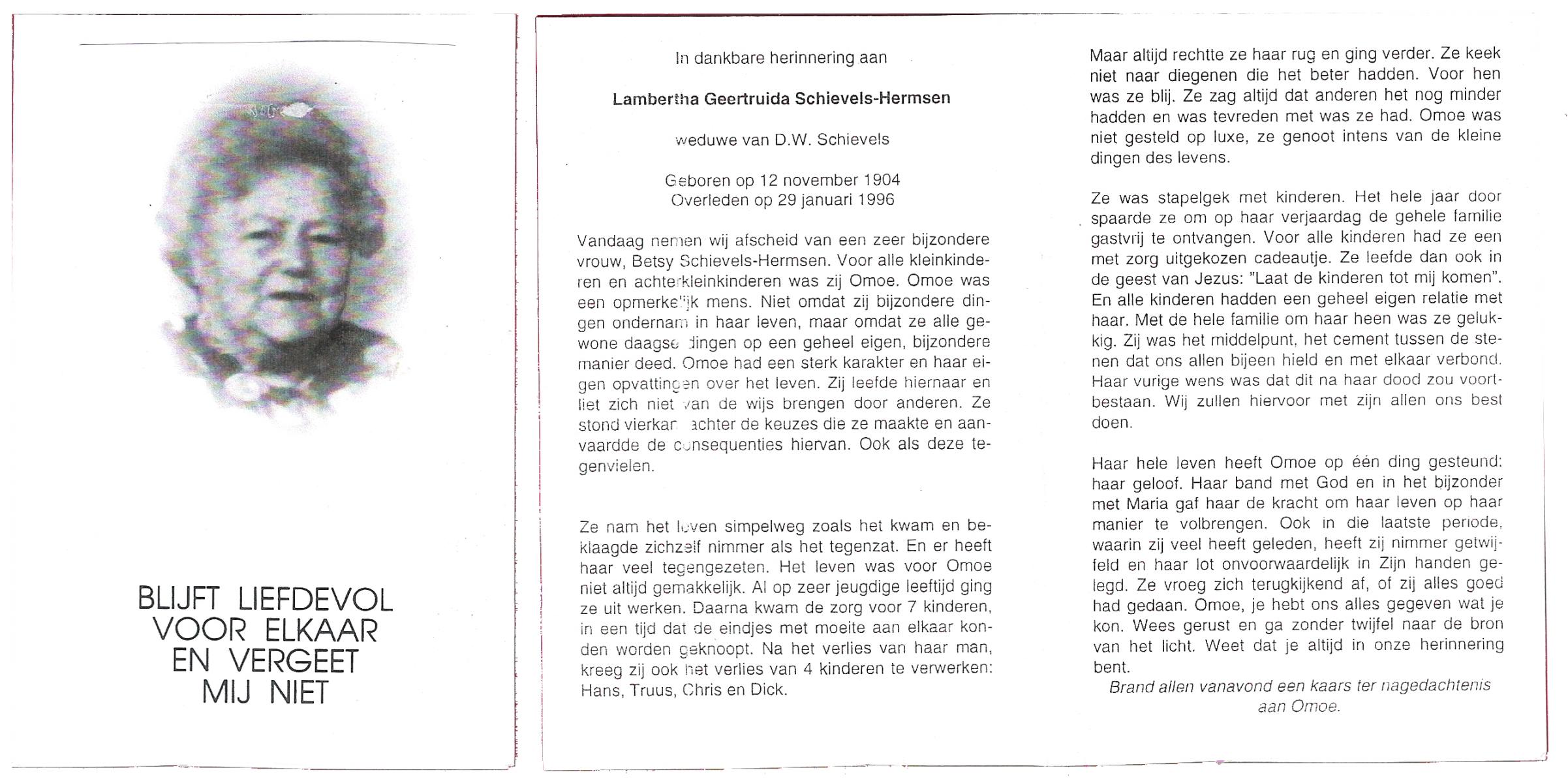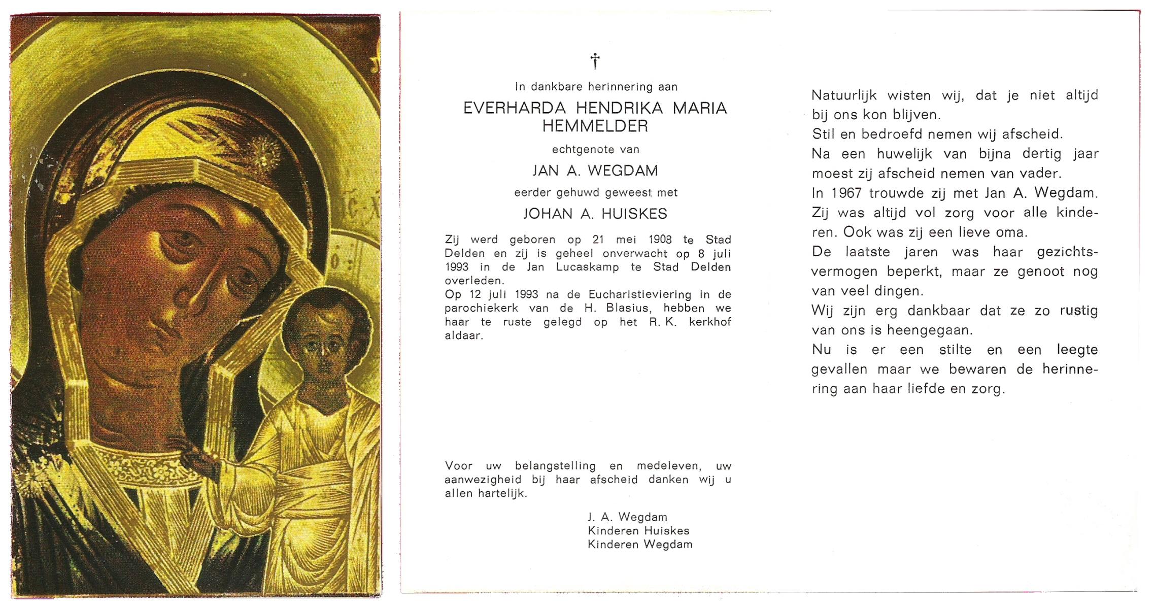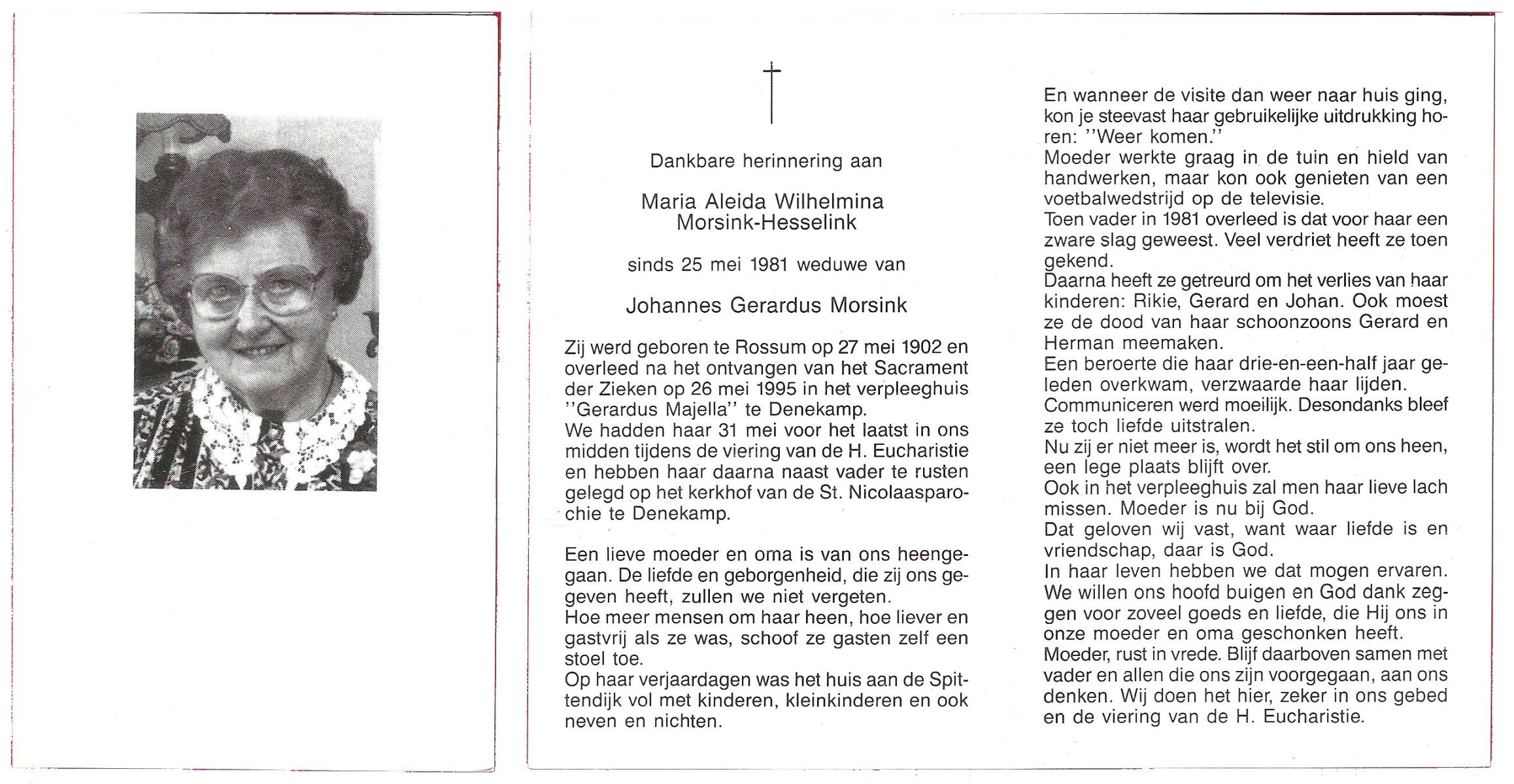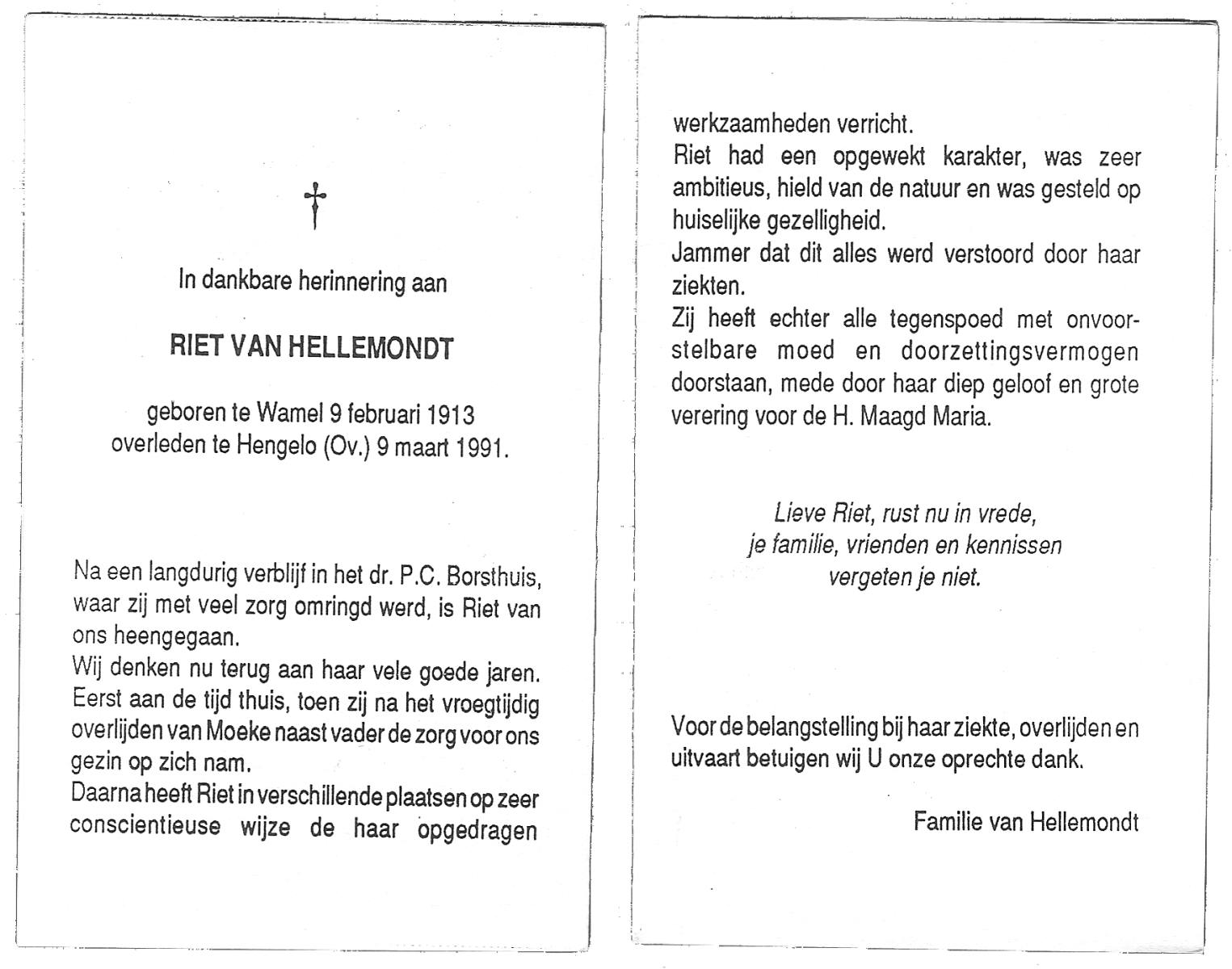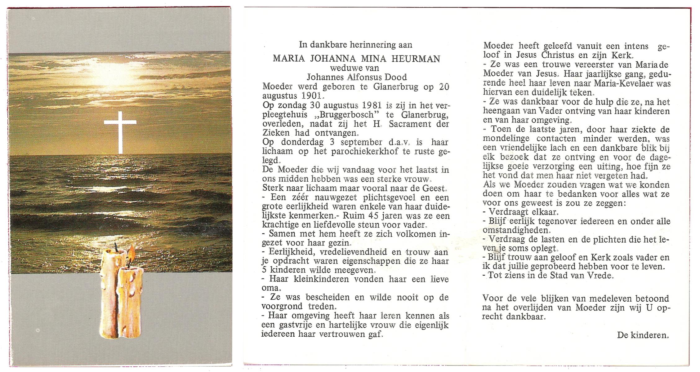 HEIMEN, Hermina Johanna, geboren op 25-02-1893 te Wehl, overleden op 9-2-1996 te Weerselo op 96-jarige leeftijd, begraven op 13-2-1996 te Rossum.
