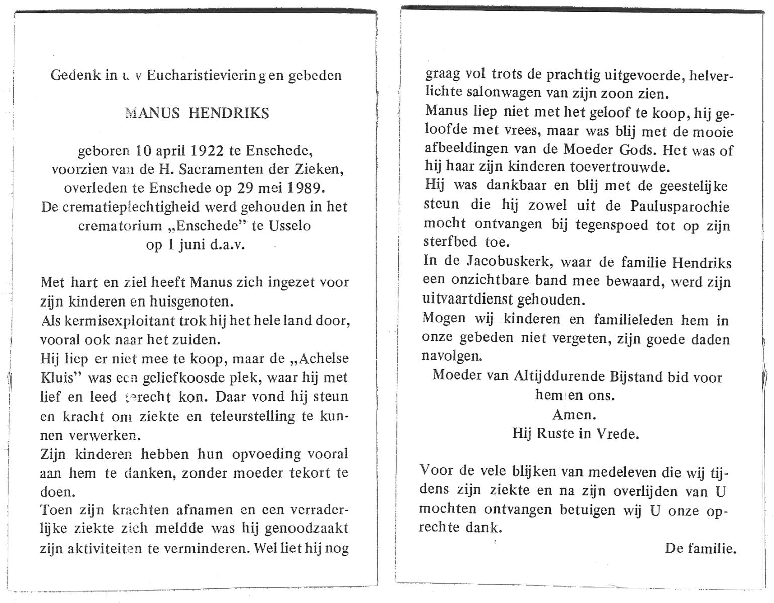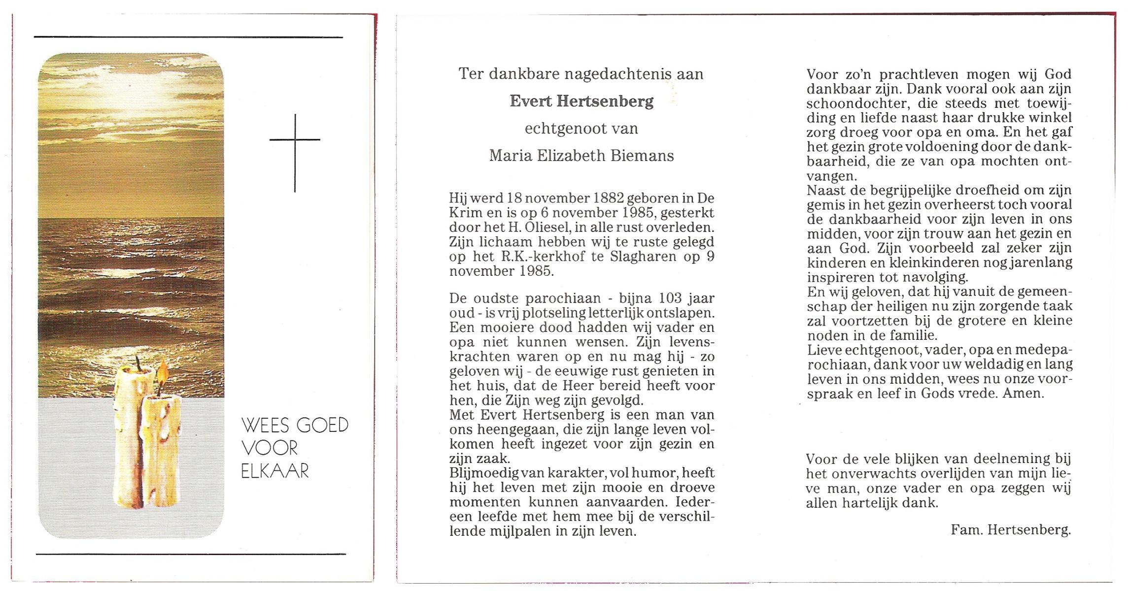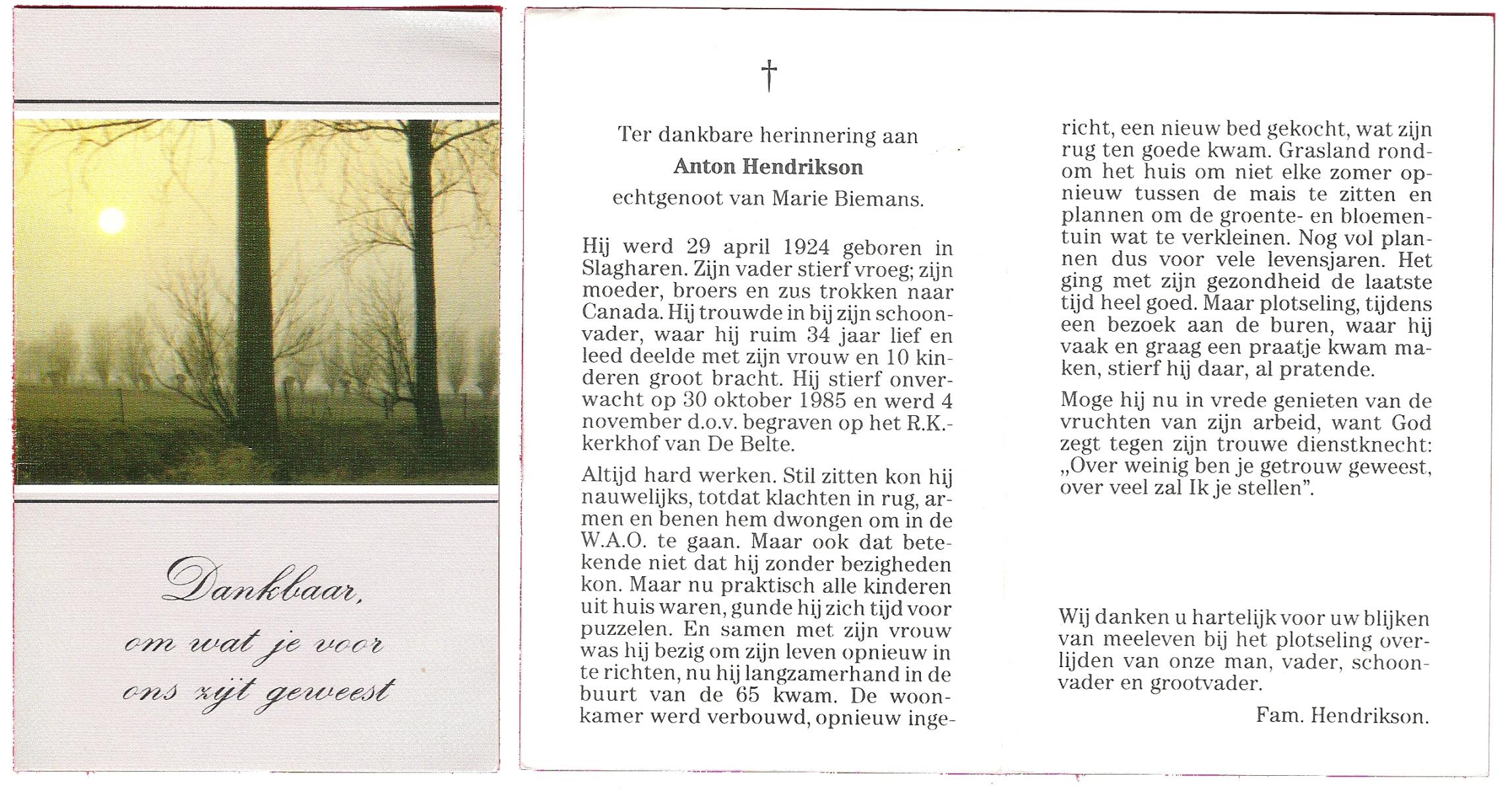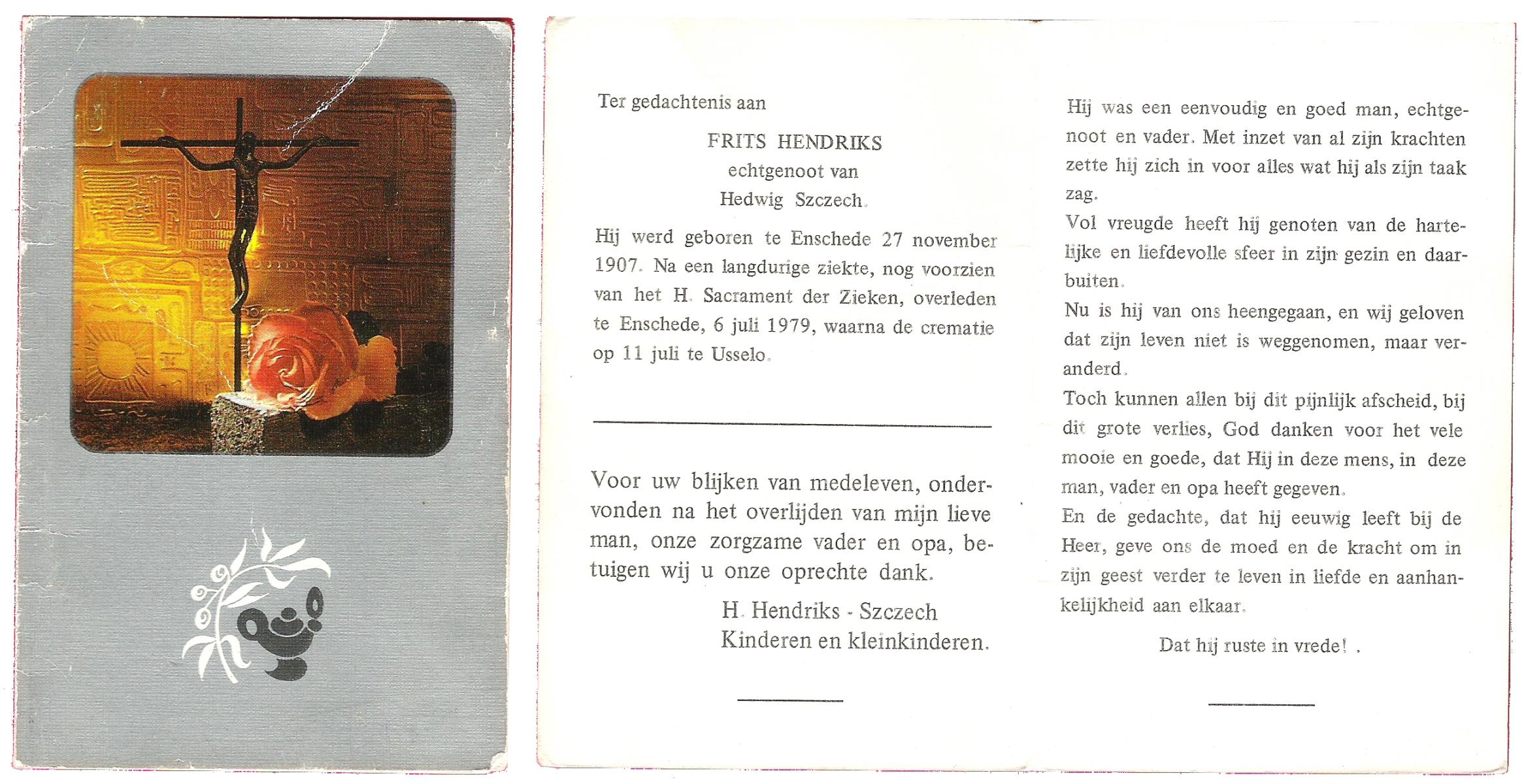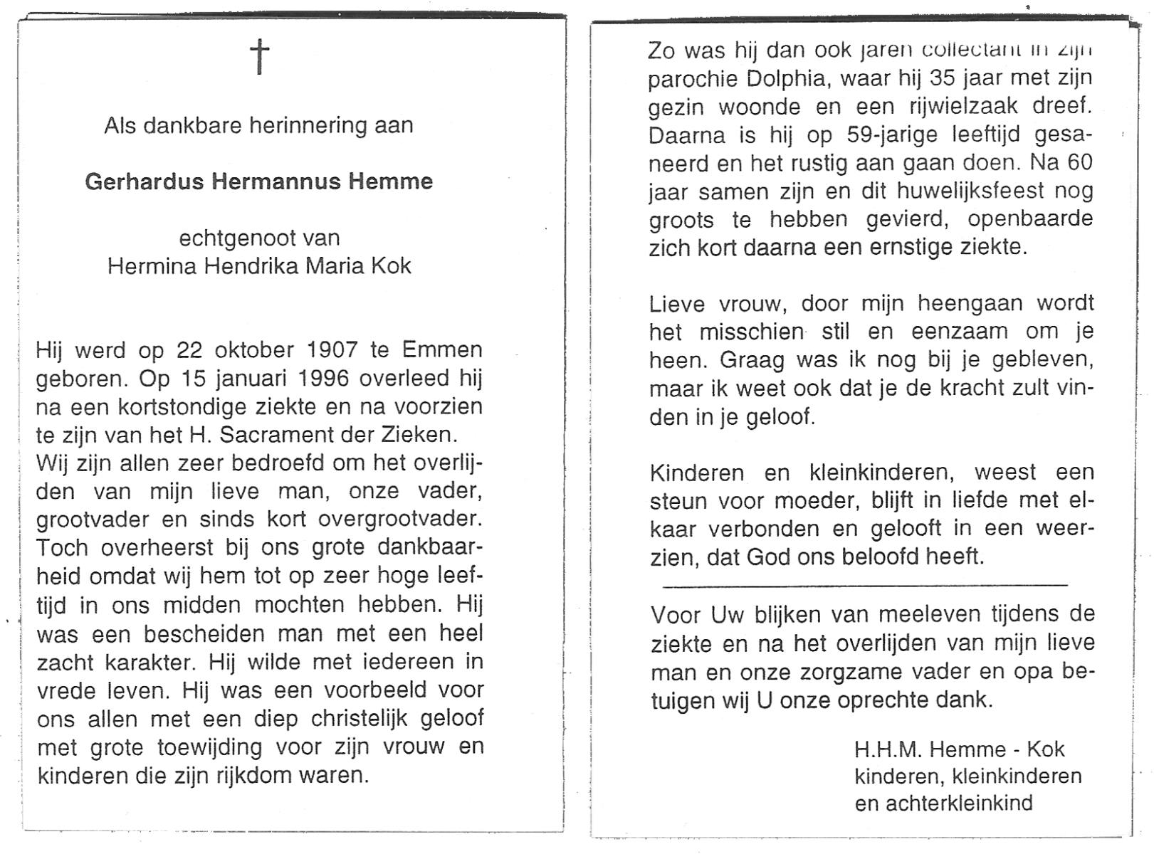 HEIMERIKS, Gradus (Gerhardus Wilhelmus), geboren op 27-03-1891 te Dedemsvaart, overleden op 27-8-1985 op 94-jarige leeftijd, begraven op 31-8-1985 te Dedemsvaart.