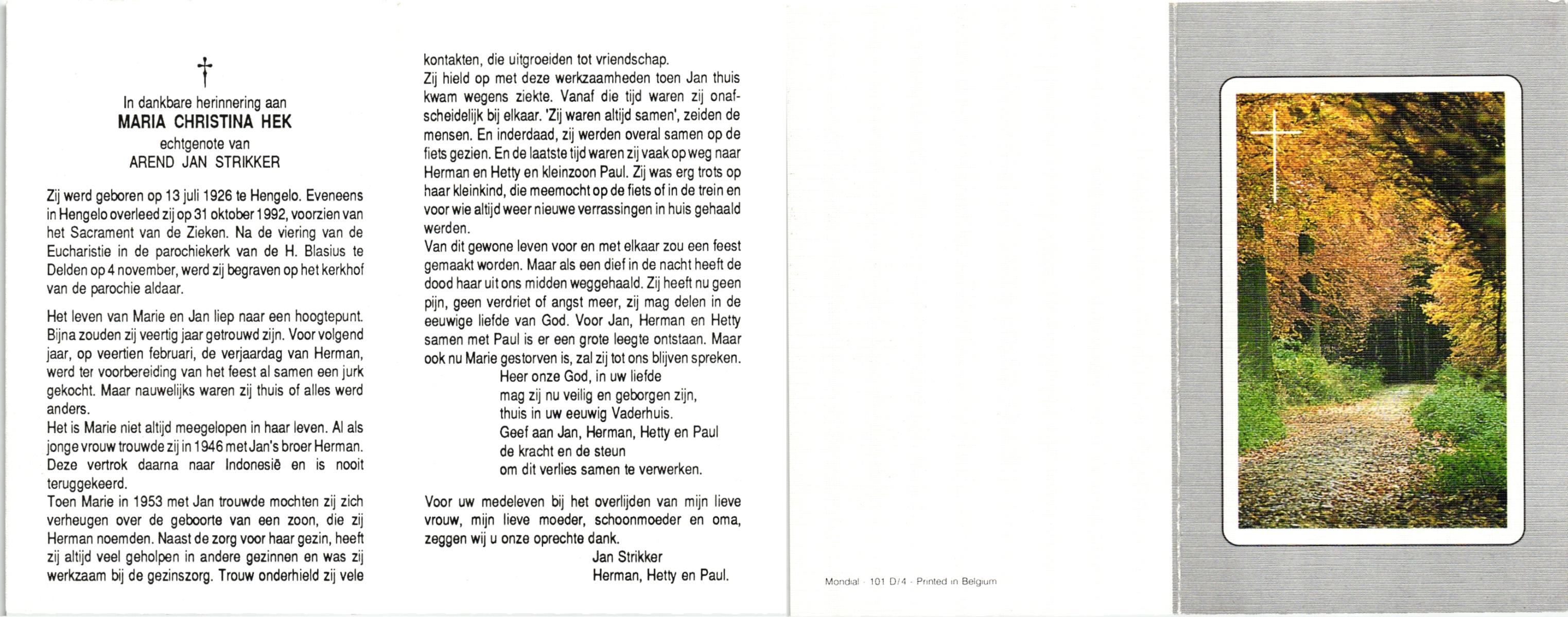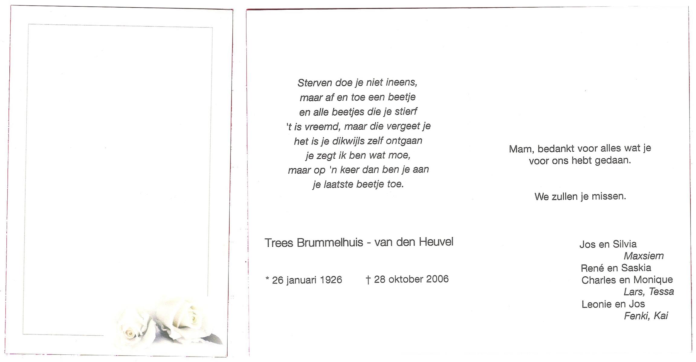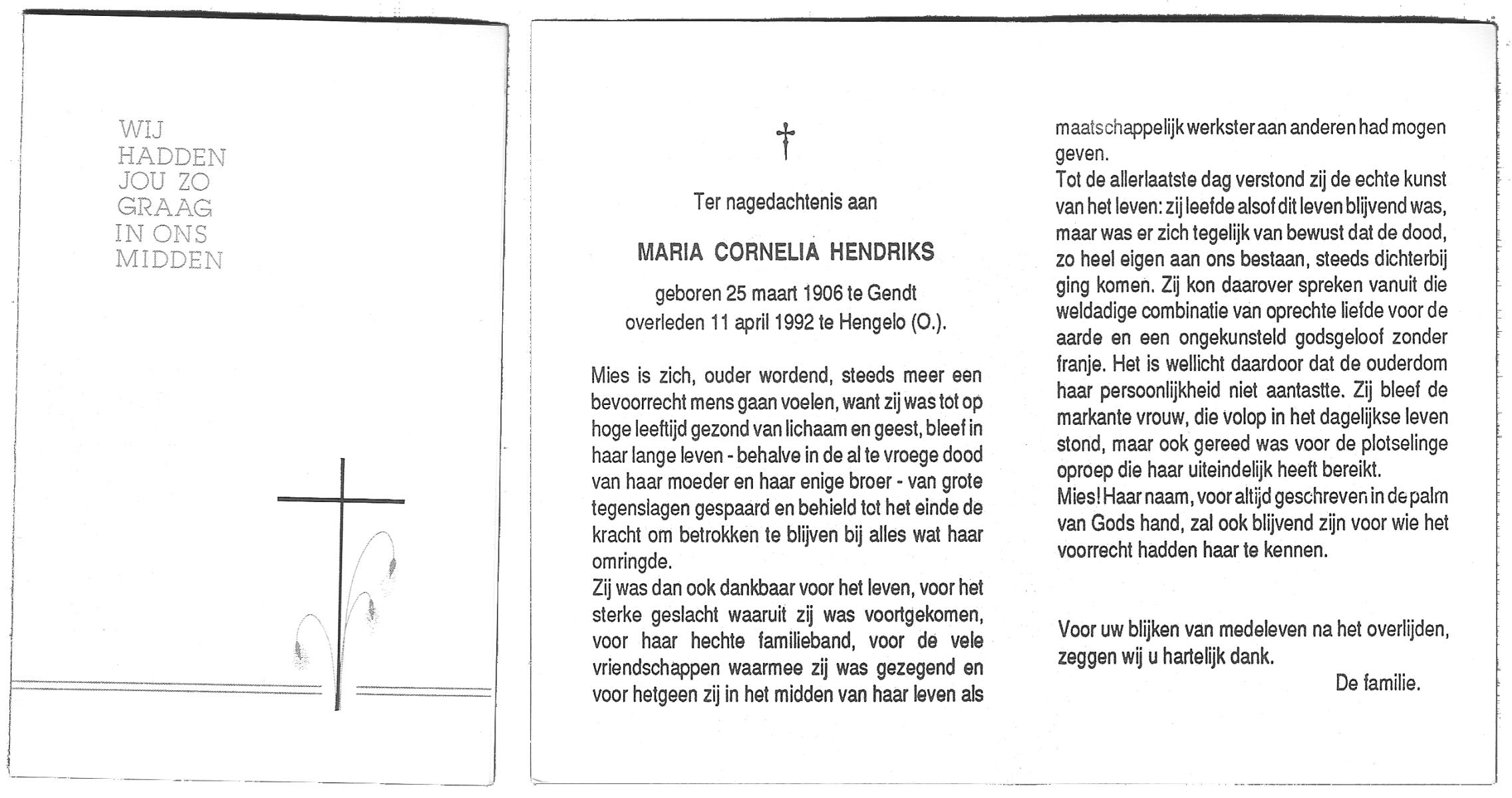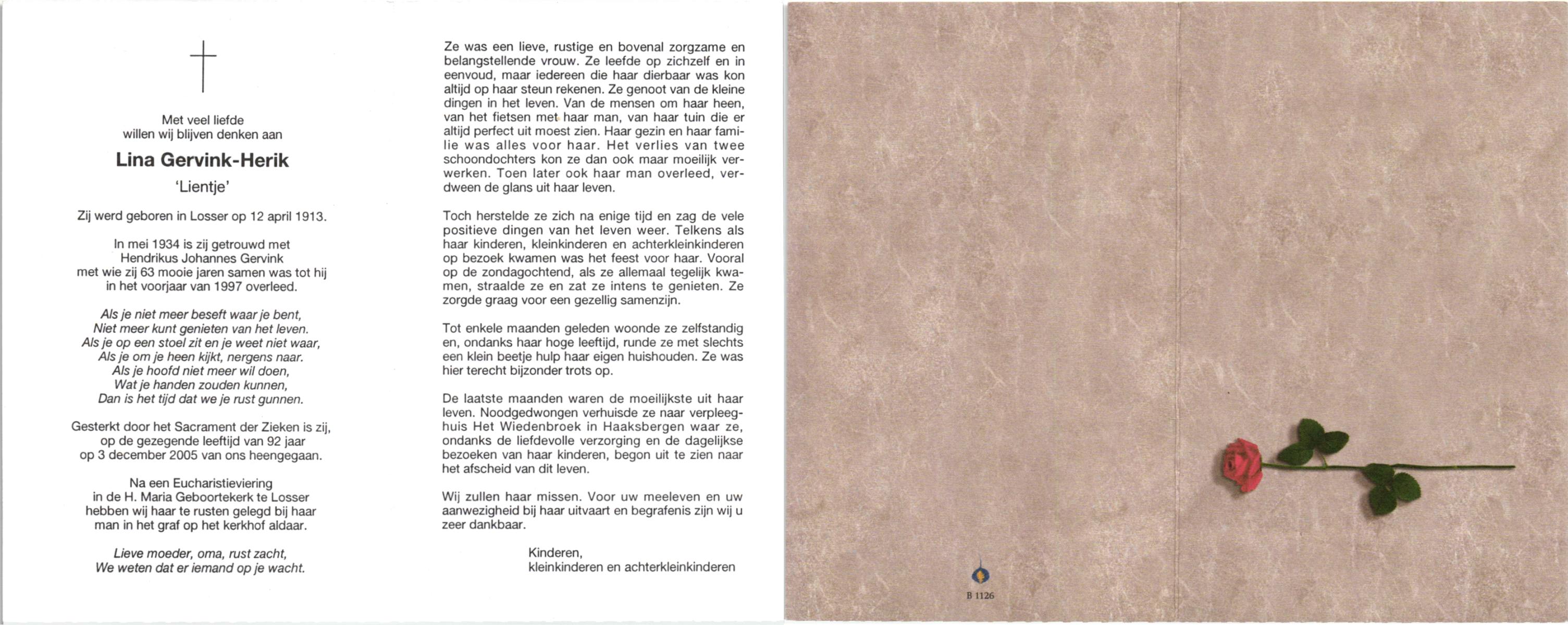 HEIMERIKS, Maria Geertruida, geboren op 29-7-1923 te Dedemsvaart, overleden op 30-9-2001 op 78-jarige leeftijd, begraven op 4-10-2001 te Dedemsvaart.