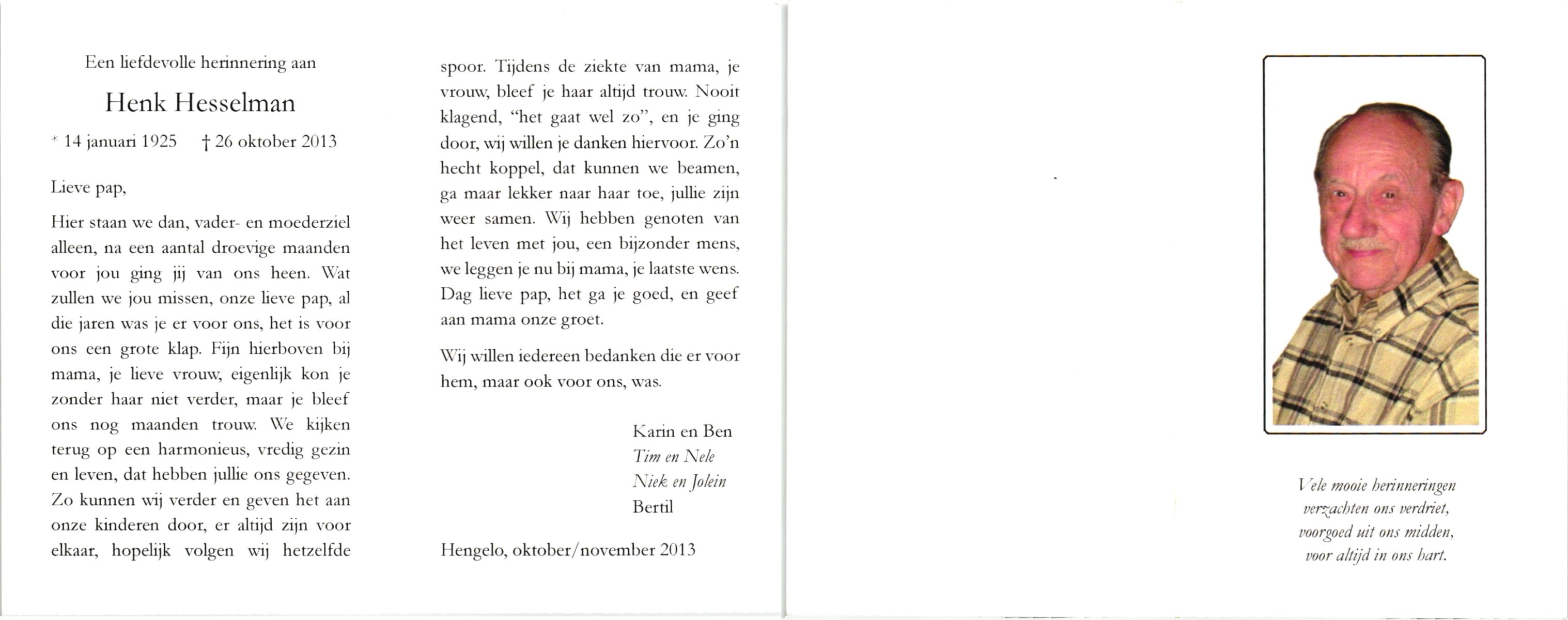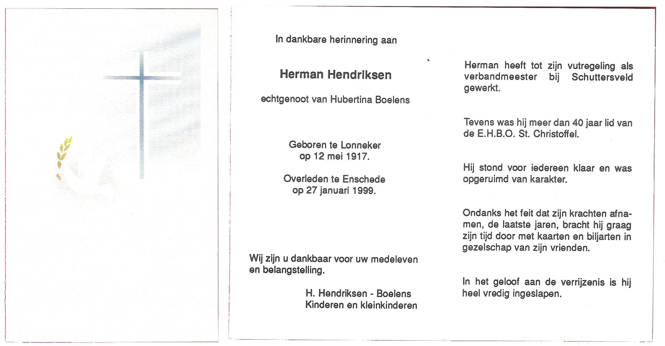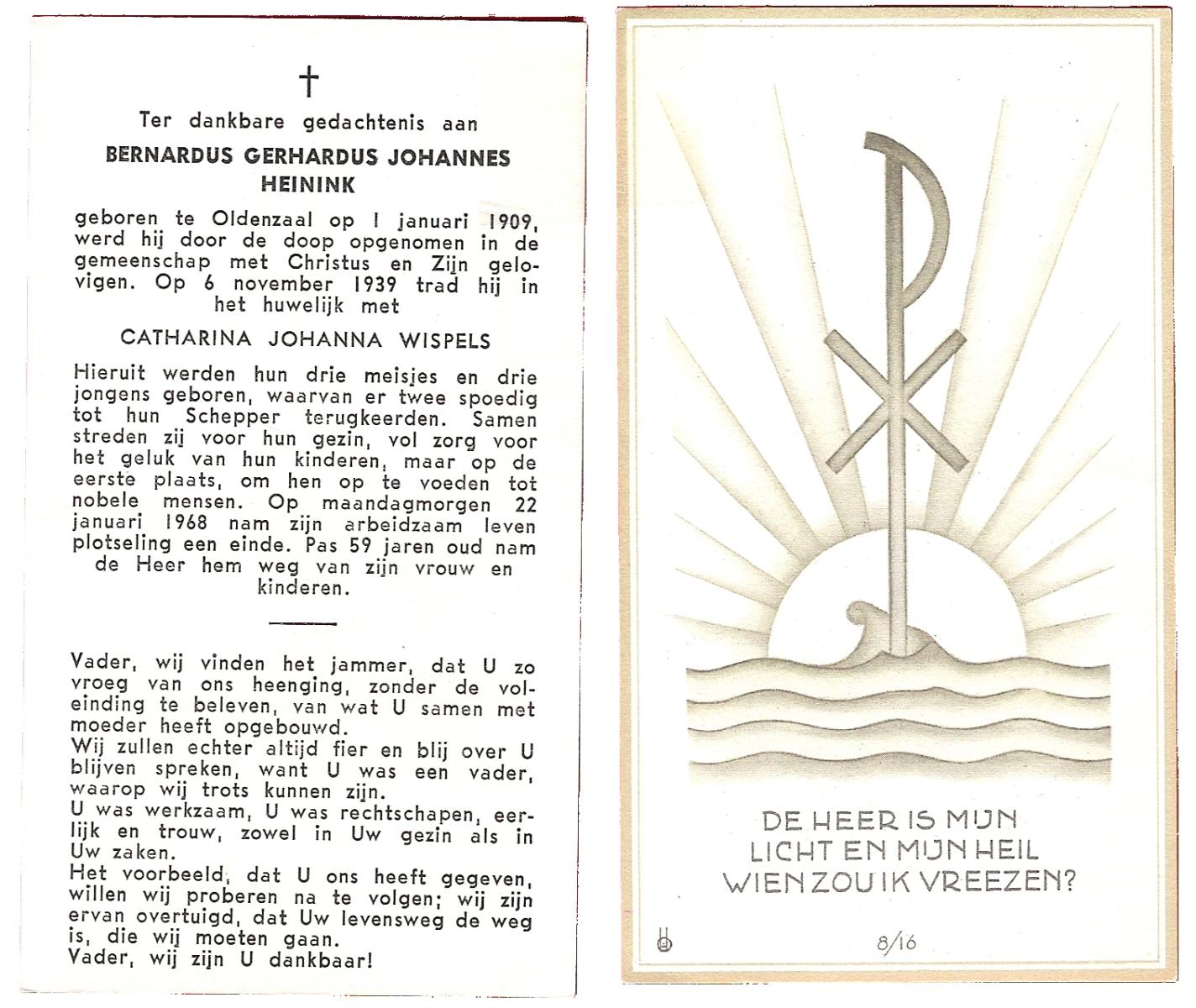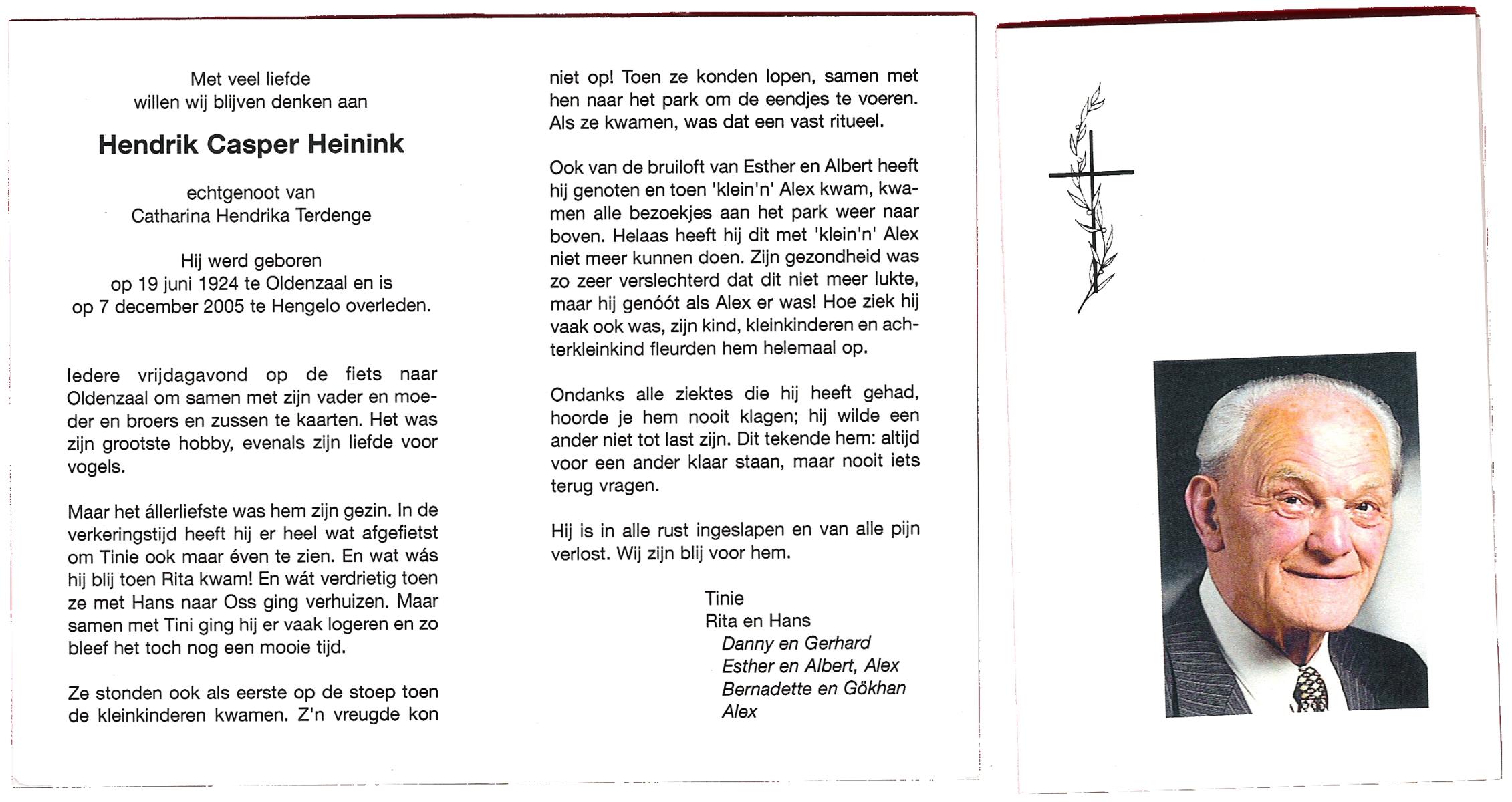 HEININK, Hendrik Casper, geboren op 19-6-1924 te Oldenzaal, overleden op 7-12-2005 te Hengelo (Ov.) op 81-jarige leeftijd.