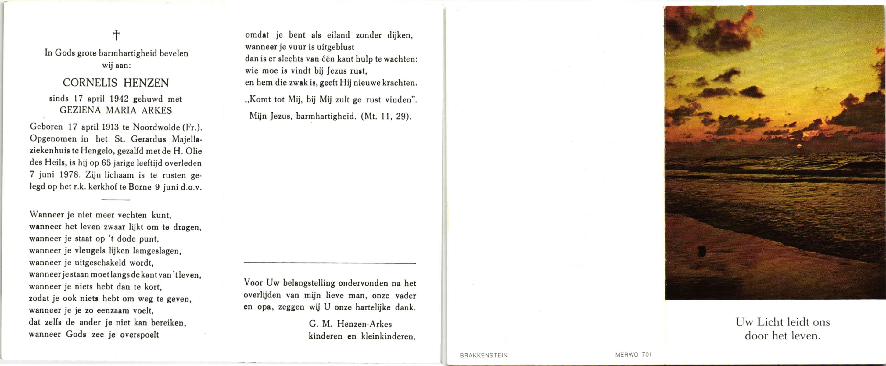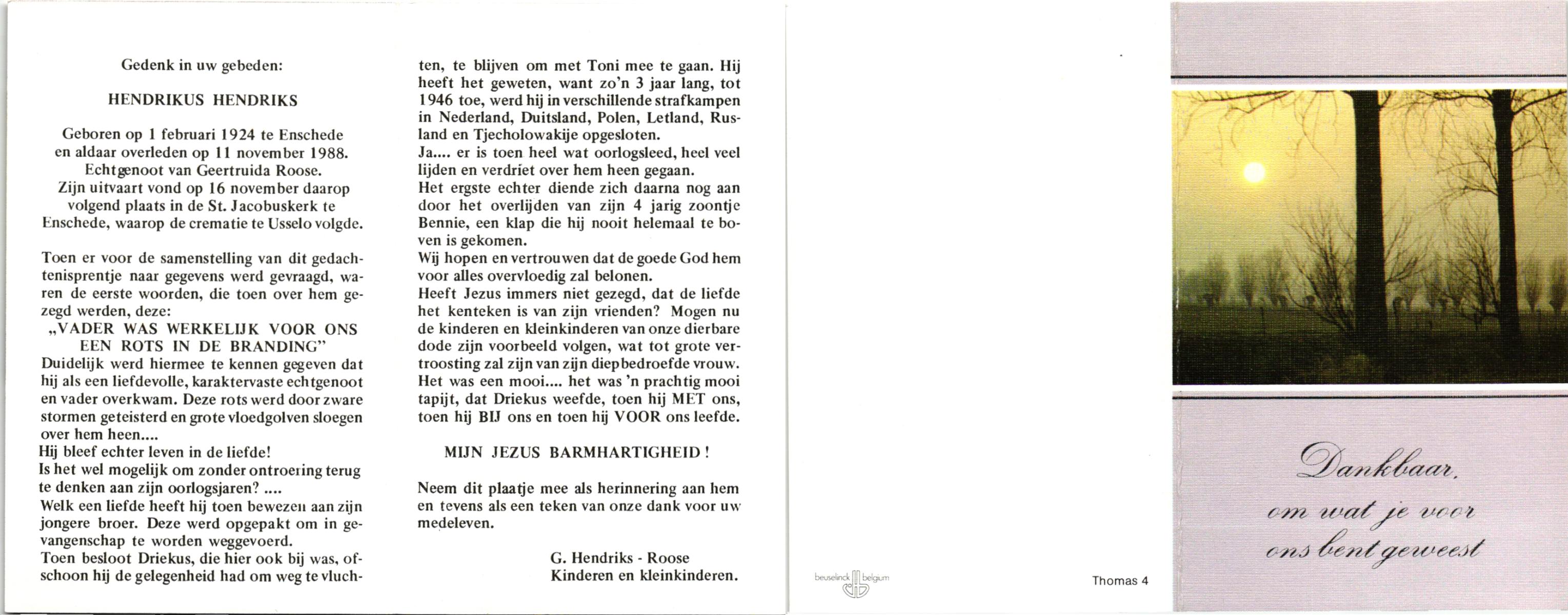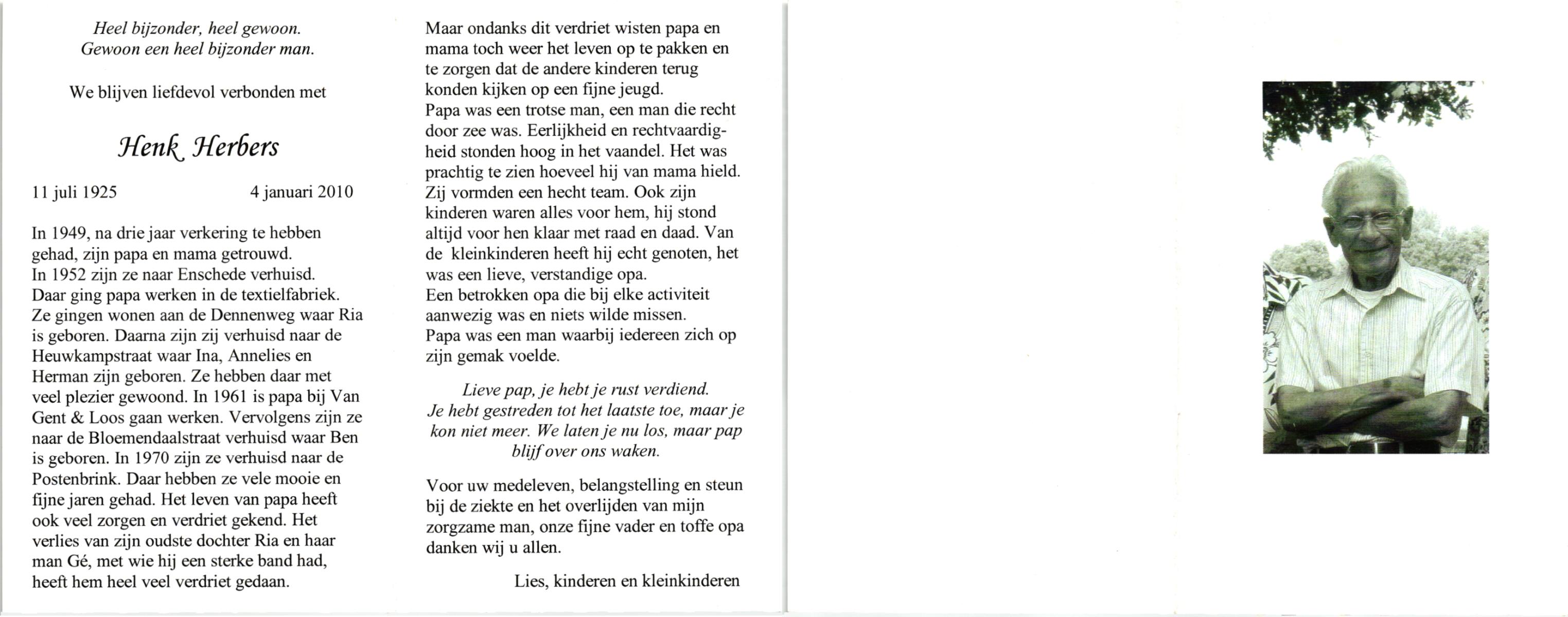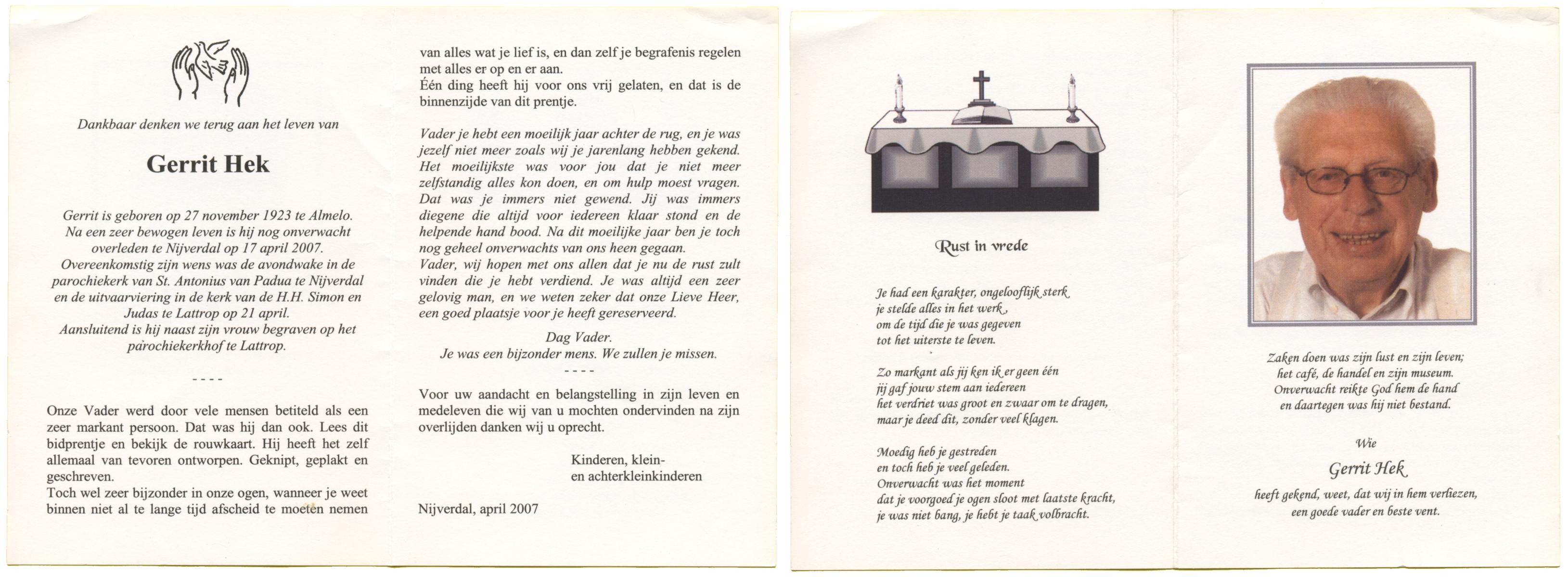 HEININK, Hendrik Casper, geboren op 19-6-1924 te Oldenzaal, overleden op 7-12-2005 te Hengelo (Ov.) op 81-jarige leeftijd.