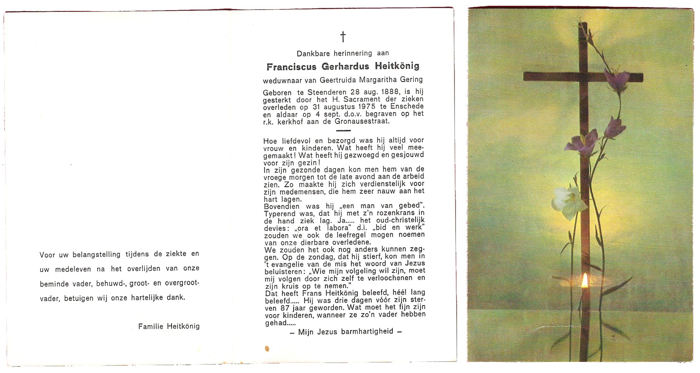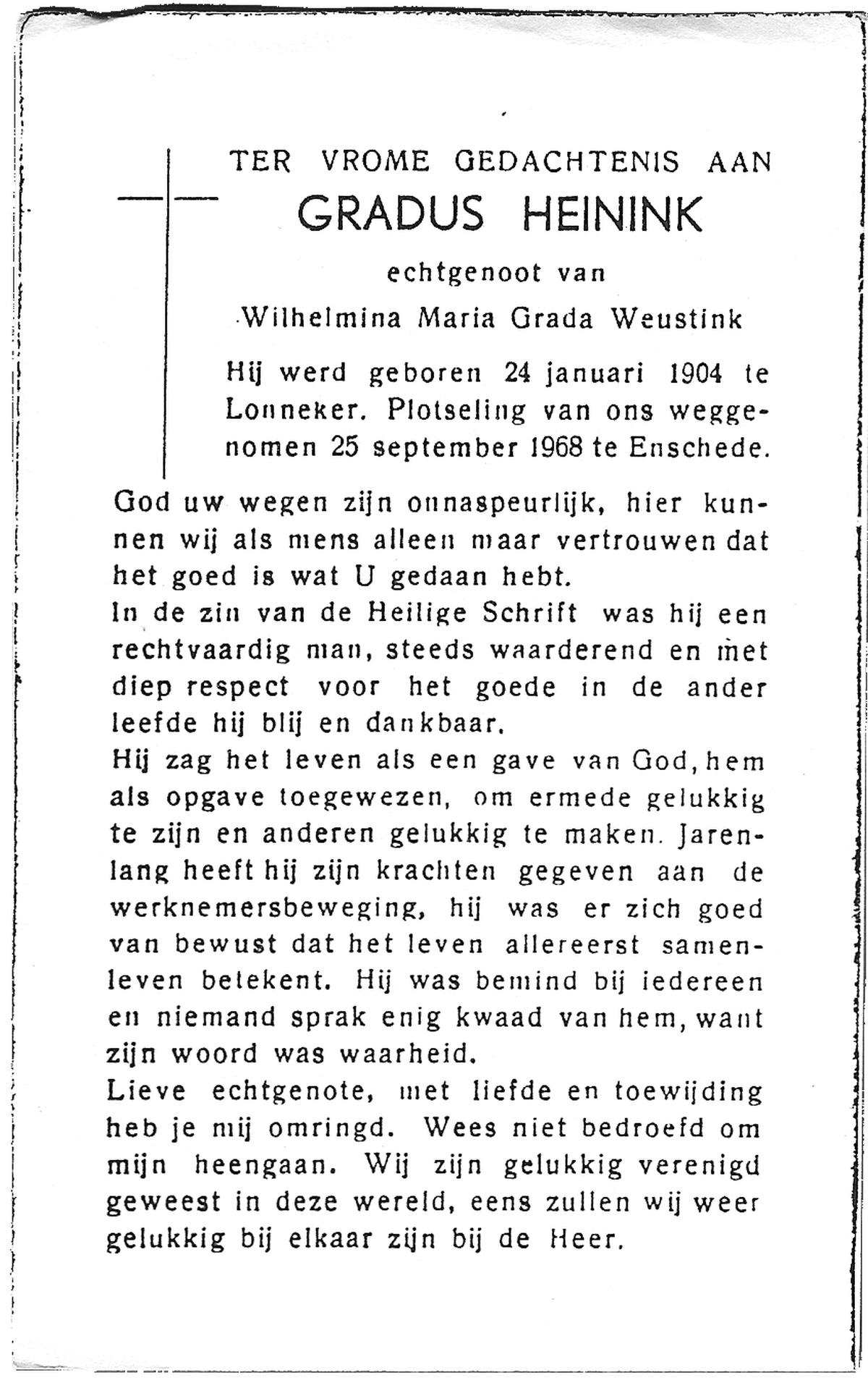 HEININK, Gradus, geboren op 24-1-1904 te Lonneker, overleden op 25-9-1968 te Enschede op 64-jarige leeftijd.