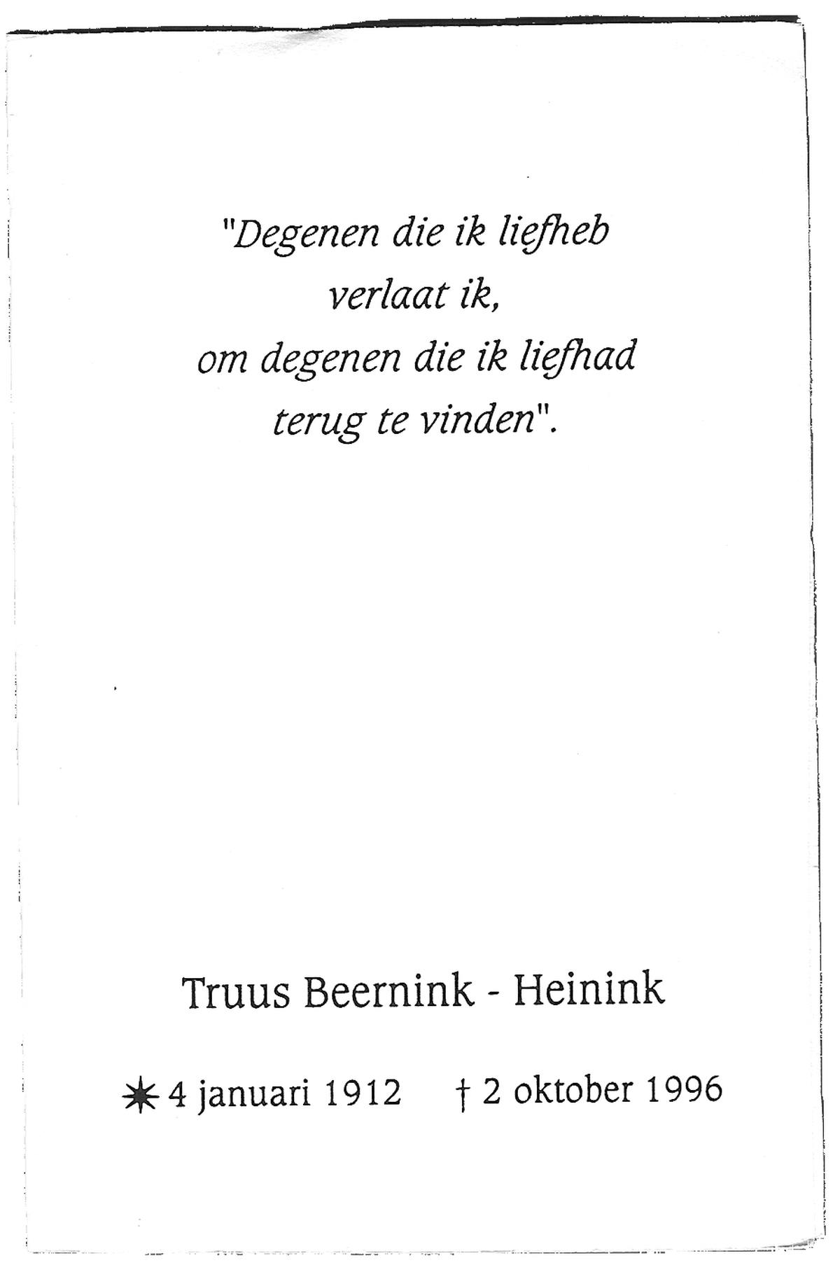 HEININK, Truus, geboren op 4-1-1912, overleden op 2-10-1996 op 84-jarige leeftijd.