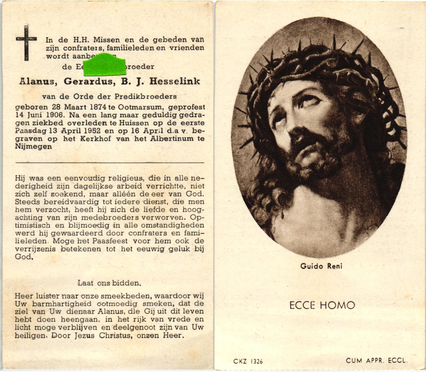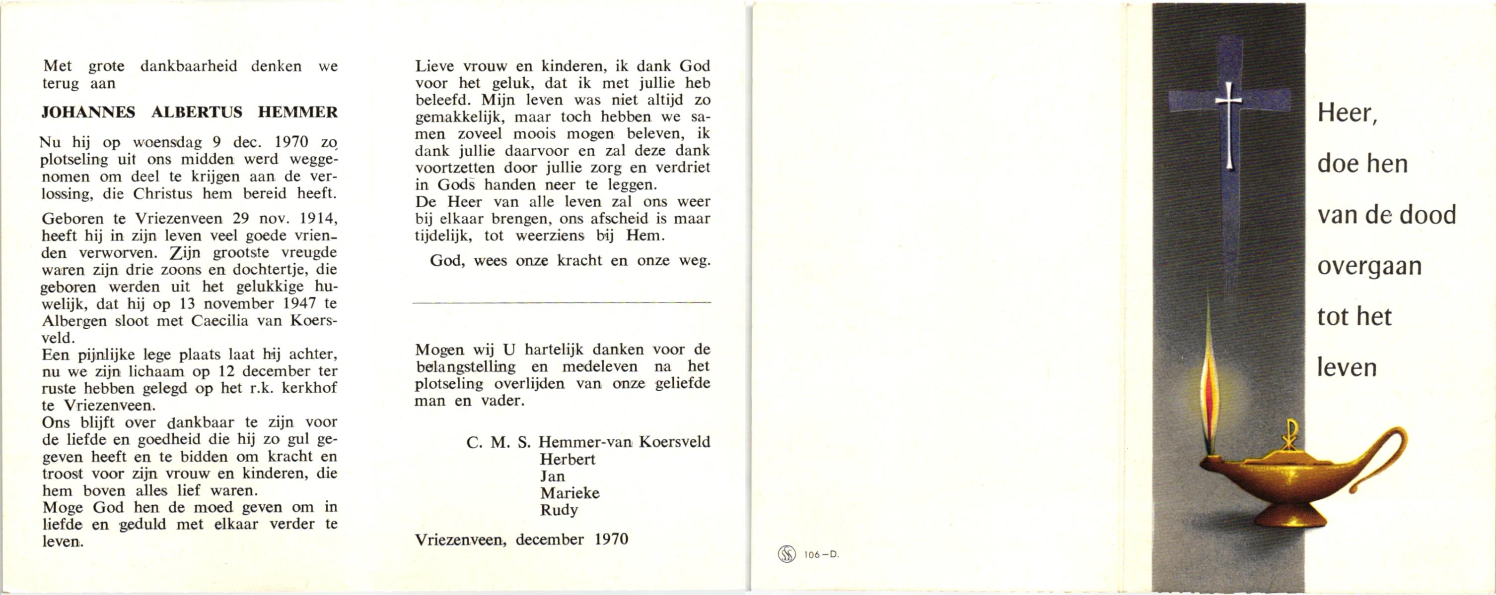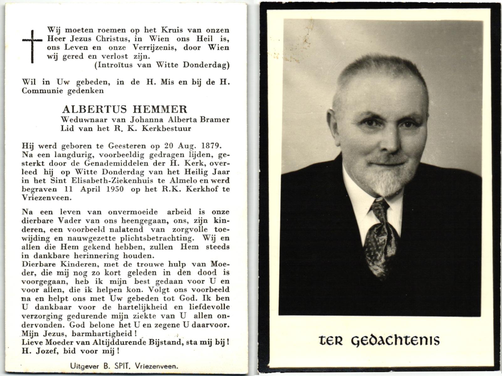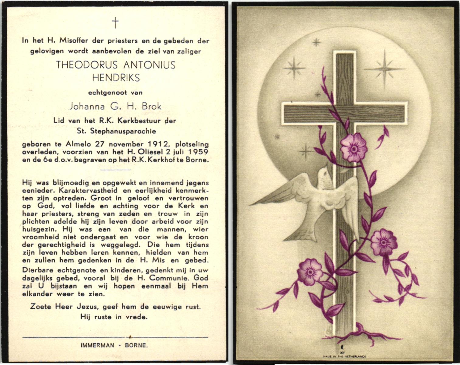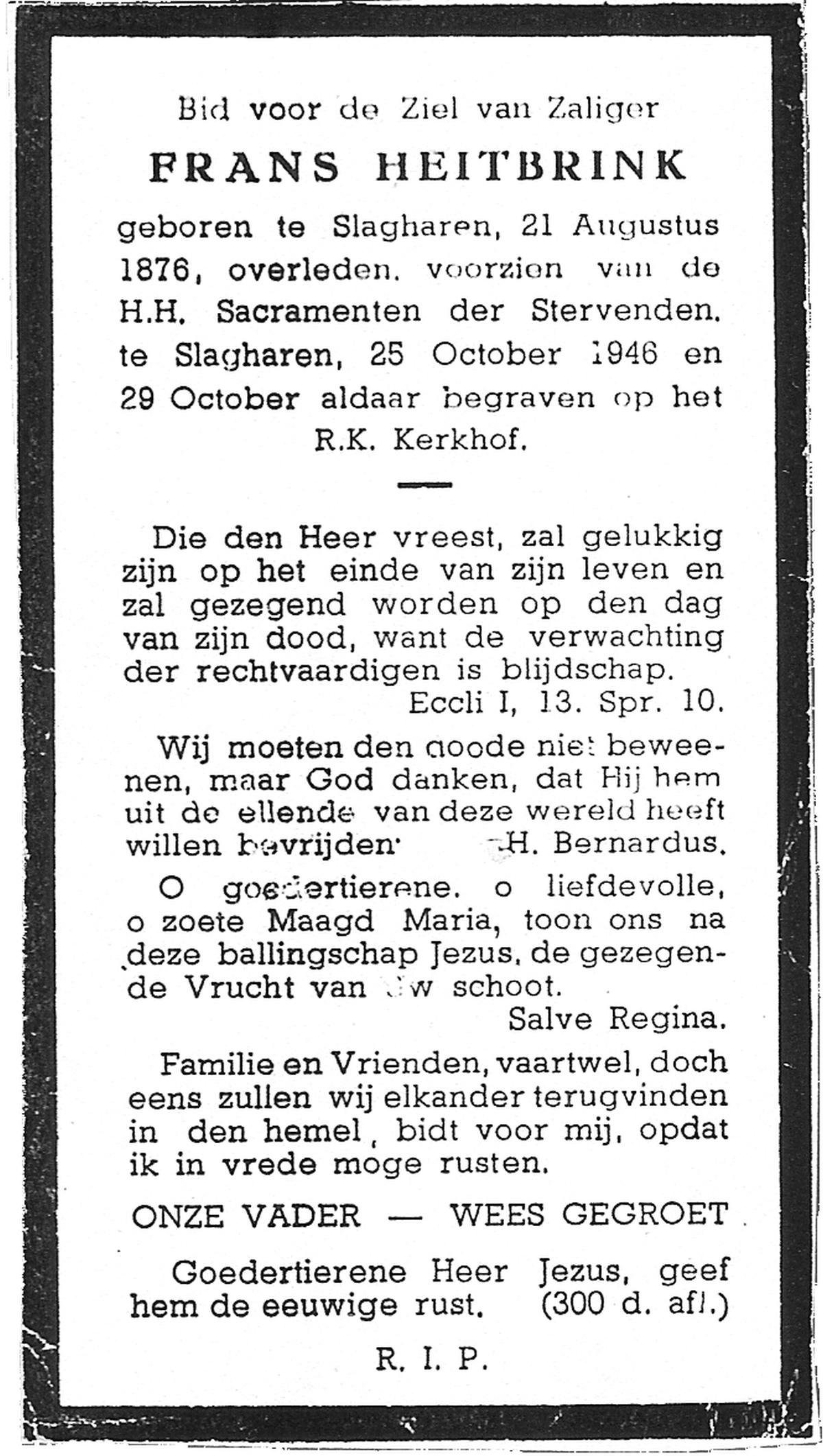 HEITBRINK, Andreas Maria, geboren op 30-5-1907 te Dedemsvaart, overleden op 19-10-1965 te Amsterdam op 58-jarige leeftijd, begraven op 23-10-1965 te Dedemsvaart.