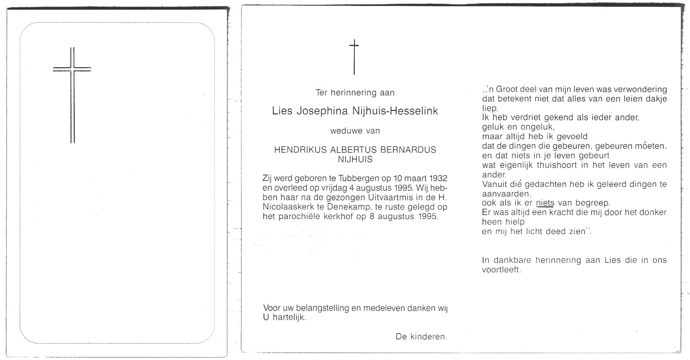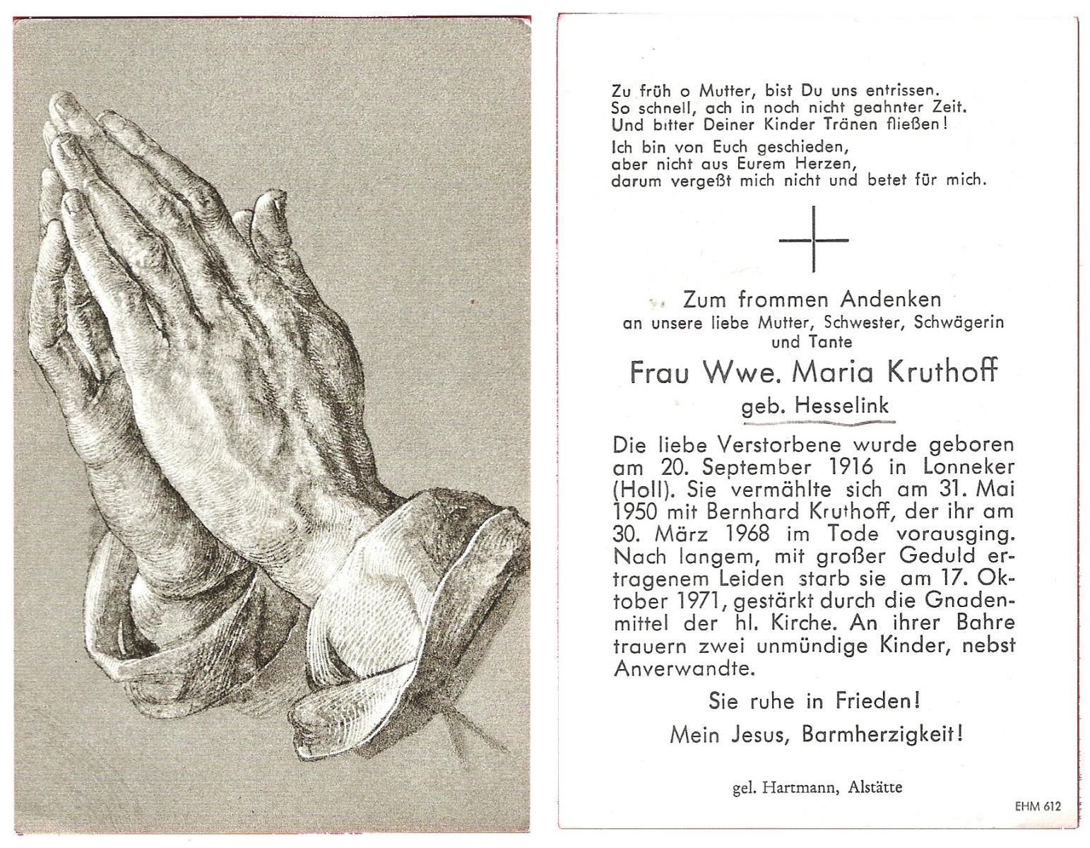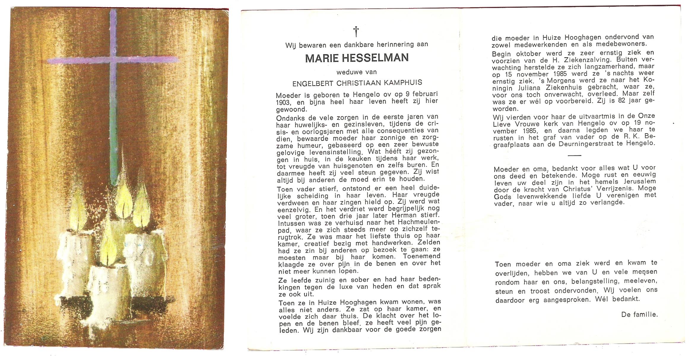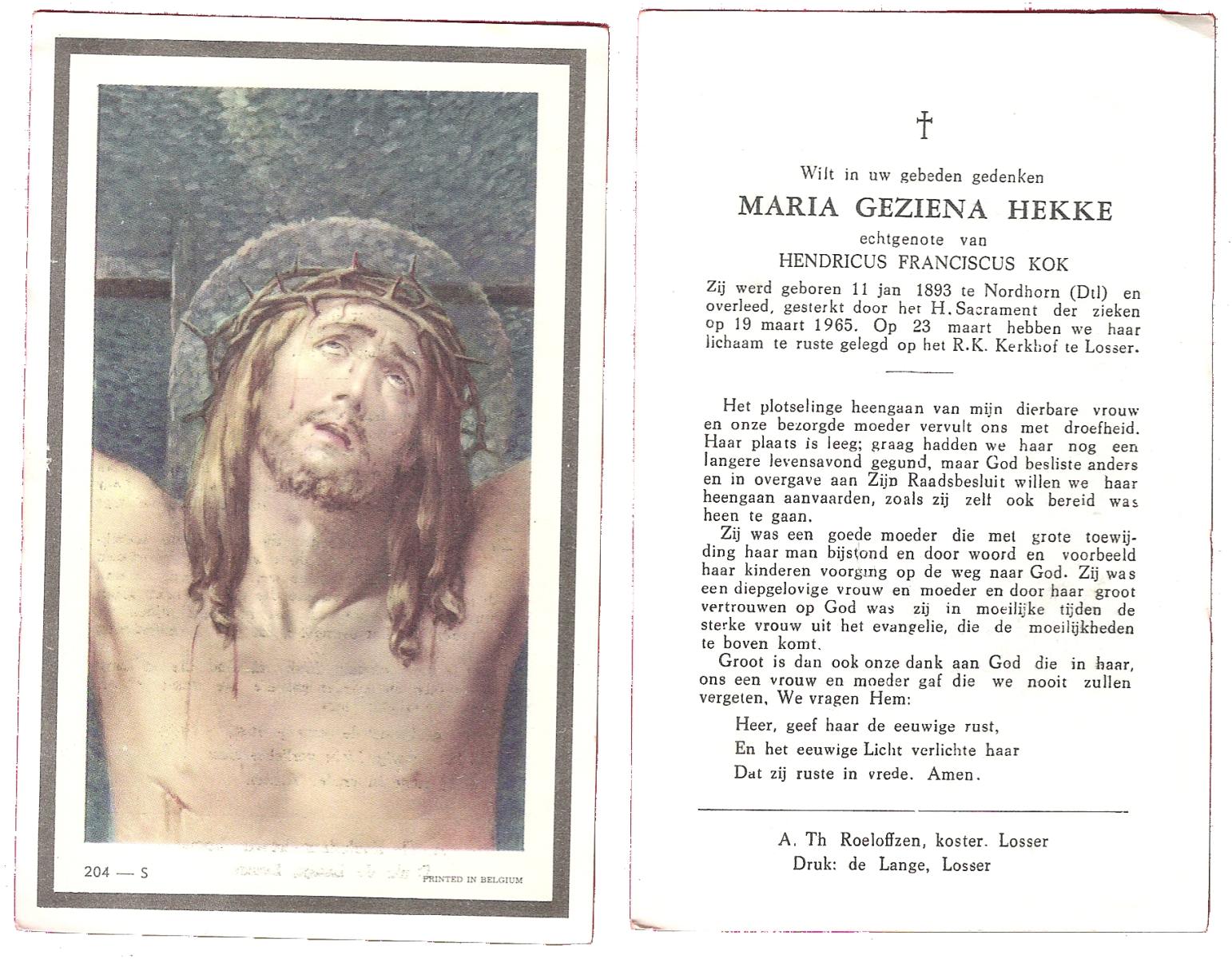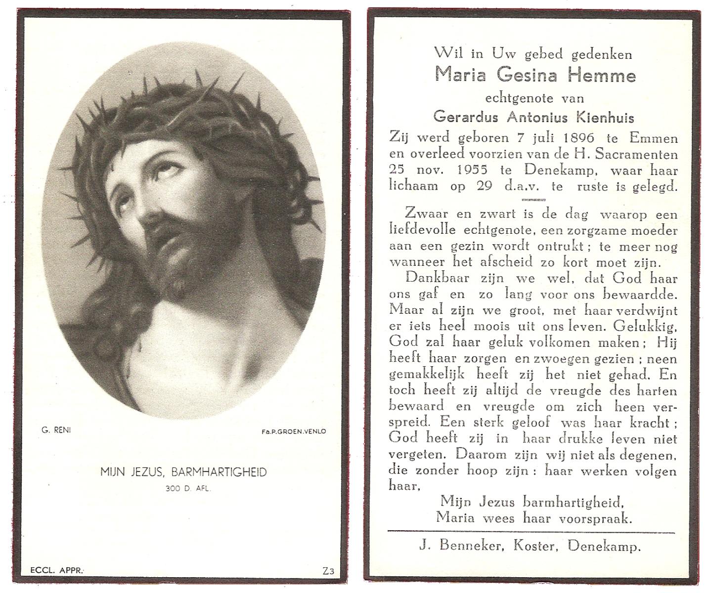 HISKER, Johanna Maria, geboren op 16-03-1894 te Lünten(D), overleden op 20-12-1988 te Buurse op 94-jarige leeftijd, begraven op 24-12-1988 te Buurse.