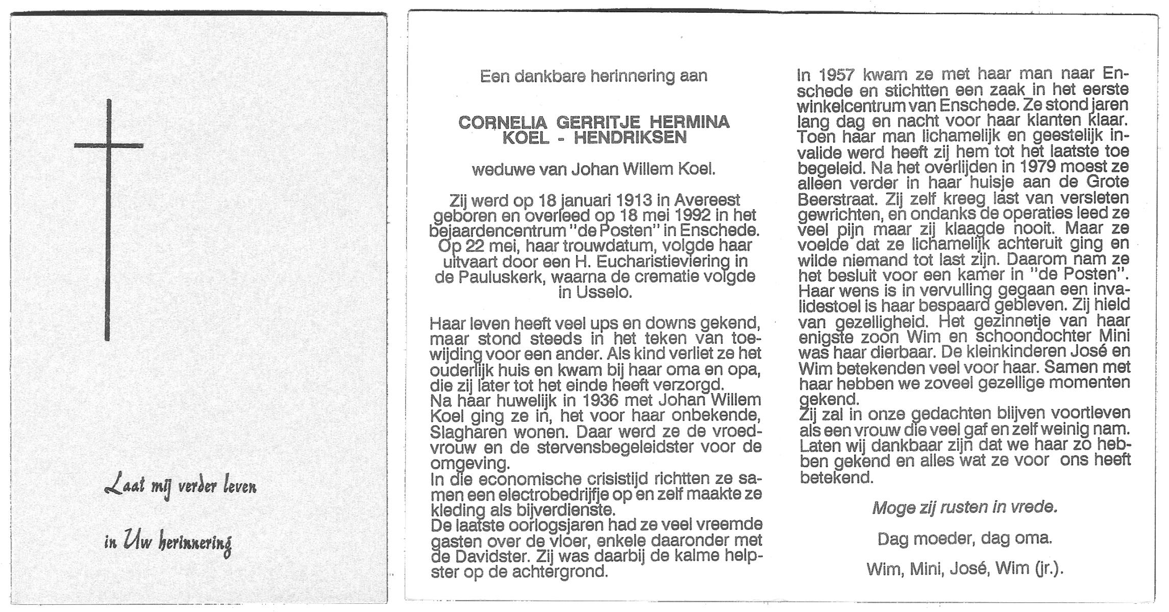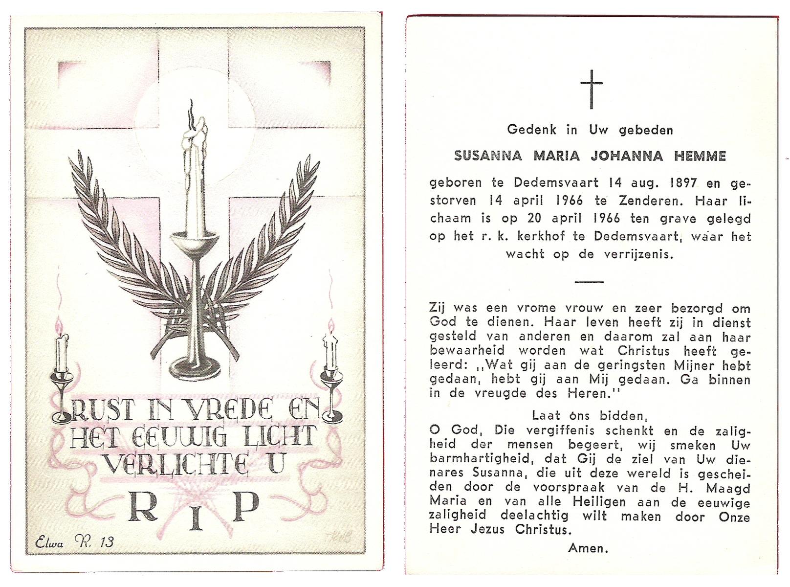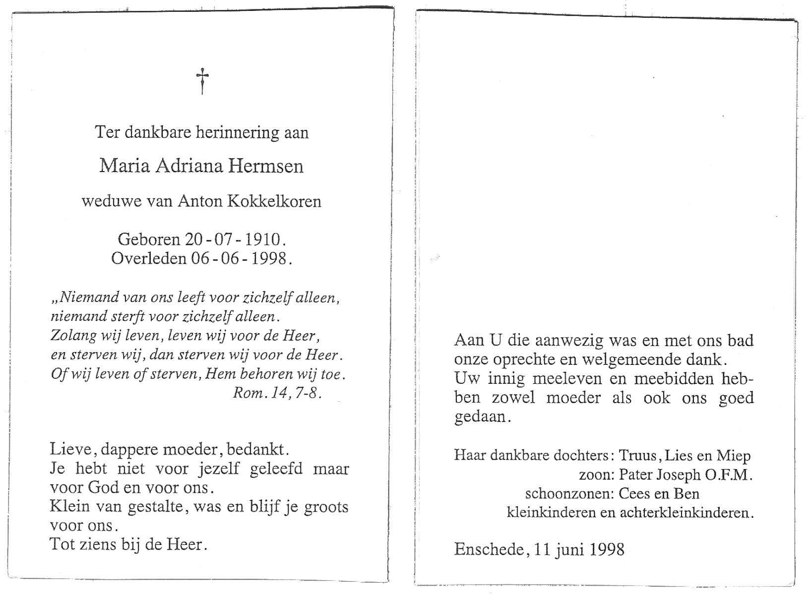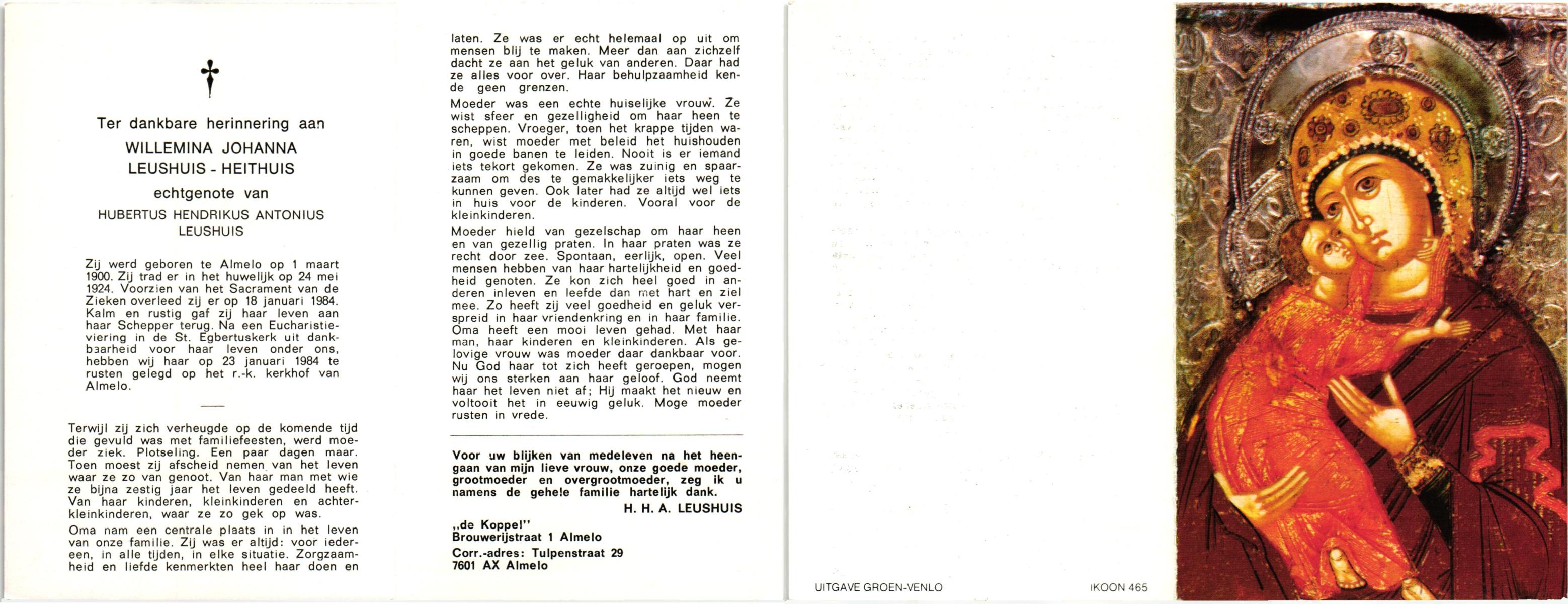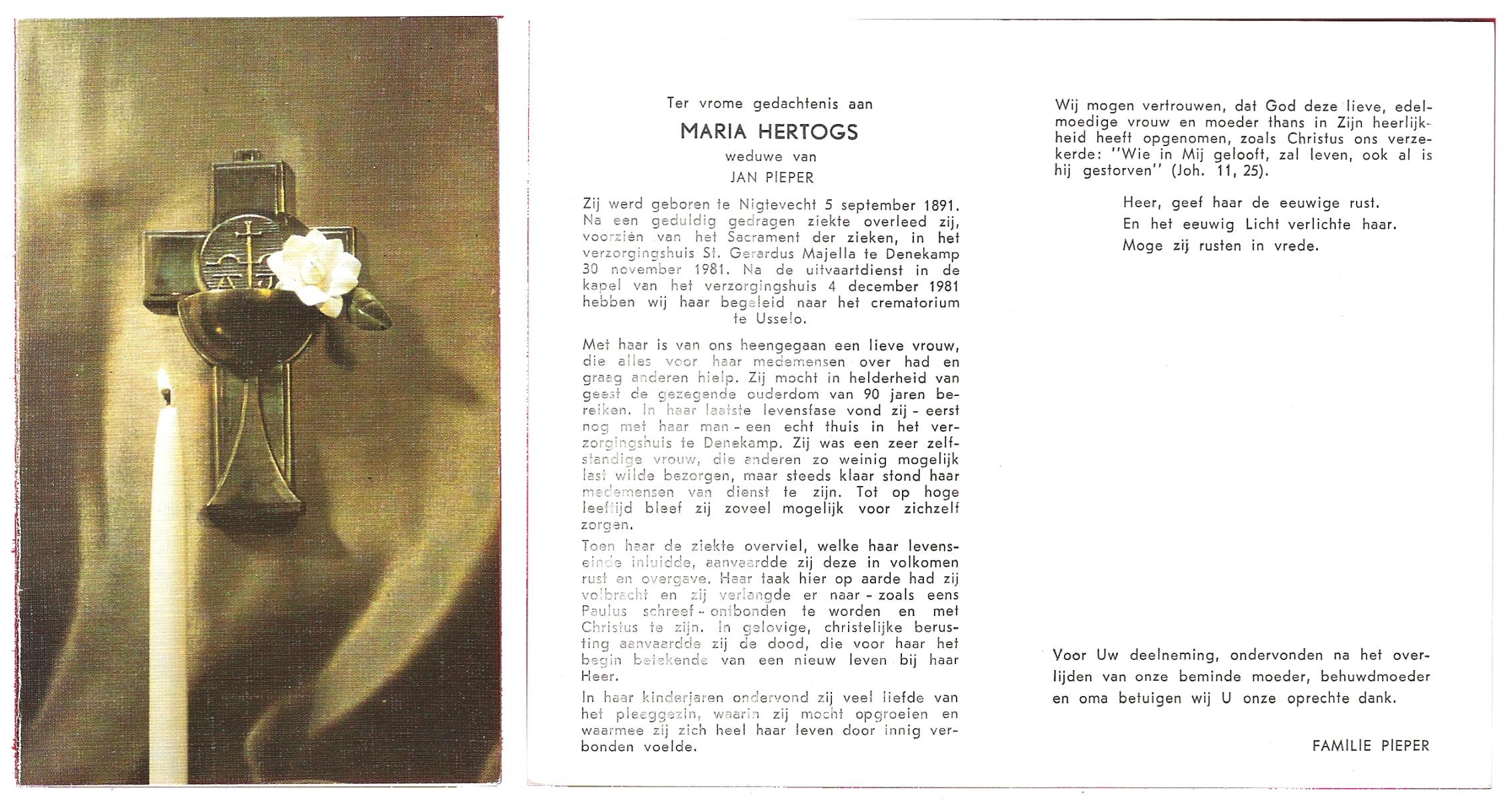 HISKER, Johanna Maria, geboren op 16-03-1894 te Lünten(D), overleden op 20-12-1988 te Buurse op 94-jarige leeftijd, begraven op 24-12-1988 te Buurse.