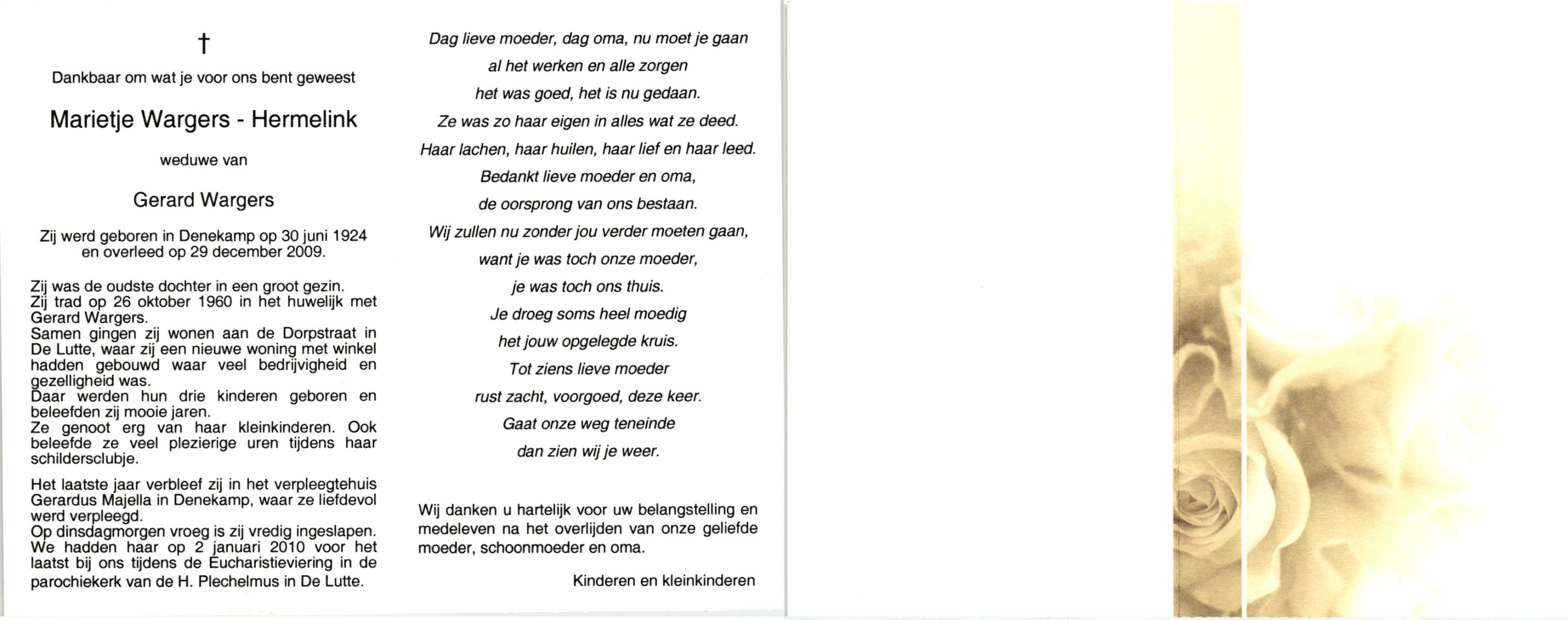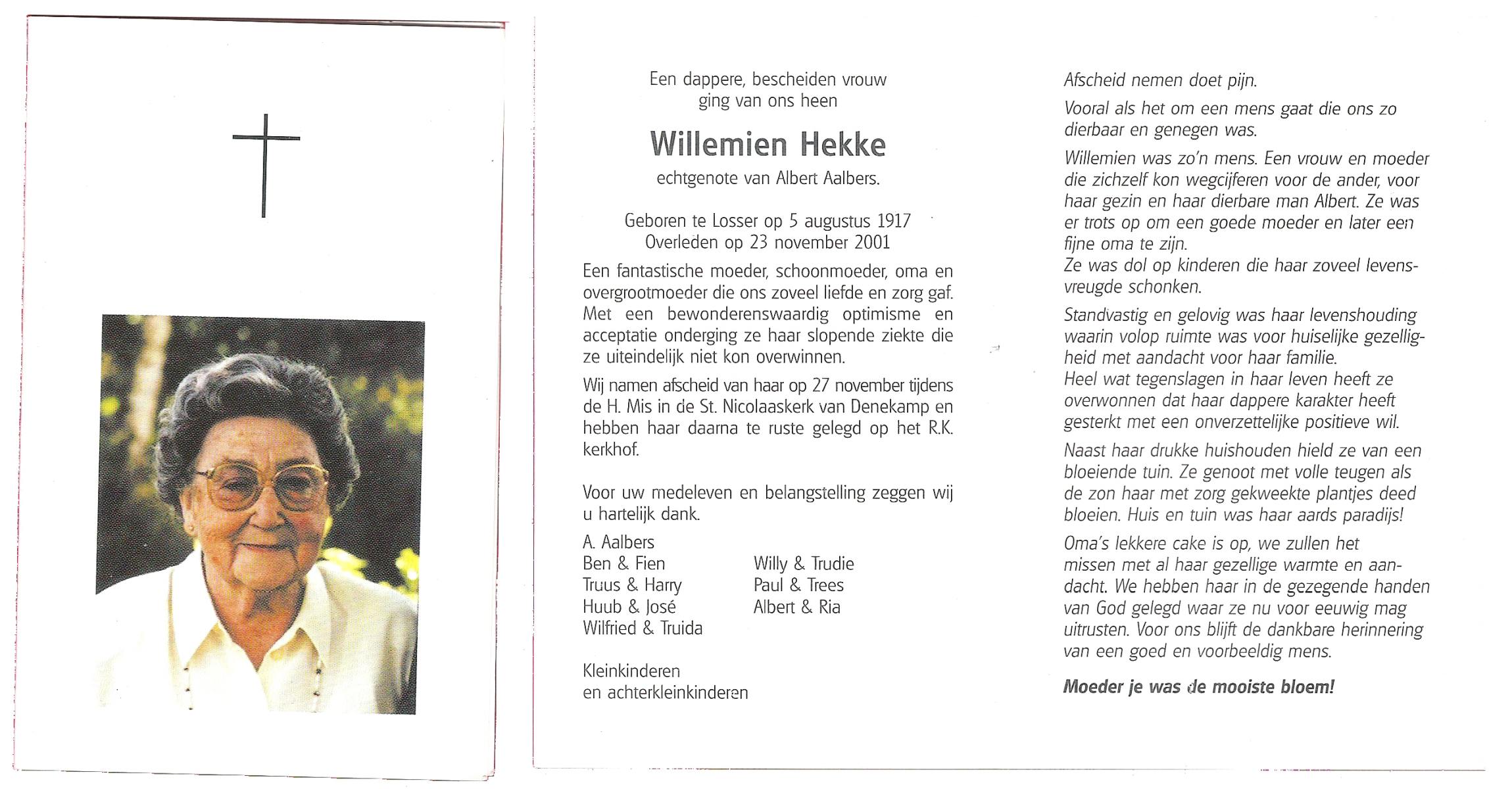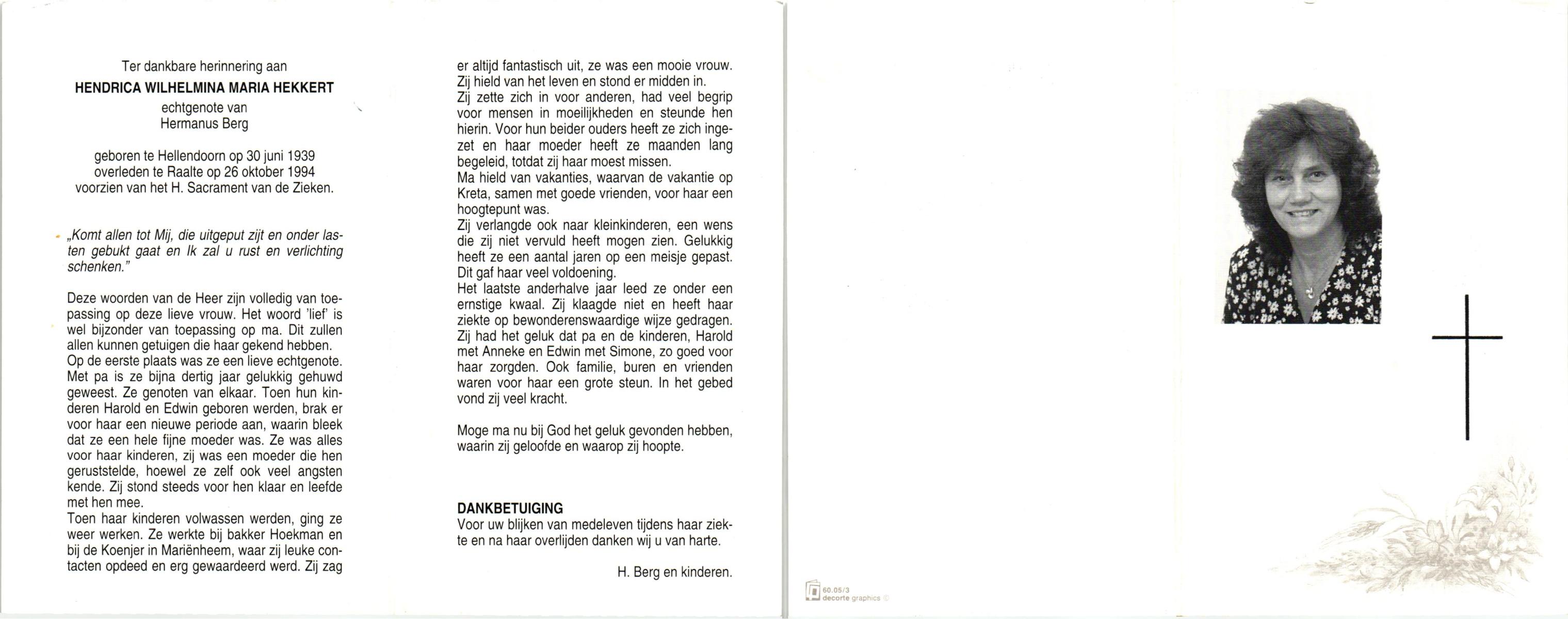 HILBERINK, Wilhelmina Maria Jozefina, geboren op 17-3-1932 te Hellendoorn, Nijverdal, overleden op 26-7-2006 te Hellendoorn op 74-jarige leeftijd, begraven op 31-7-2006 te Hellendoorn, Nijverdal.