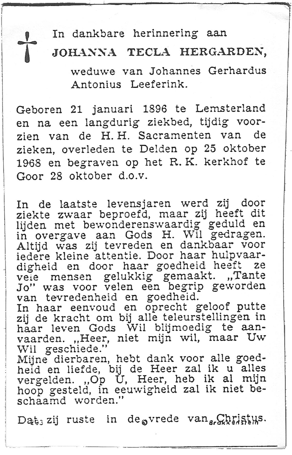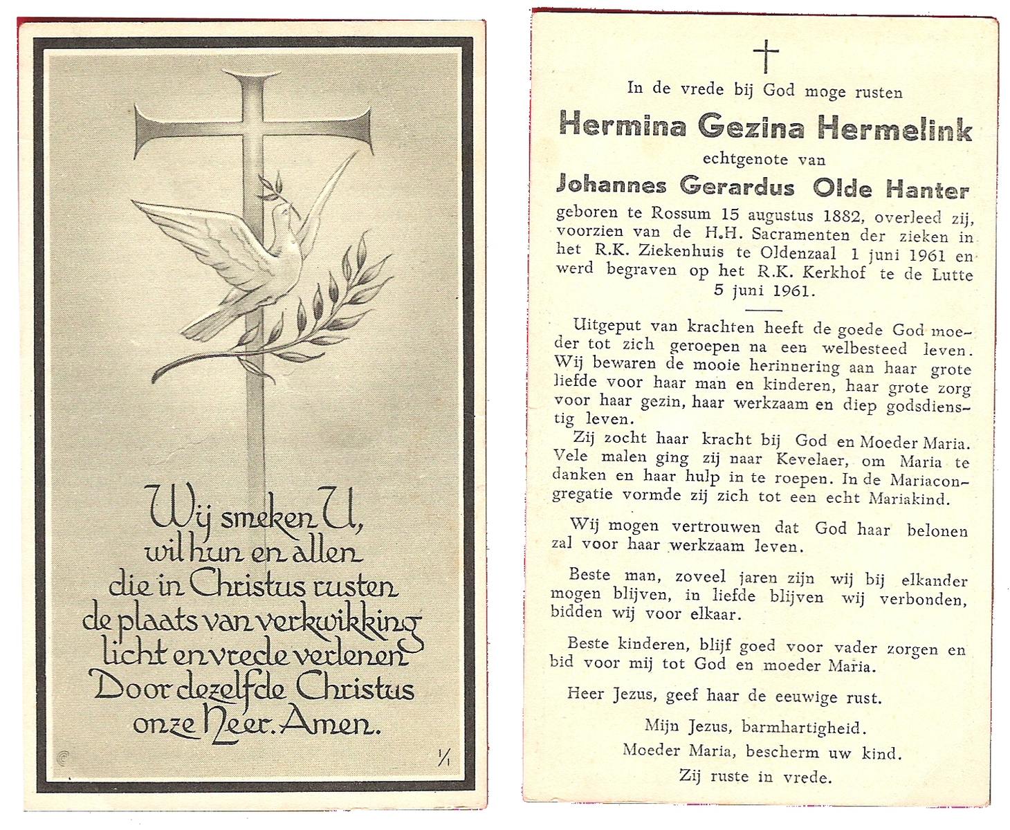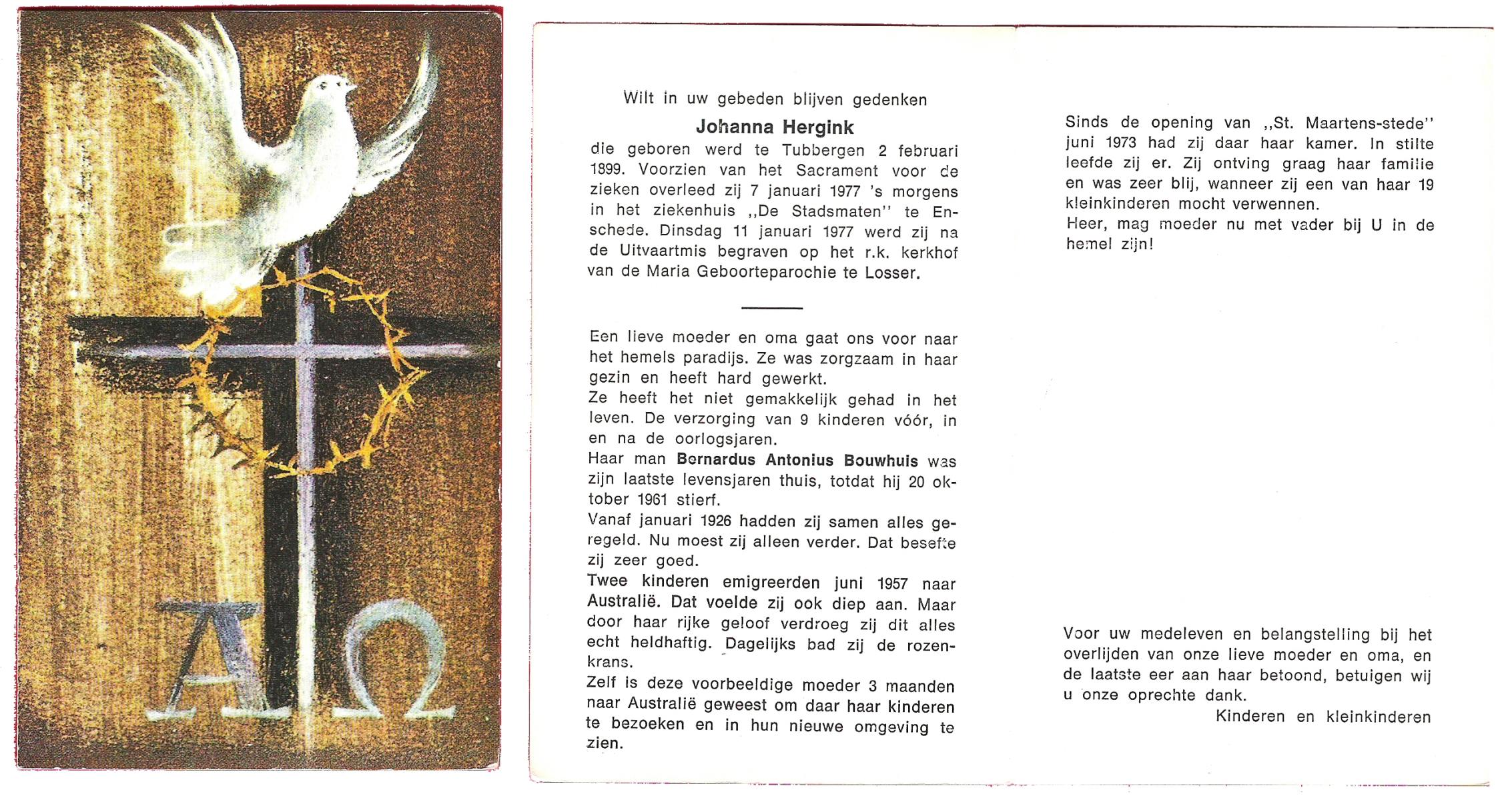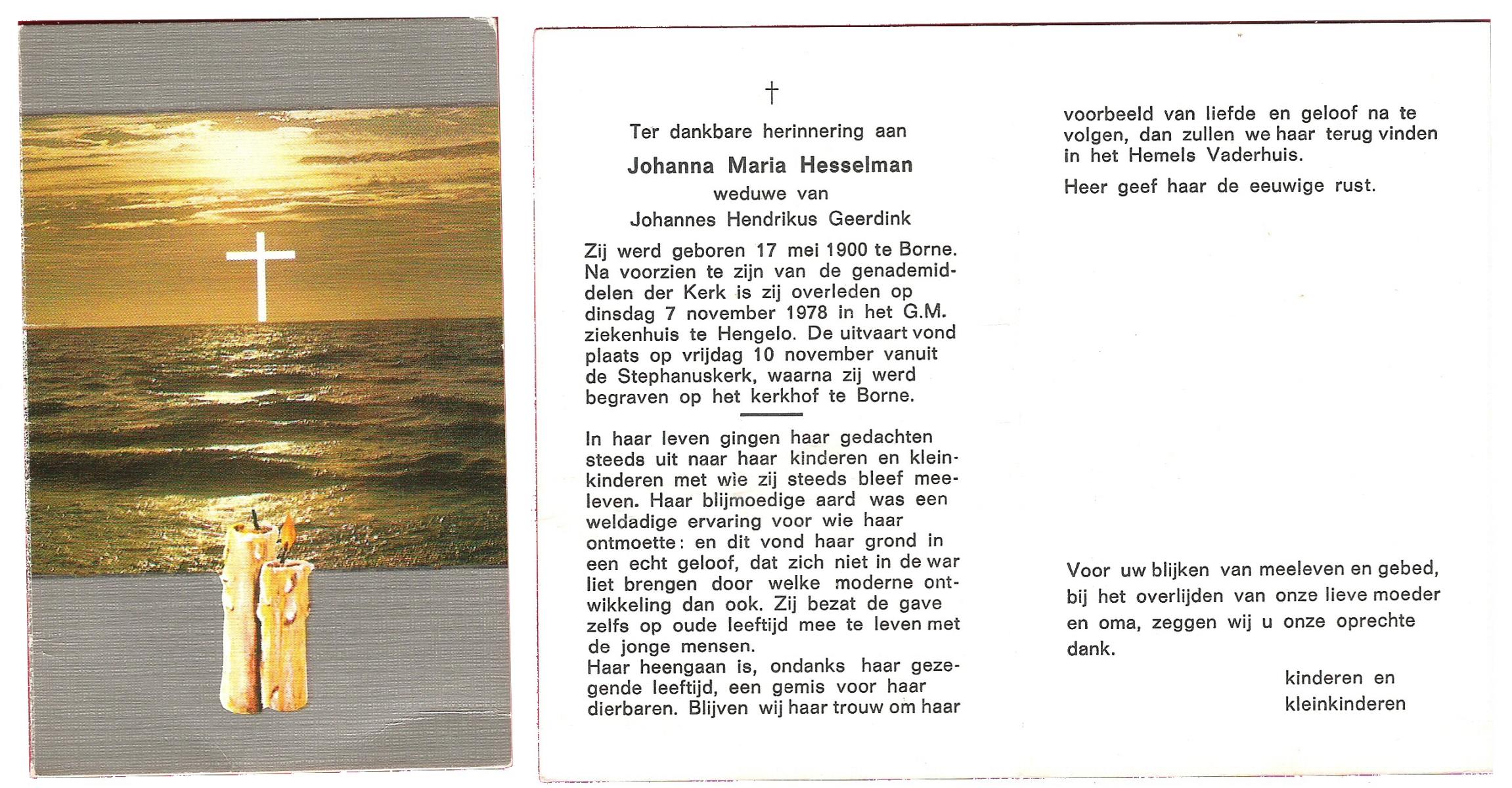 HOBBELINK, Geertruida Maria Johanna, geboren op 8-1-1904 te Lemselo, overleden op 31-1-1978 te Almelo op 74-jarige leeftijd, begraven op 3-2-1978 te Albergen.