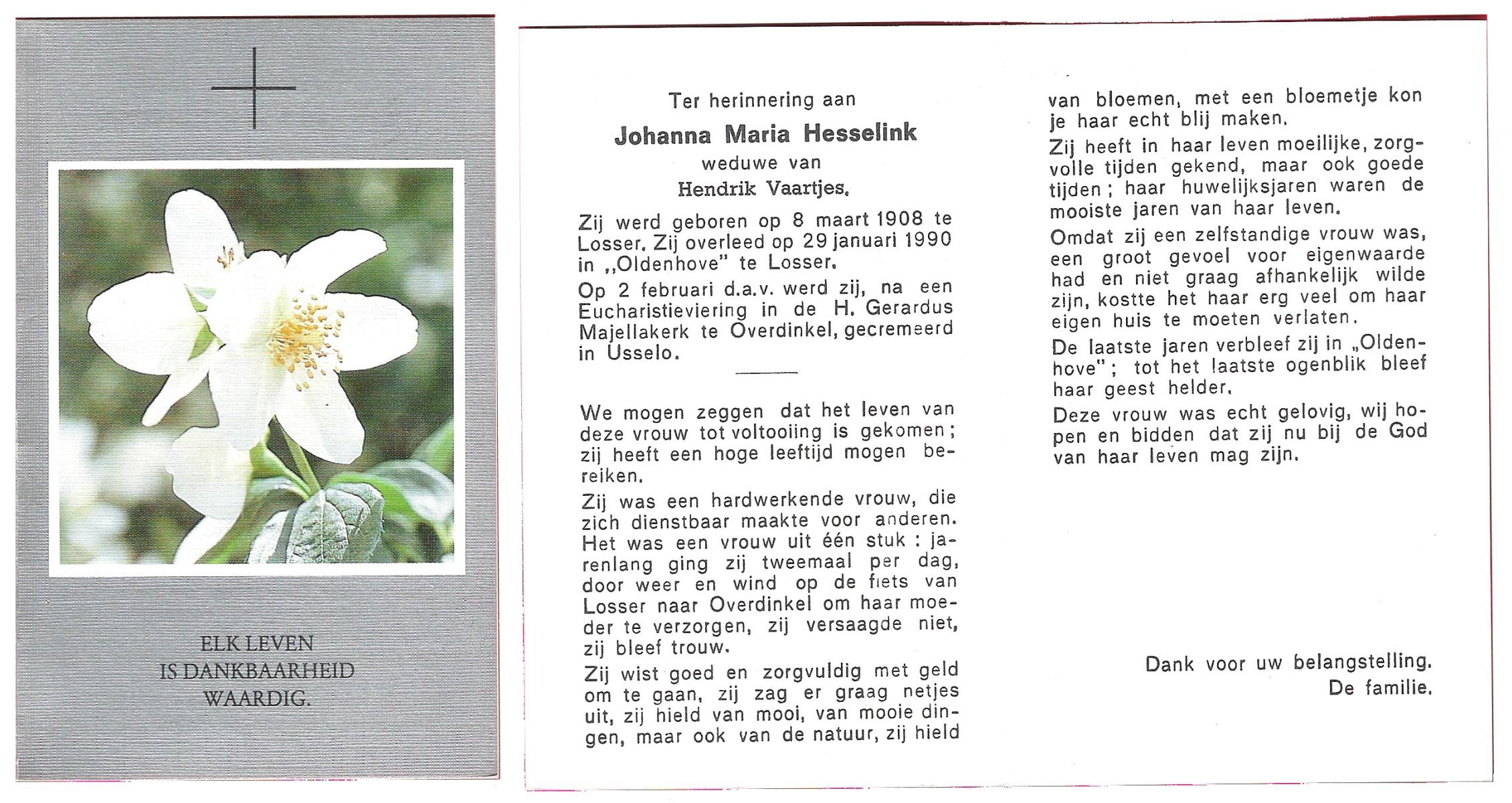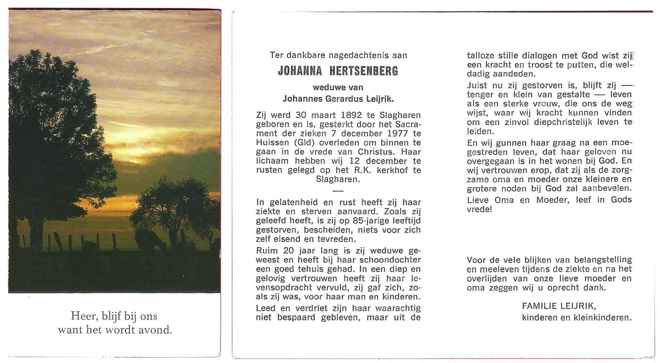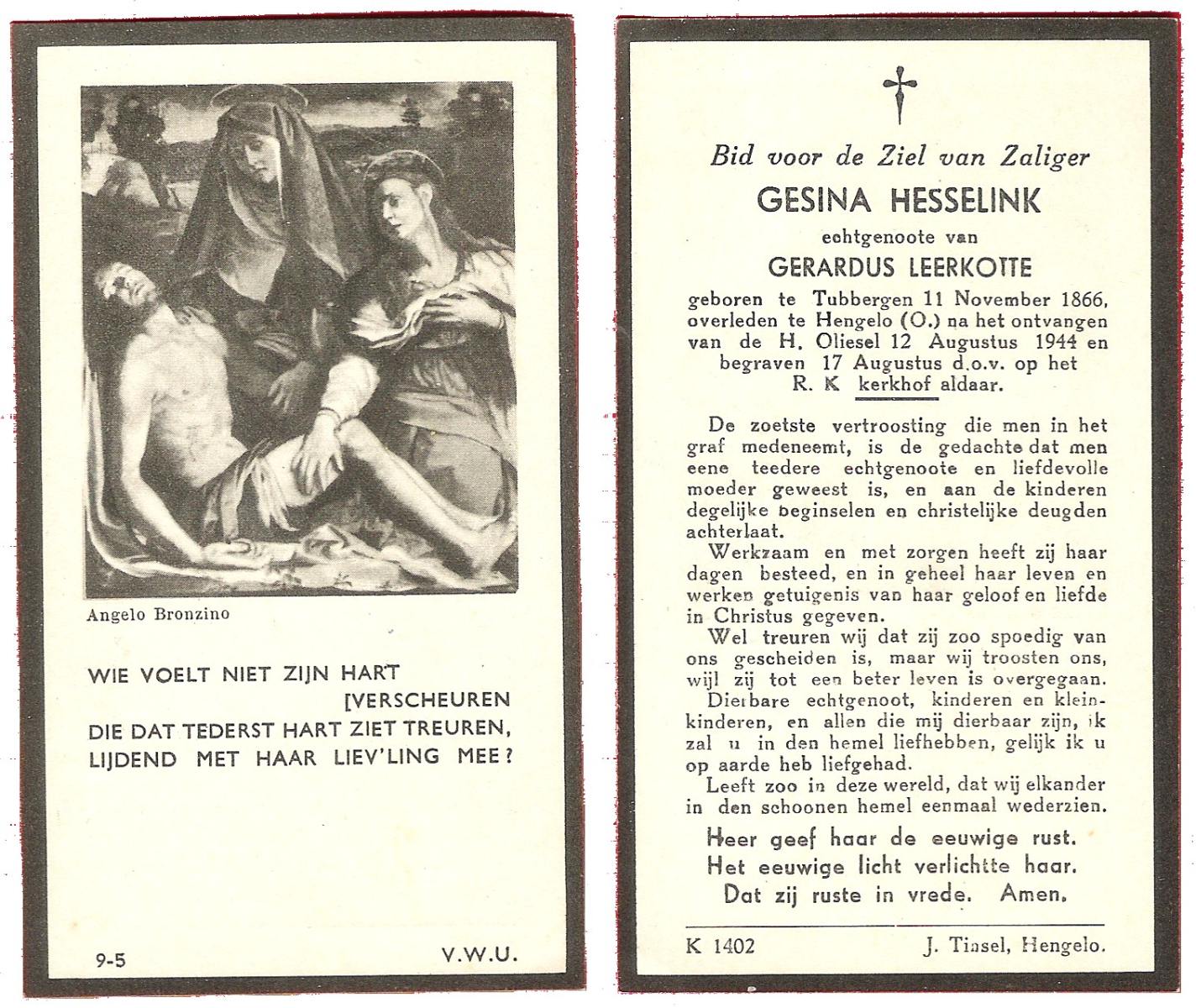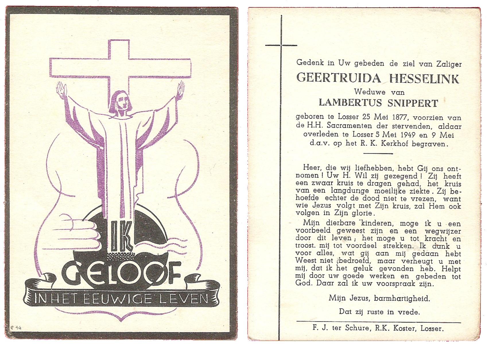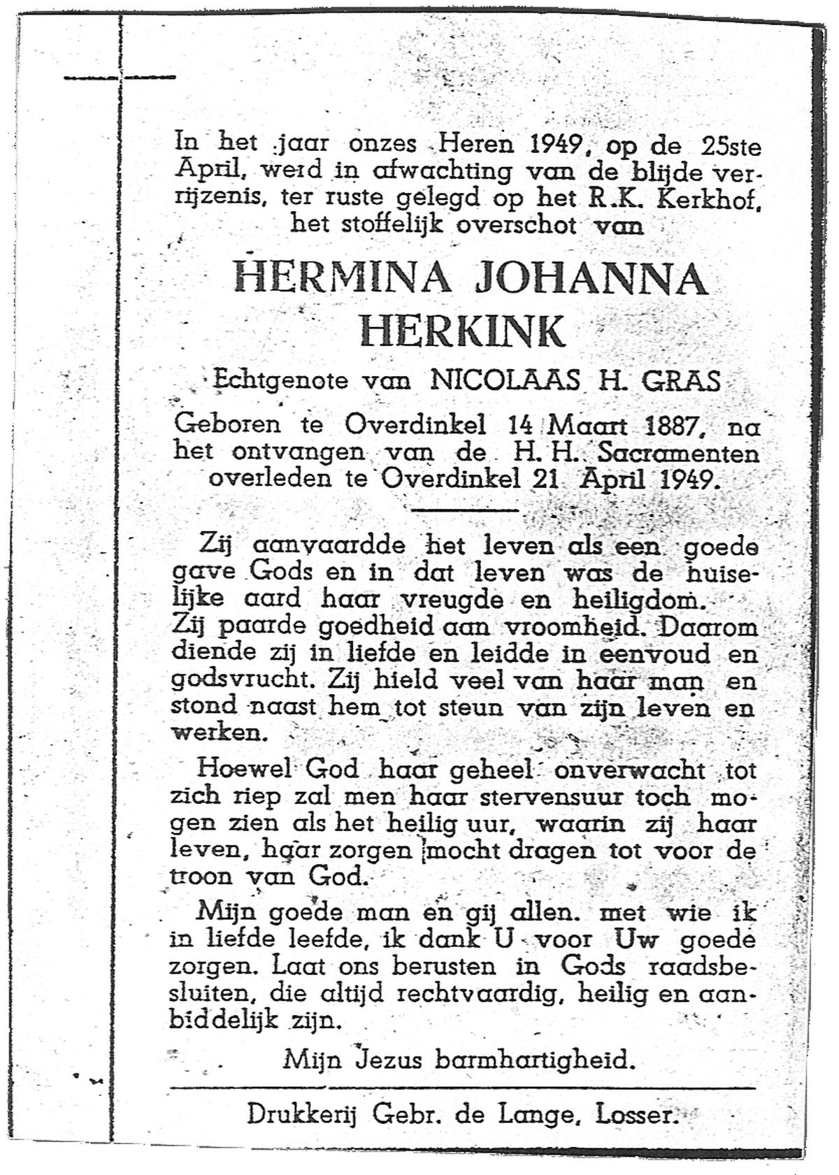HOBBELINK, Geertruida Maria Johanna, geboren op 8-1-1904 te Lemselo, overleden op 31-1-1978 te Almelo op 74-jarige leeftijd, begraven op 3-2-1978 te Albergen.