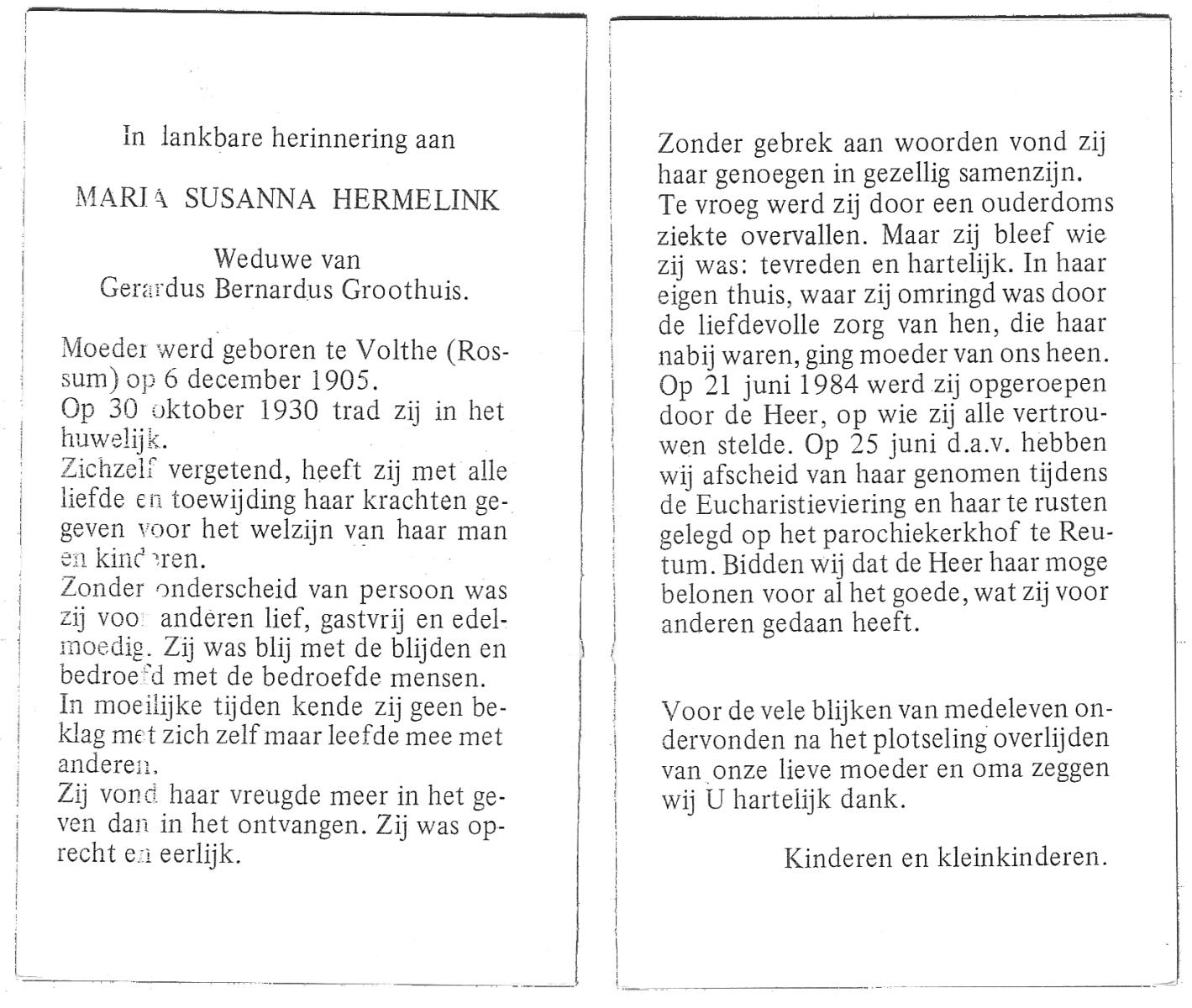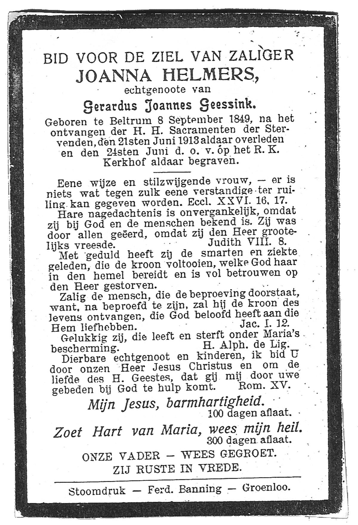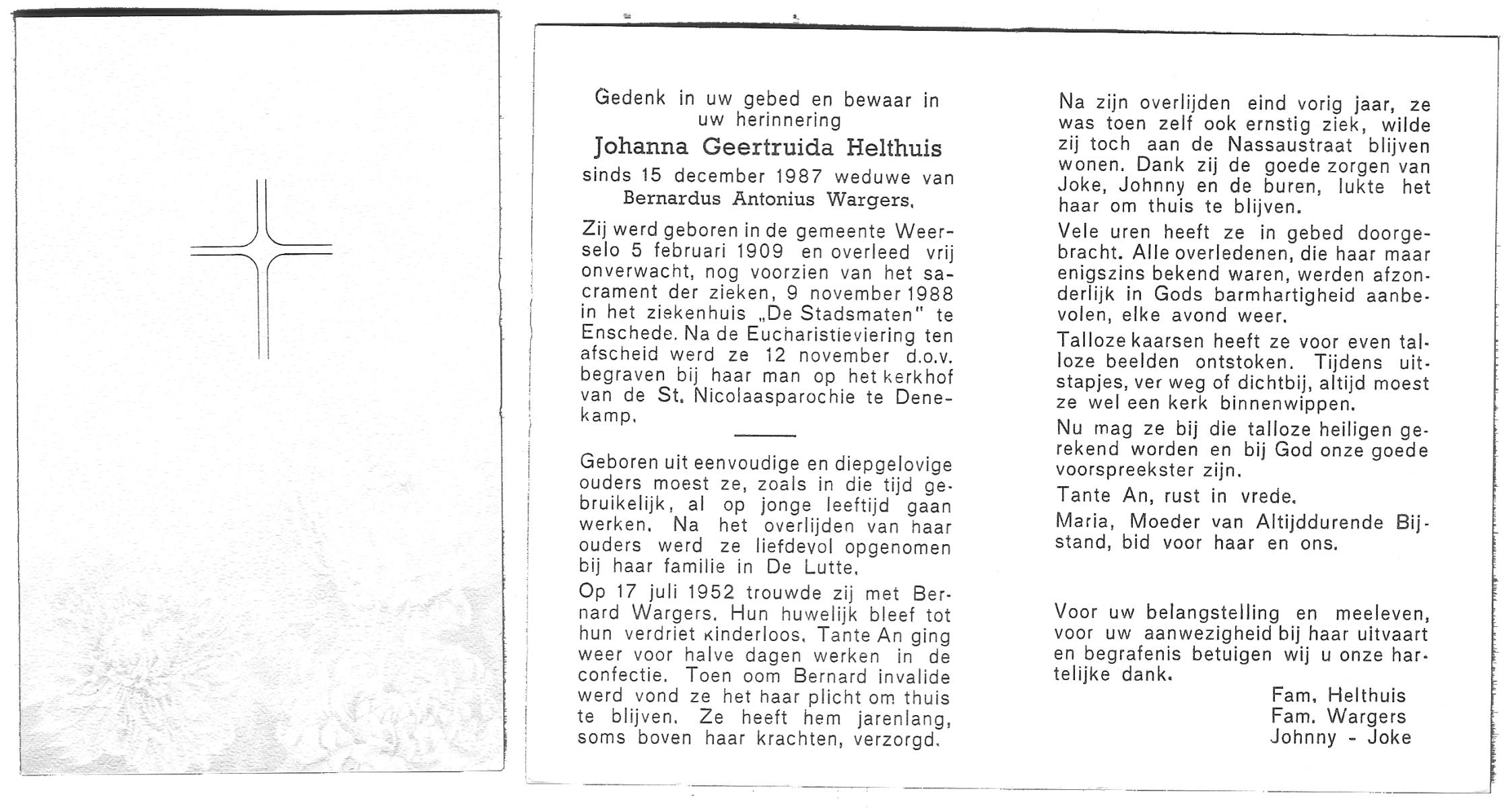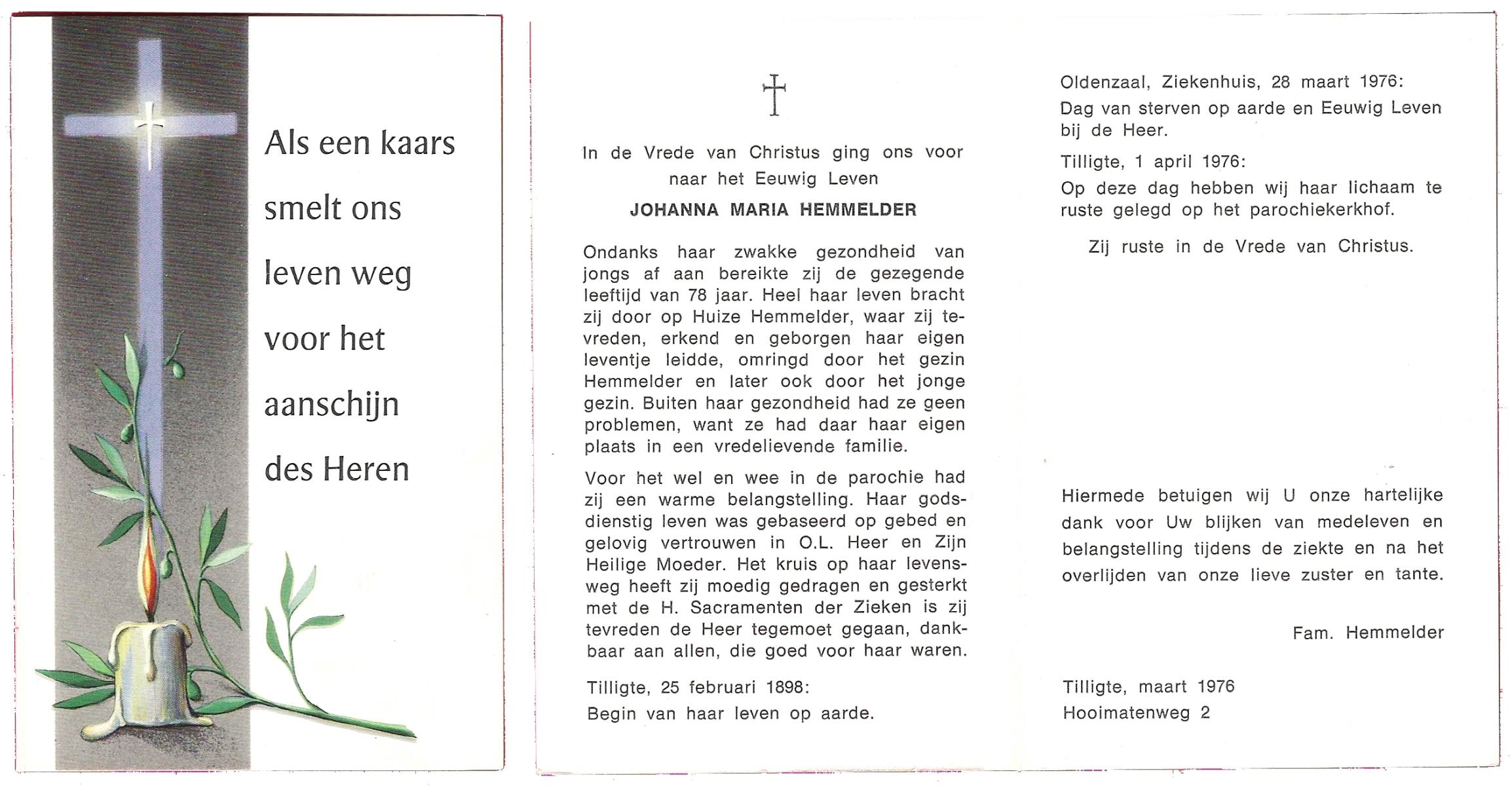 HOBBELINK, Geertruida Maria Johanna, geboren op 8-1-1904 te Lemselo, overleden op 31-1-1978 te Almelo op 74-jarige leeftijd, begraven op 3-2-1978 te Albergen.