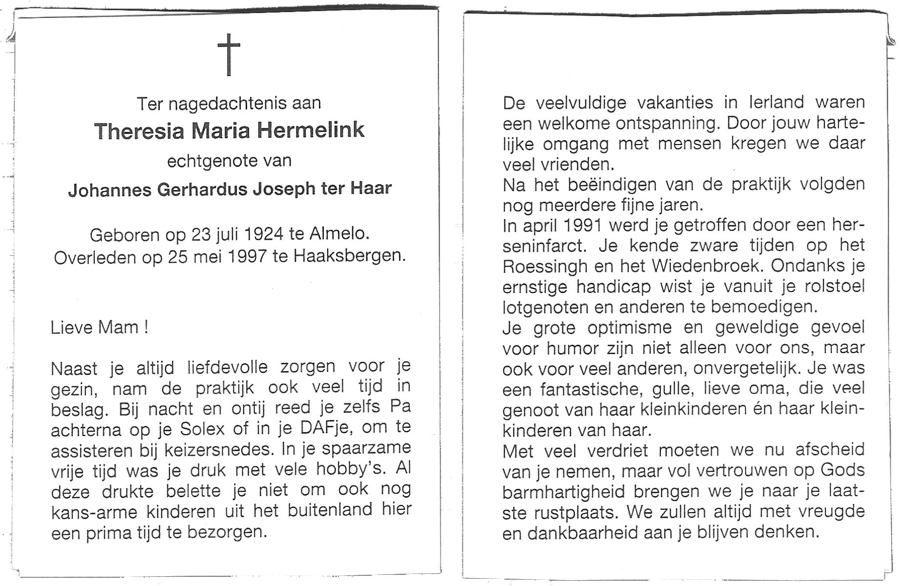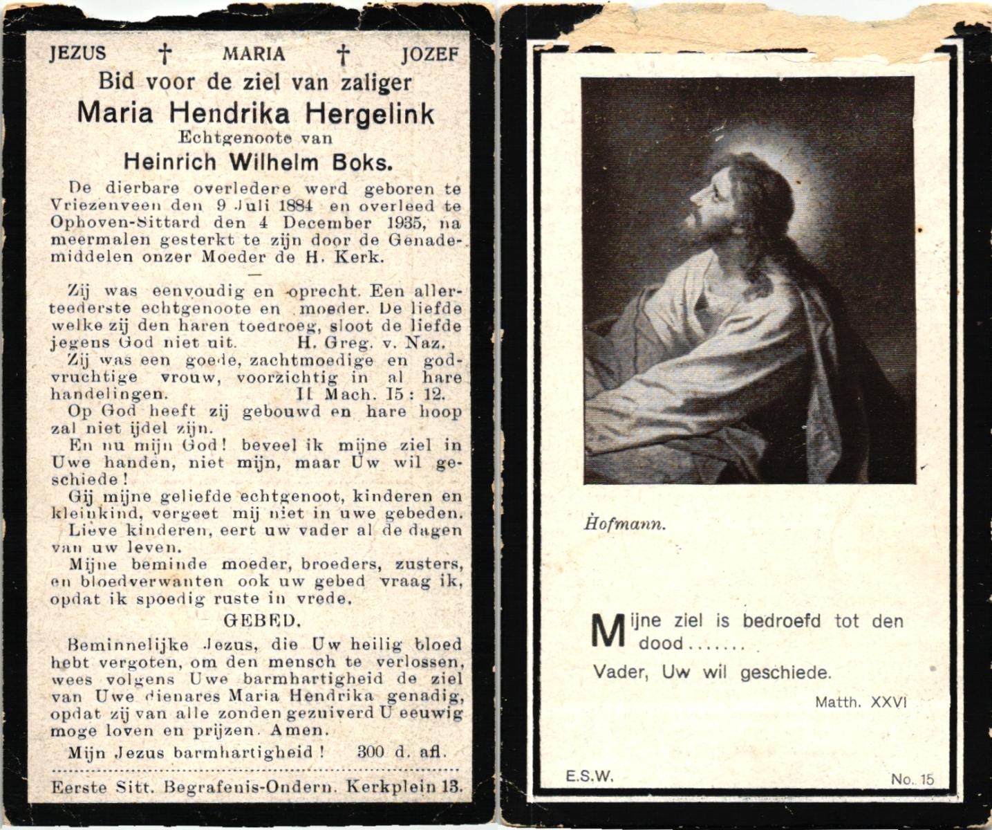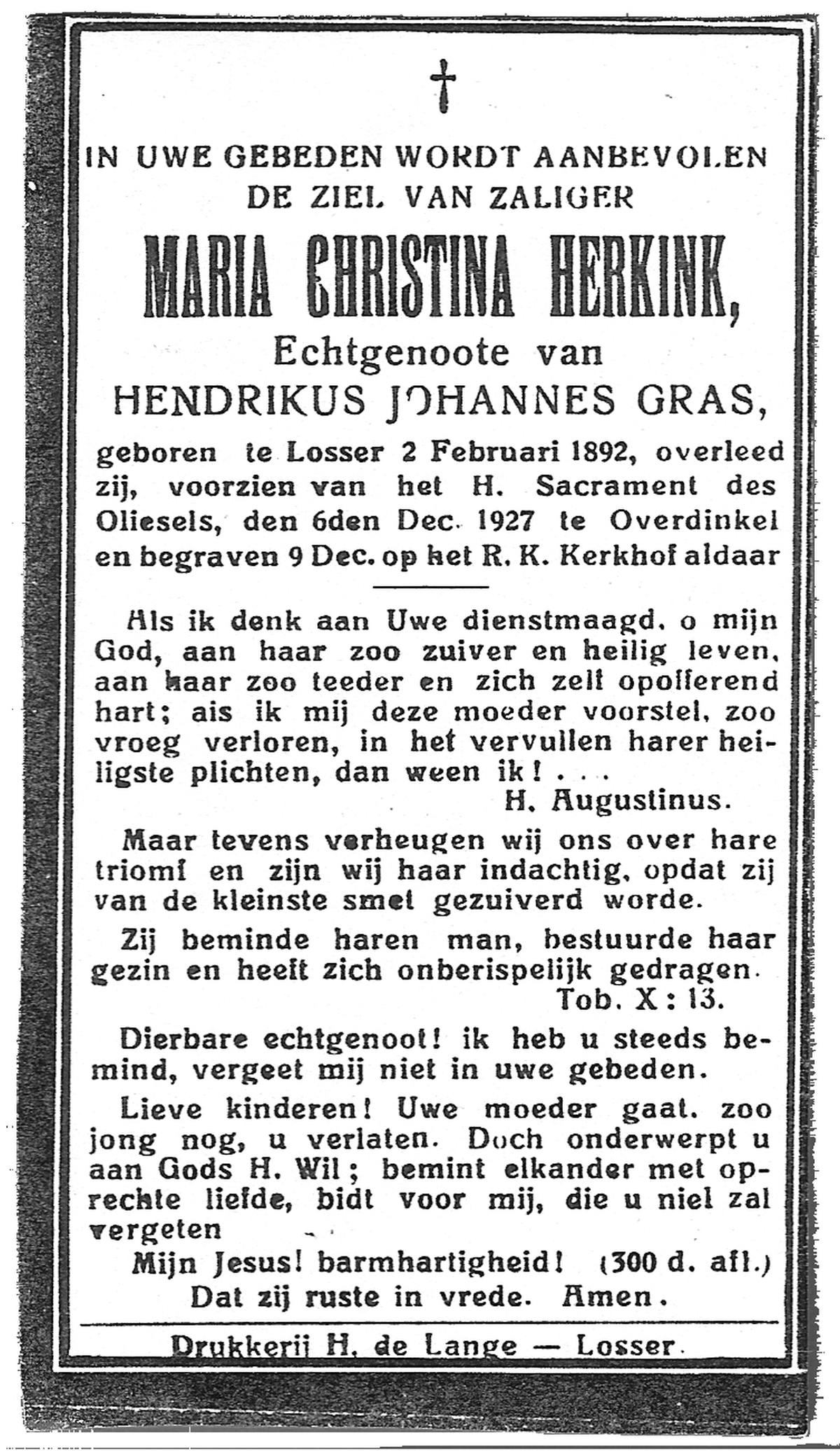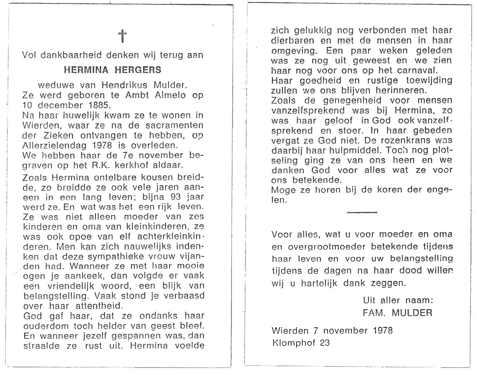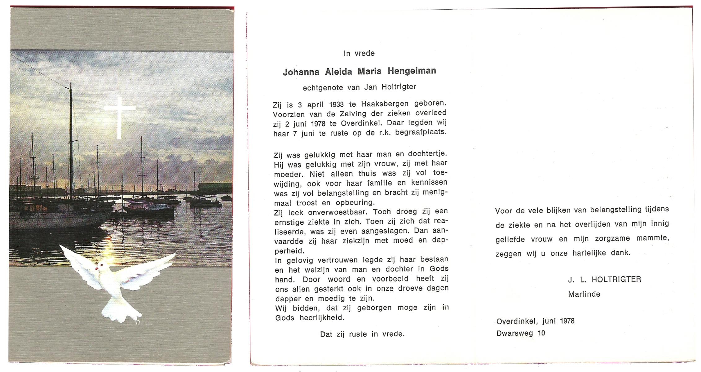 HOBBELINK, Geertruida Maria Johanna, geboren op 8-1-1904 te Lemselo, overleden op 31-1-1978 te Almelo op 74-jarige leeftijd, begraven op 3-2-1978 te Albergen.