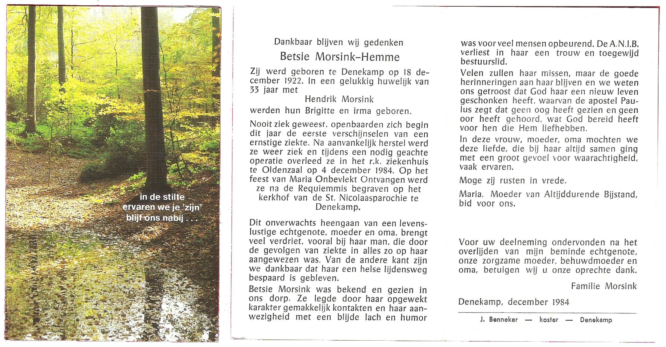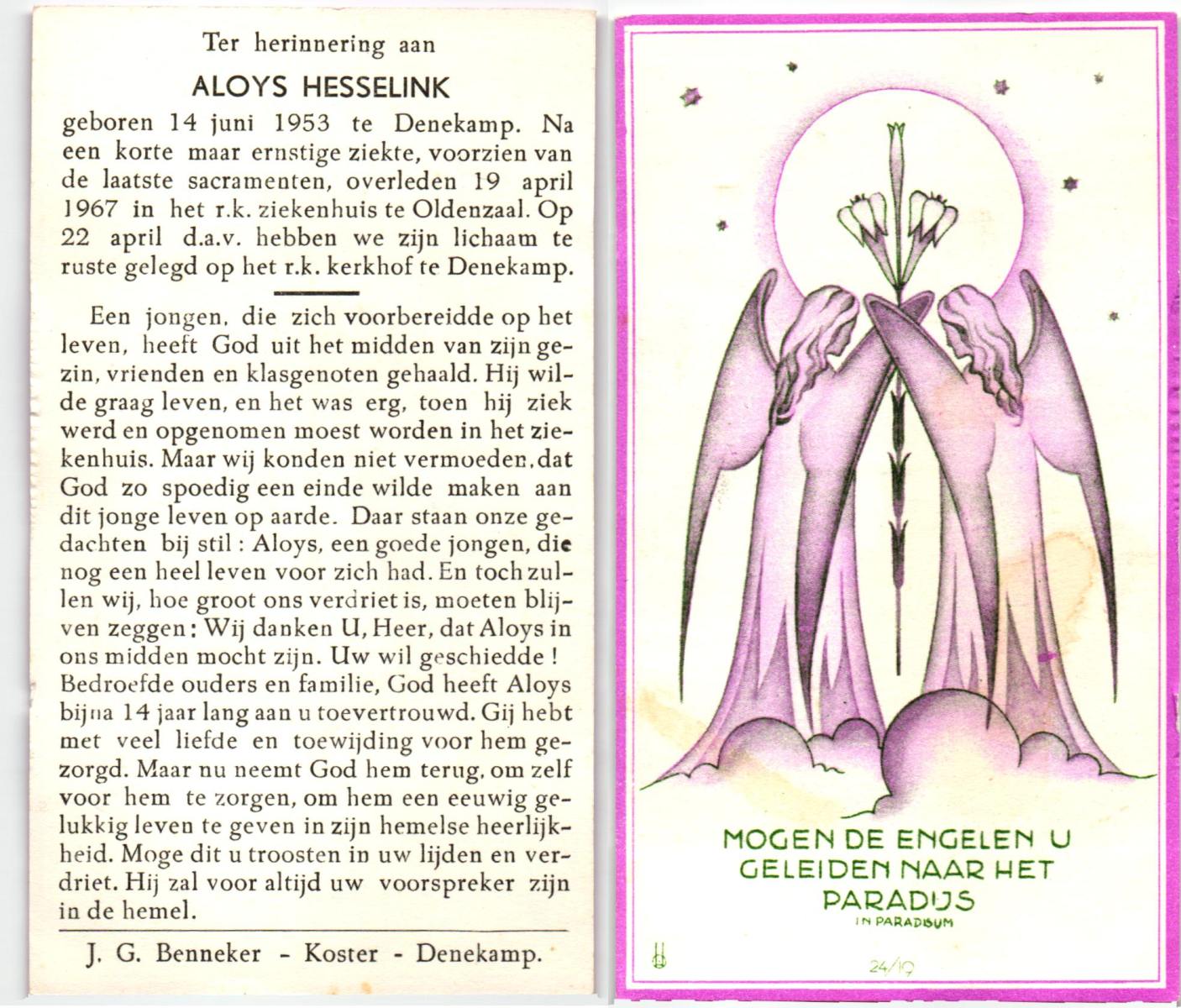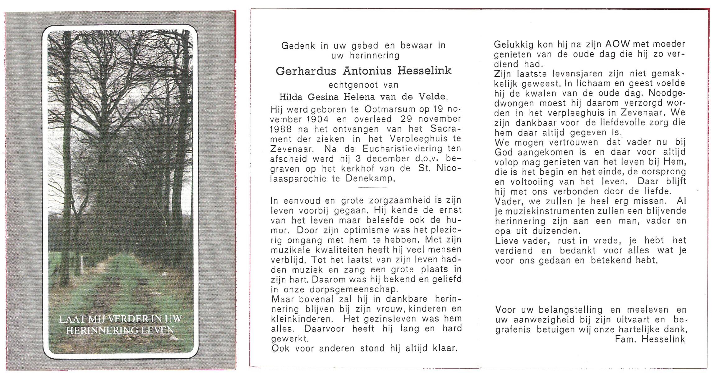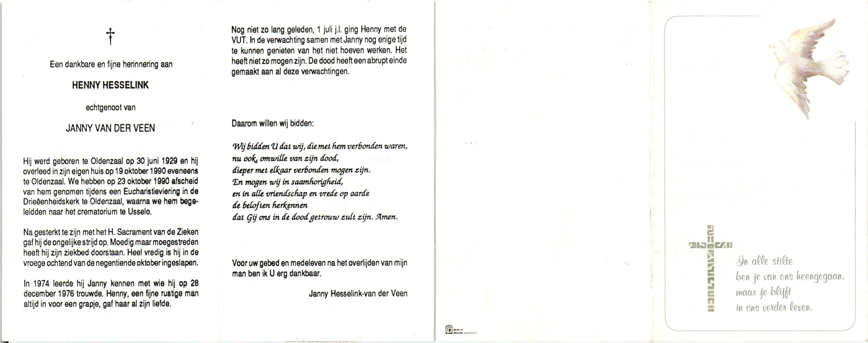 HOBBELINK, Bernardus, geboren op 21-03-1888 te Hengevelde, overleden op 3-4-1980 te Losser op 92-jarige leeftijd, begraven op 8-4-1980 te Hengevelde.