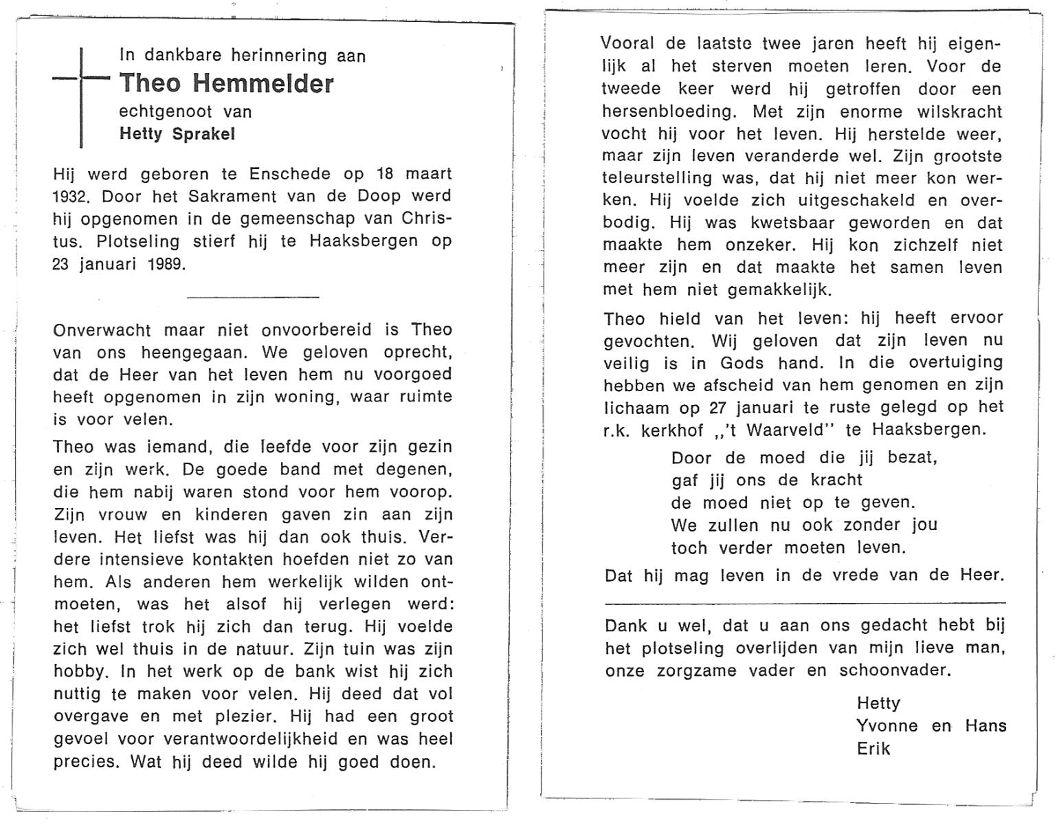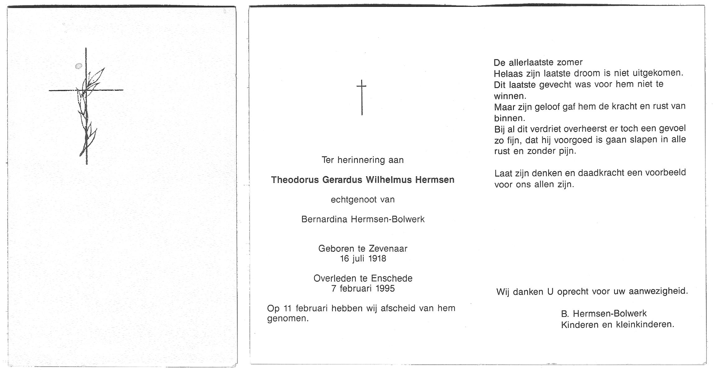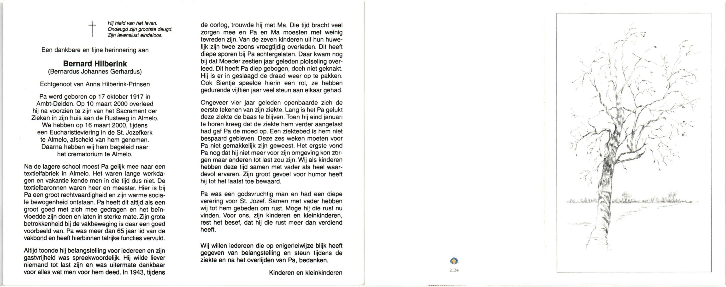HILGEHOLT, Theodardus Johannes Hendrikus, geboren op 1-1-1921 te Enschede, overleden op 26-3-2000 te Enschede op 79-jarige leeftijd, gecremeerd op 30-3-2000 te Usselo.