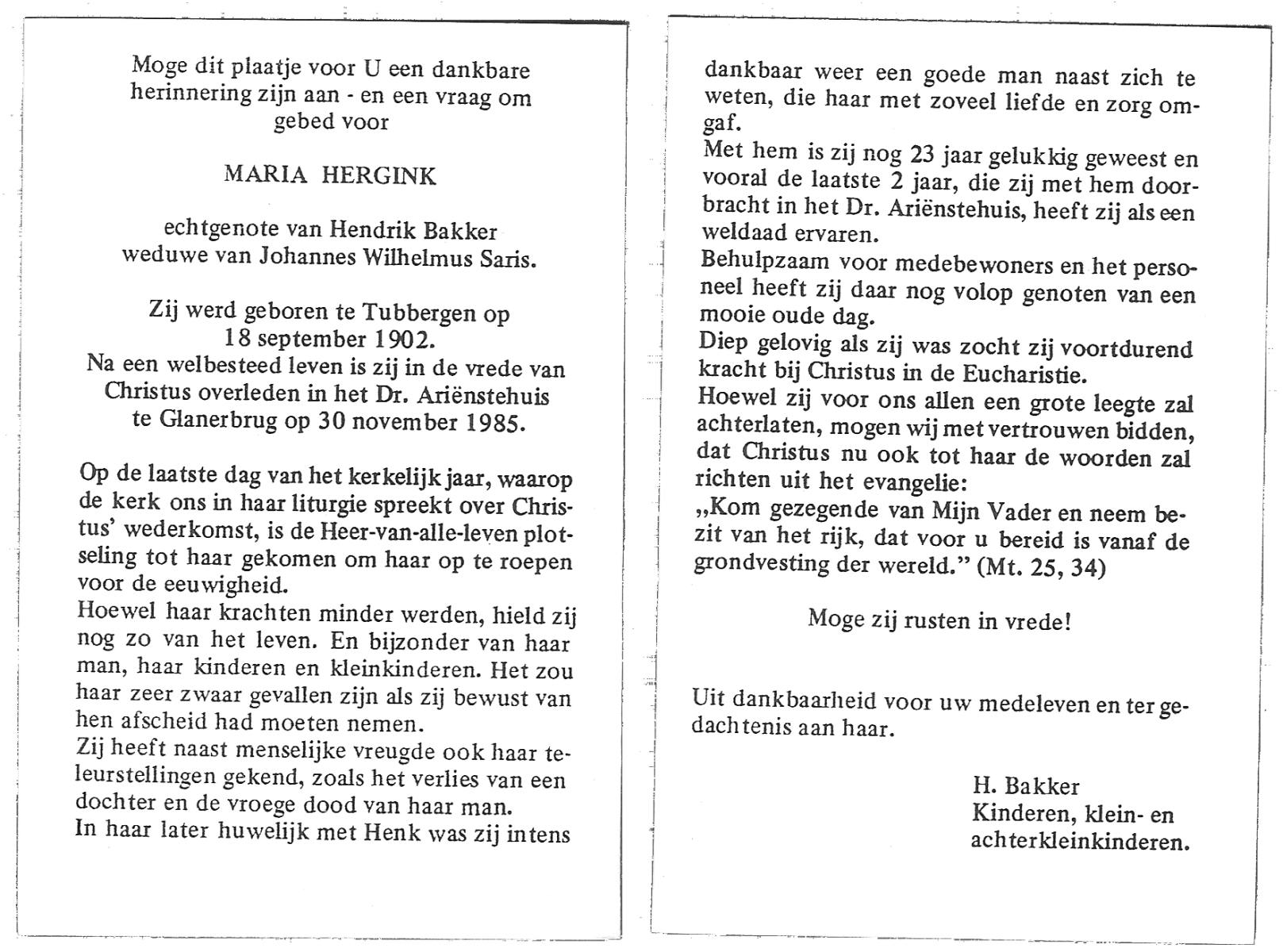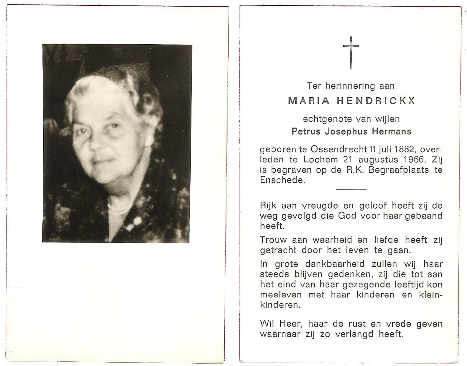 HILGERINK, Maria Johanna, geboren op 18-12-1886 te Hengelo (O), overleden op 22-10-1963 te Hengelo (Ov.) op 76-jarige leeftijd, begraven op 25-10-1963 te Hengelo (Ov.).