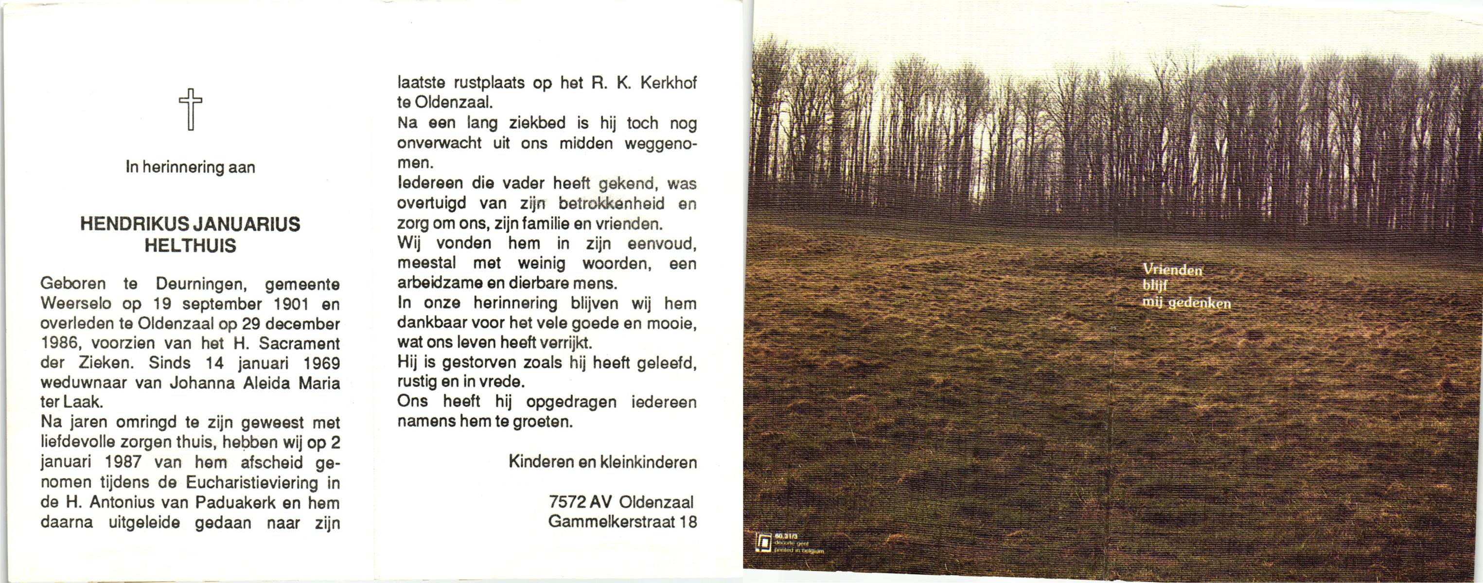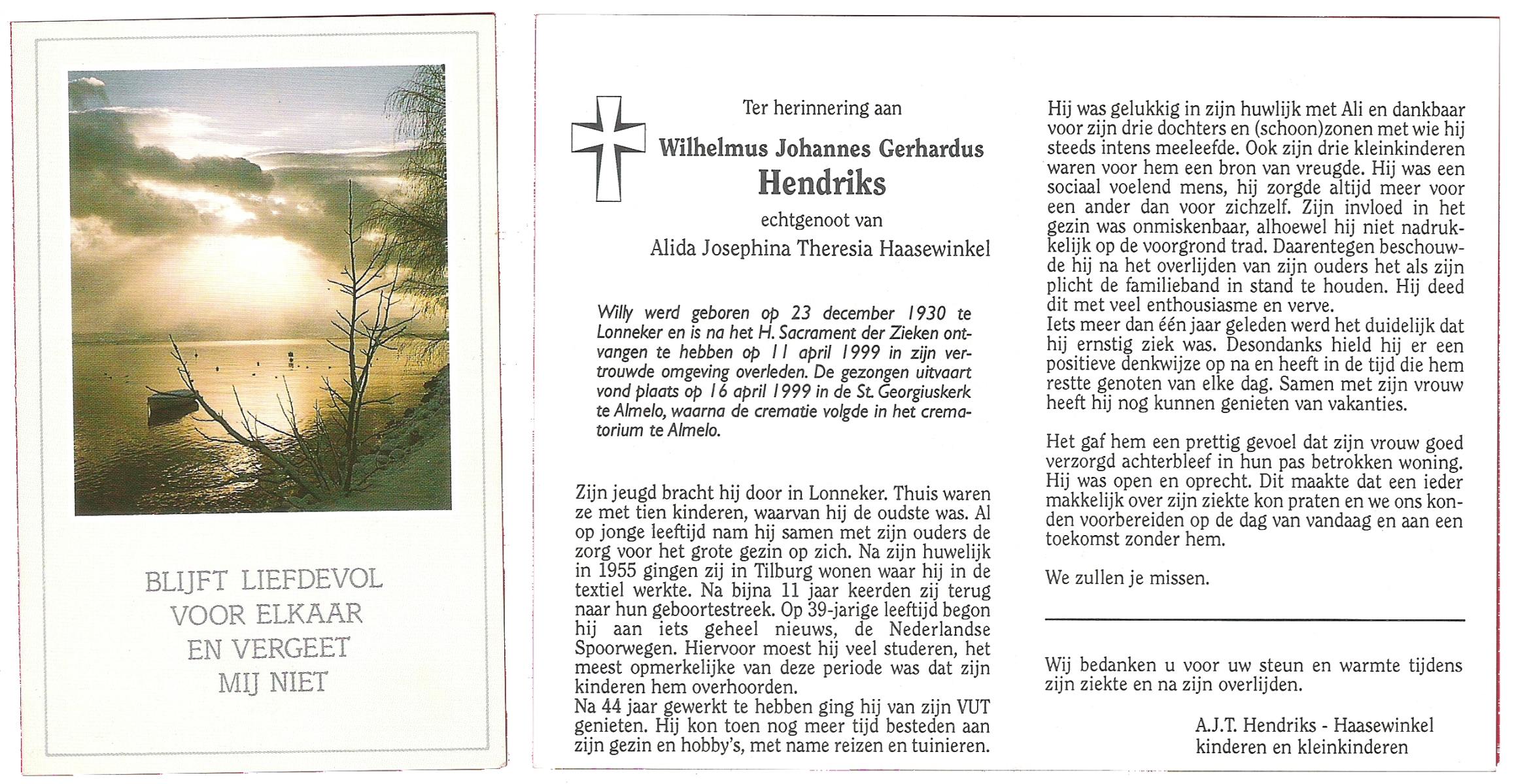 HILDERINK, Wilhelmus Hermanus, geboren op 28-12-1910 te Lonneker, overleden op 13-1-1991 te Buurse op 80-jarige leeftijd, begraven op 17-1-1991 te Buurse.