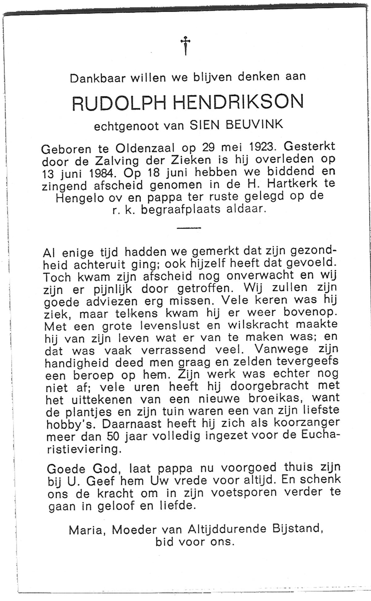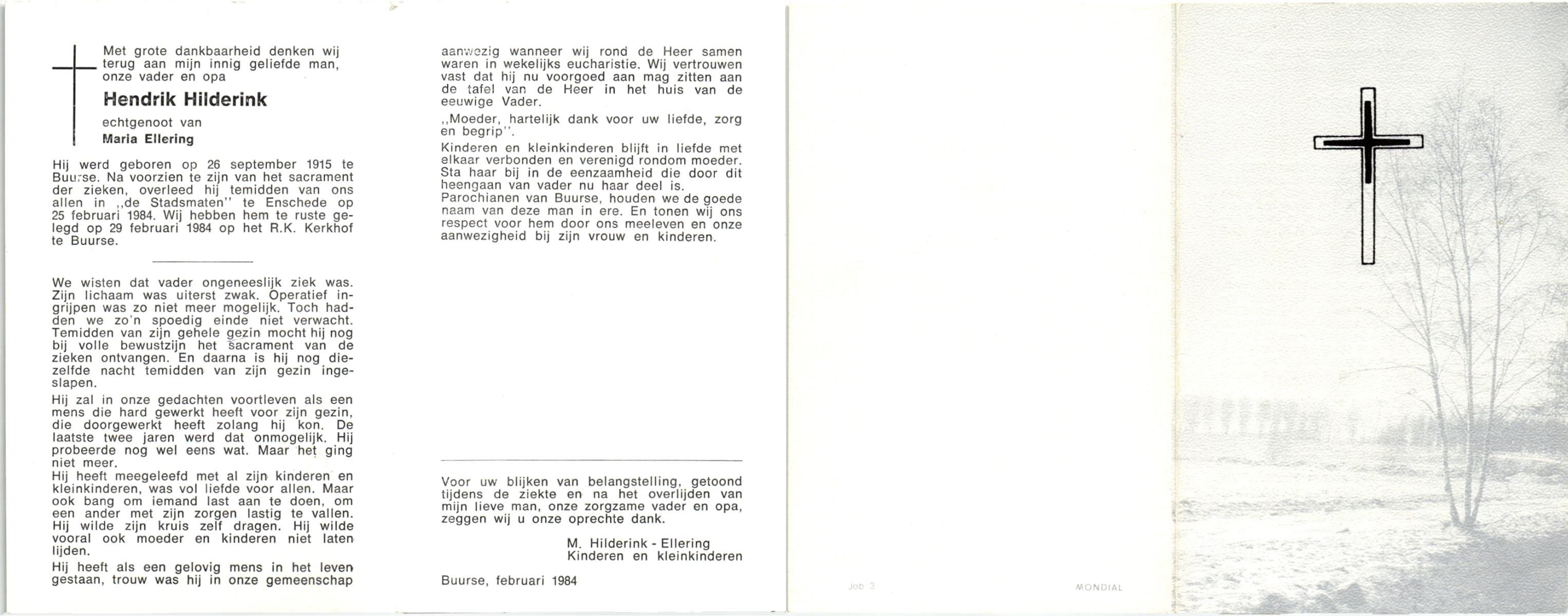 HILDERINK, , Hendrik, geboren op 26-9-1915 te Buurse, overleden op 25-2-1984 te Enschede op 68-jarige leeftijd, begraven op 29-2-1984 te Buurse.